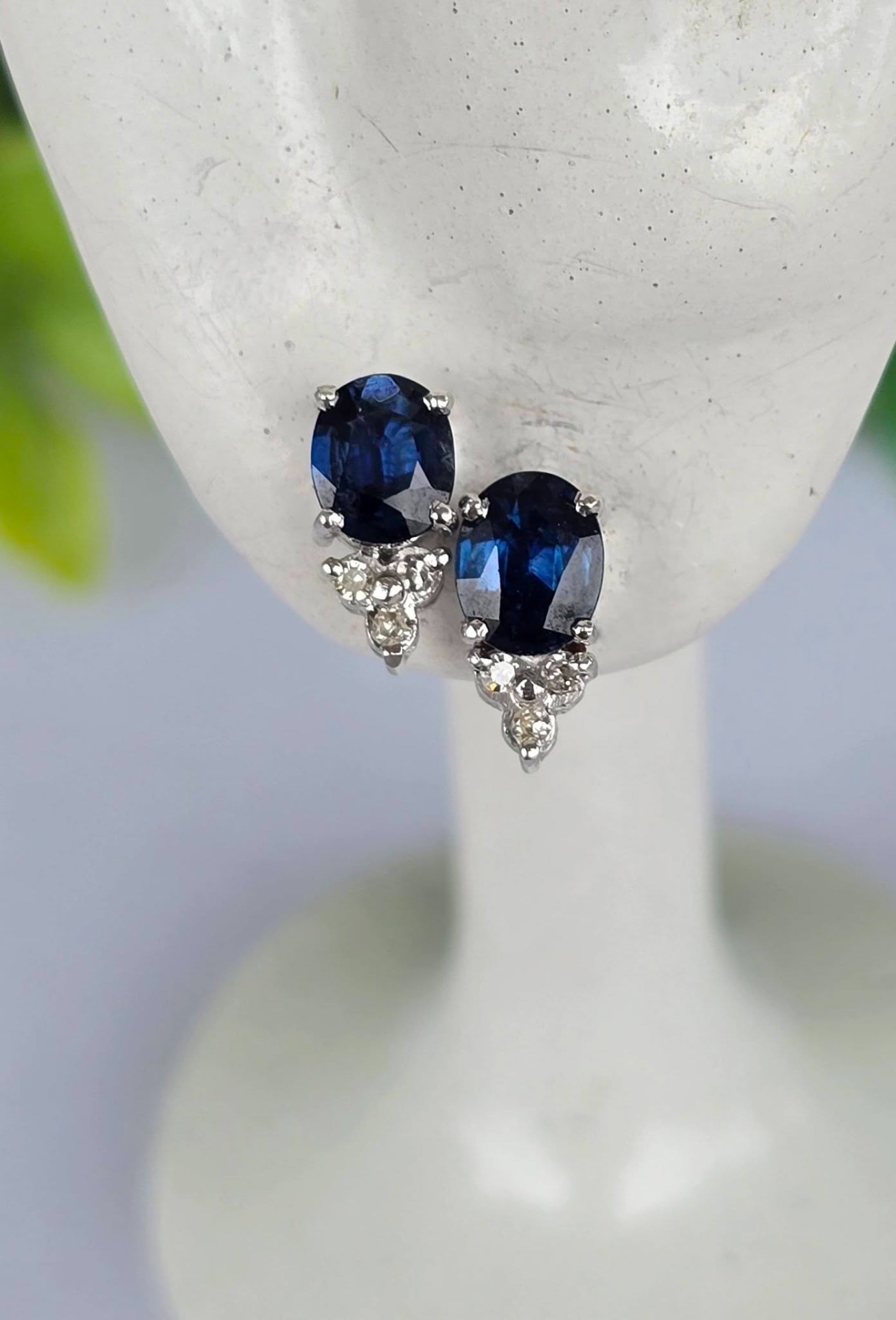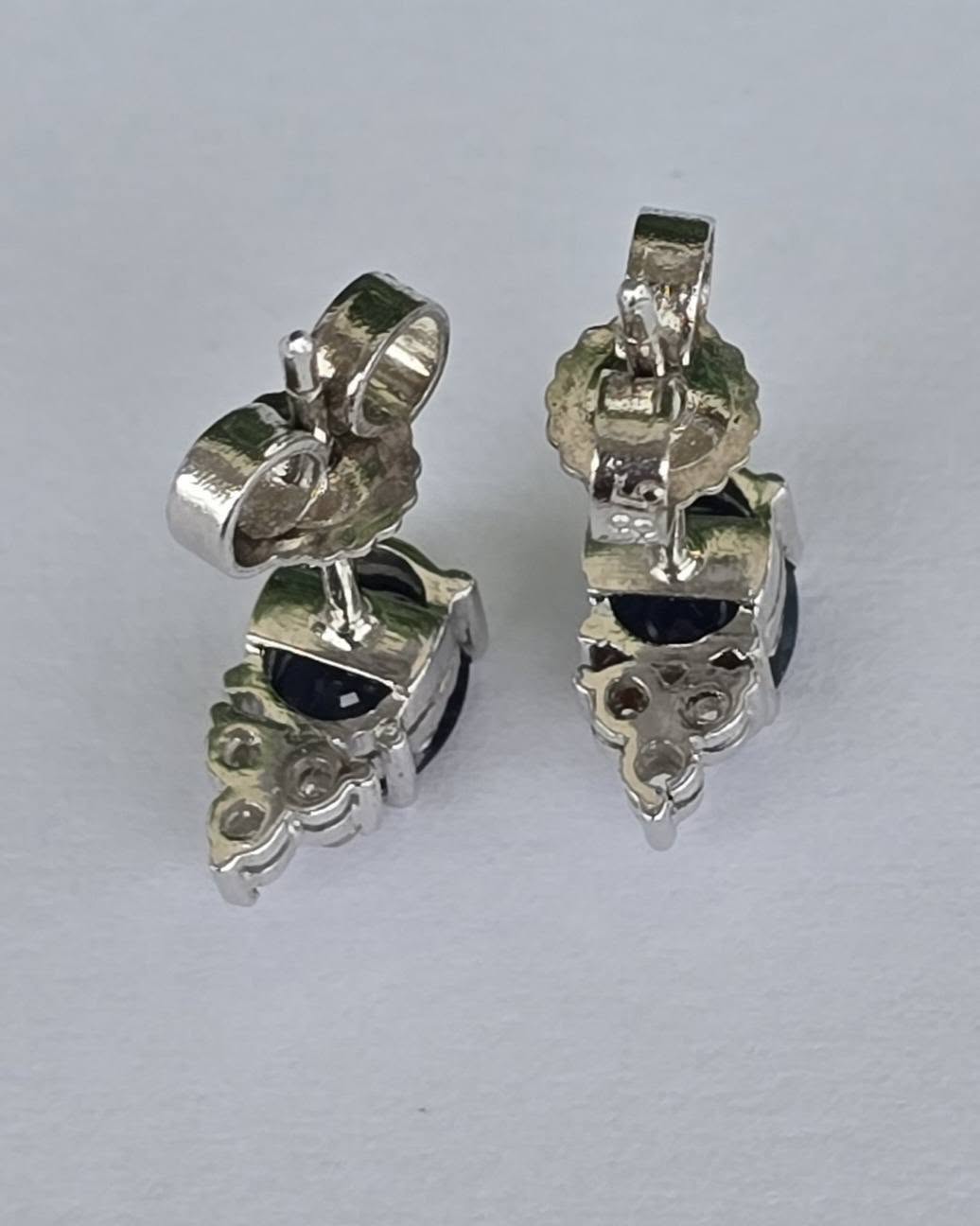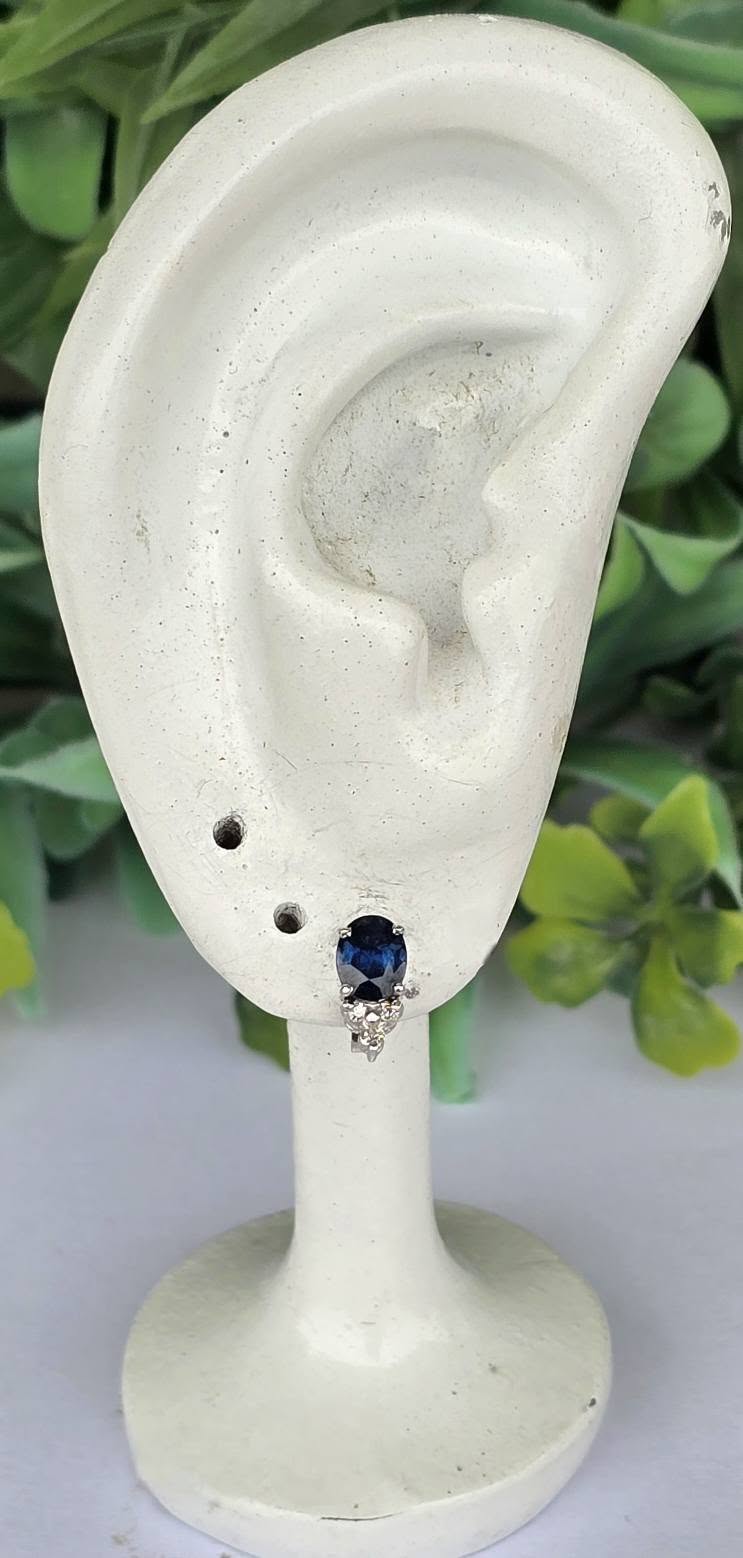 Cercei vechi din aur de 14K, cu safire și 6 diamante naturale.