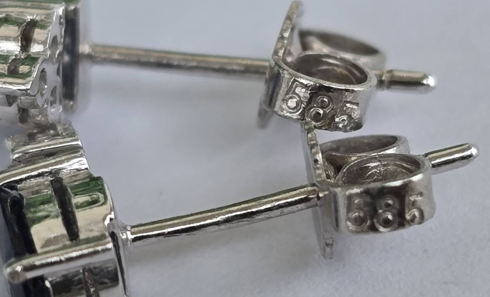 Prezintă marcaje 585 pentru puritate aur de 14K.