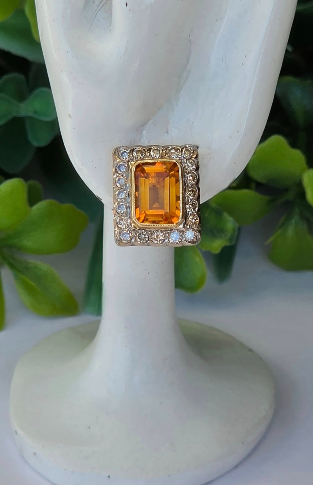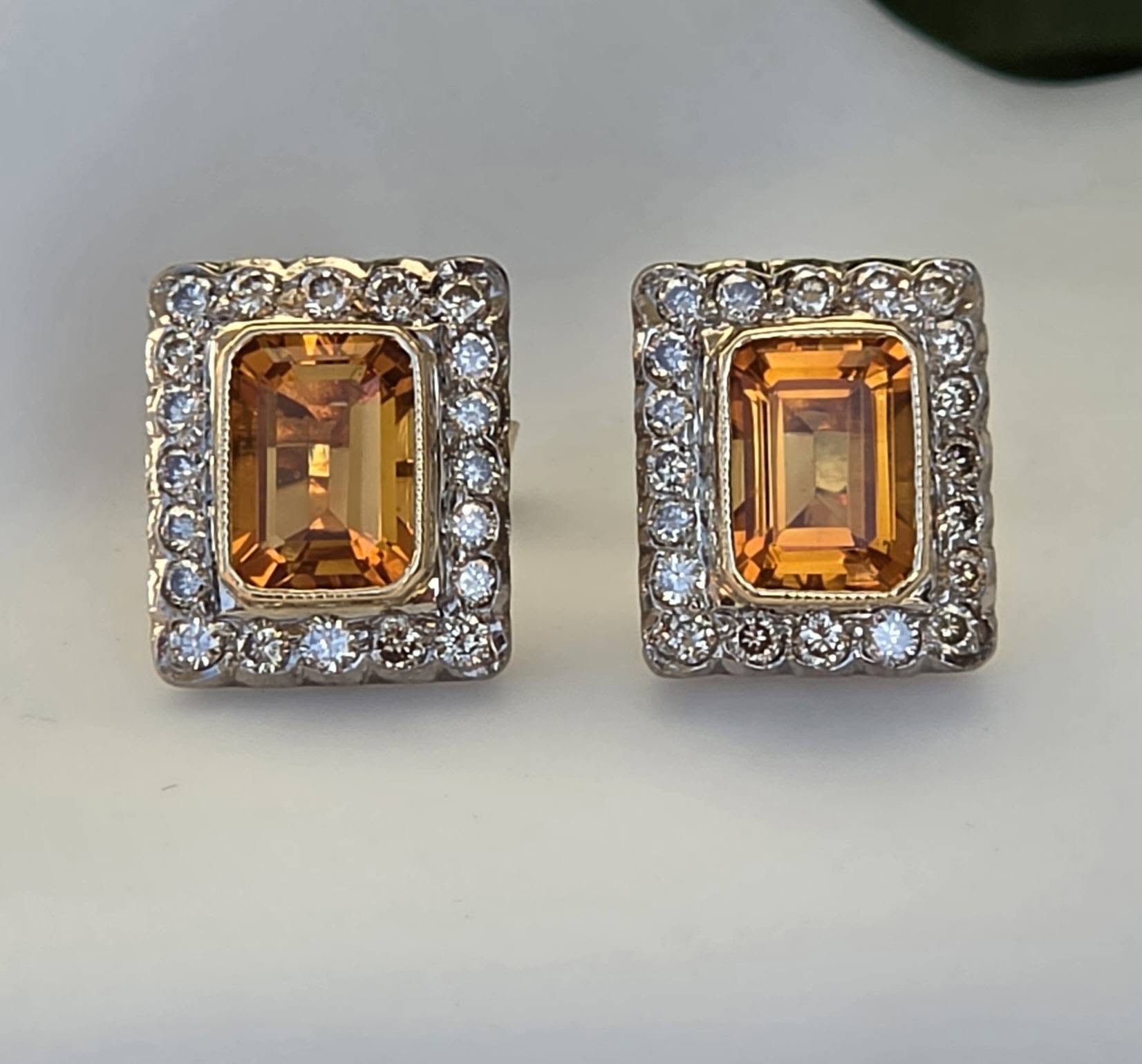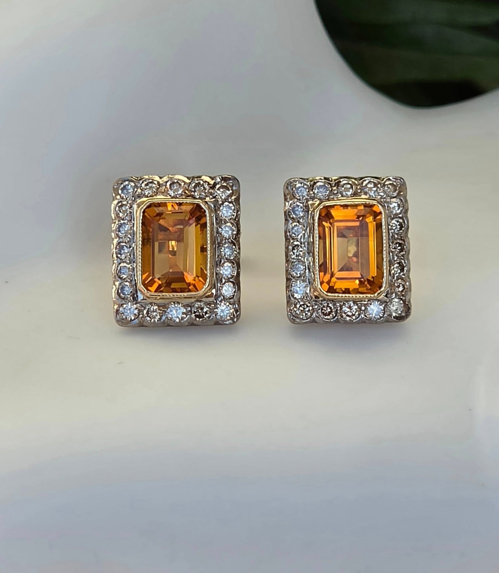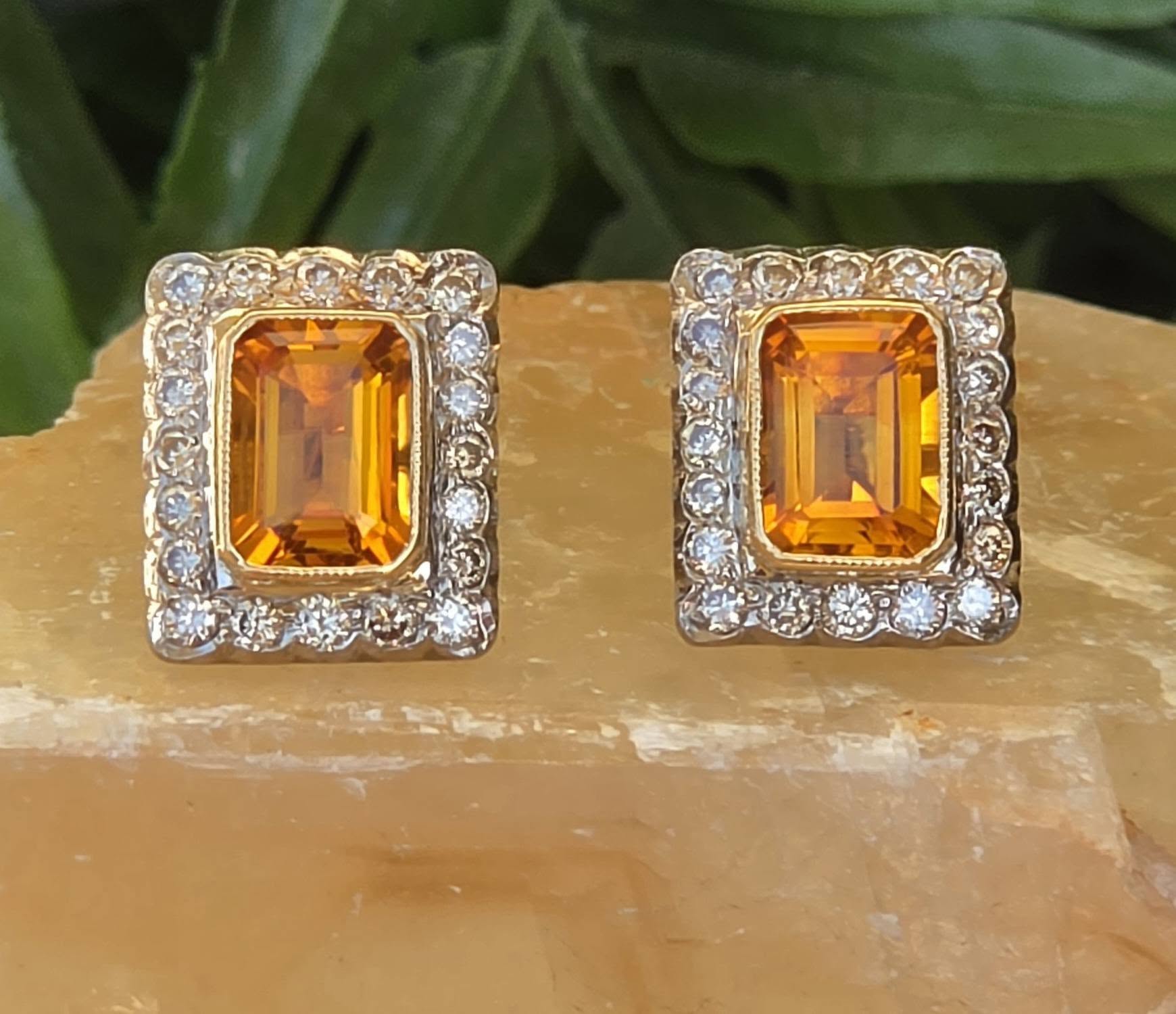 Cercei vechi din aur de 18K, cu 2 superbe citrine și 40 diamante naturale (0.40ct).