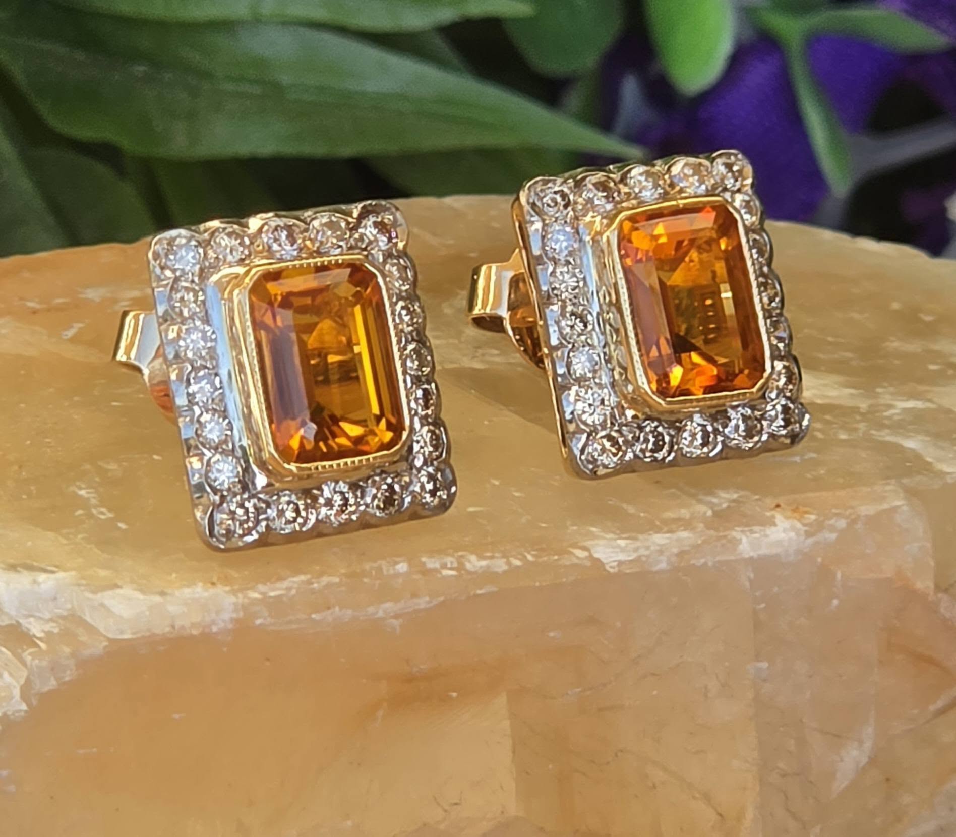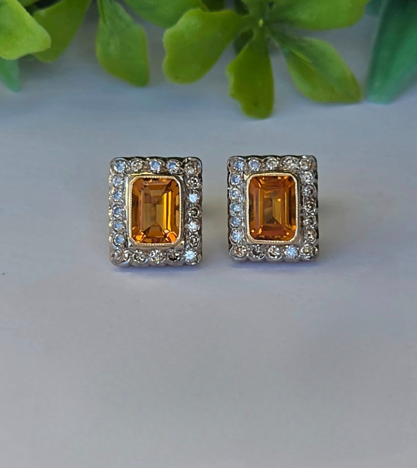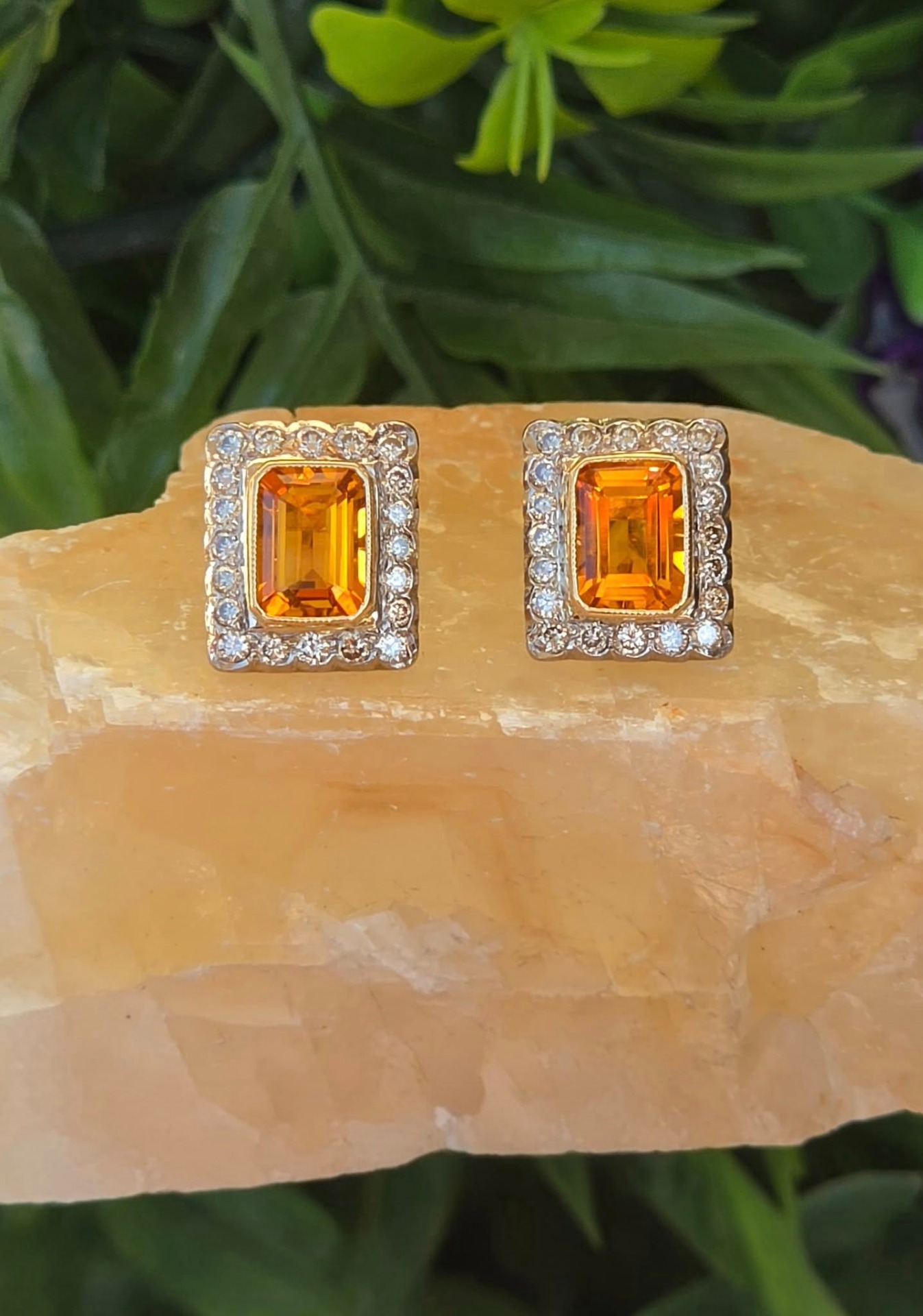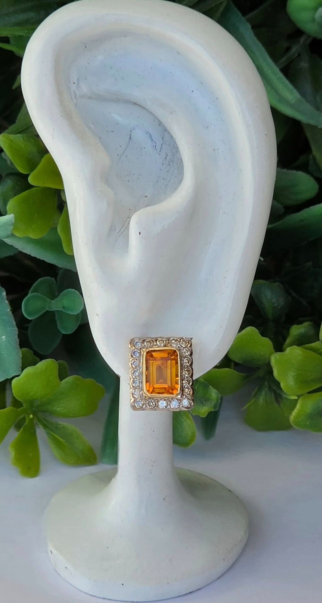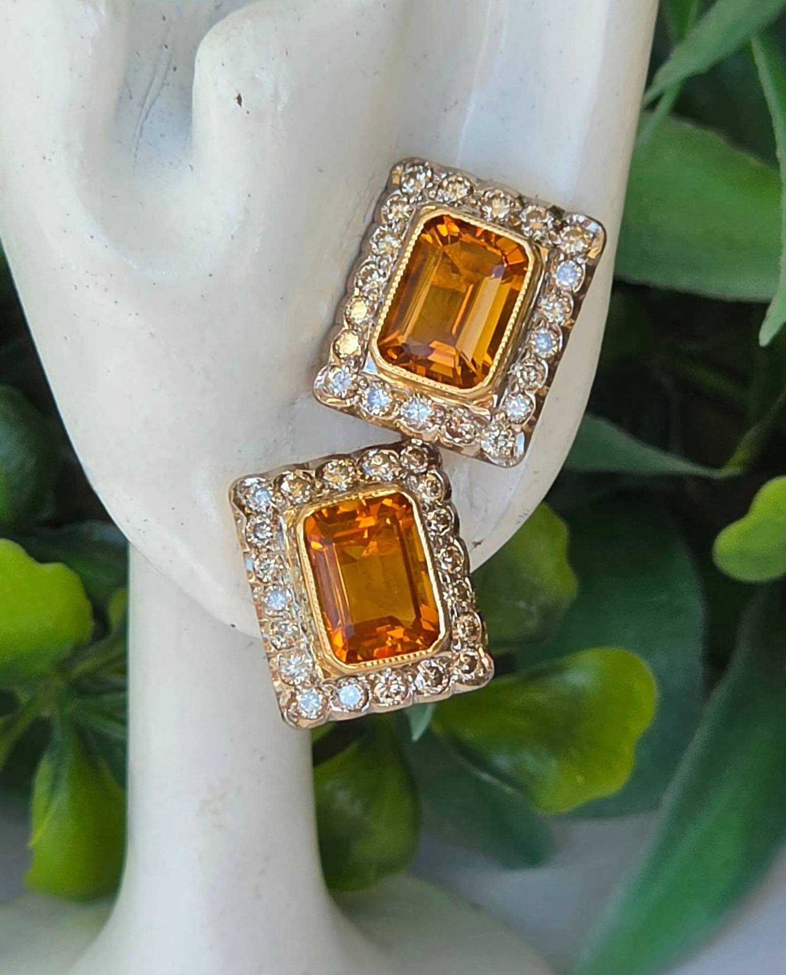 Cercei vechi din aur de 18K, cu 2 superbe citrine și 40 diamante naturale (0.40ct).