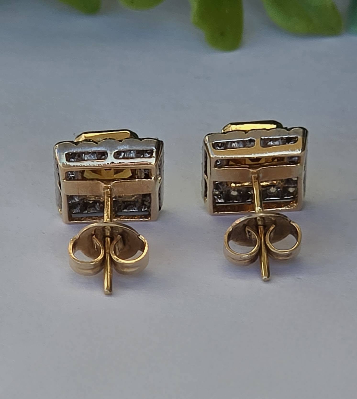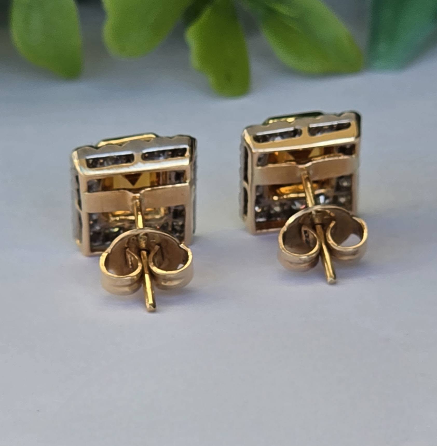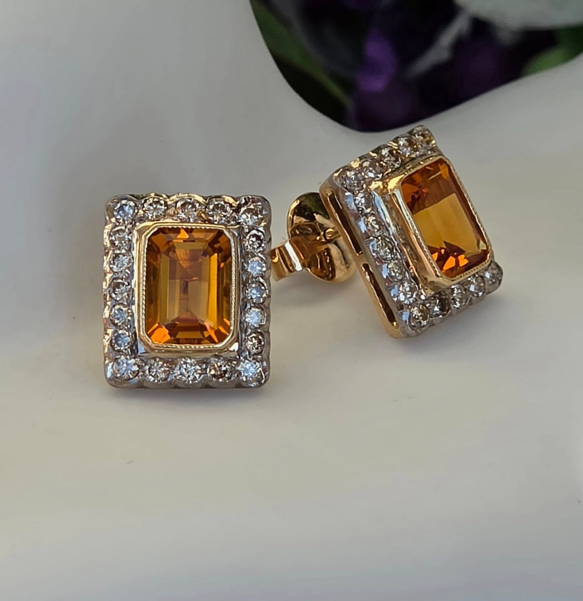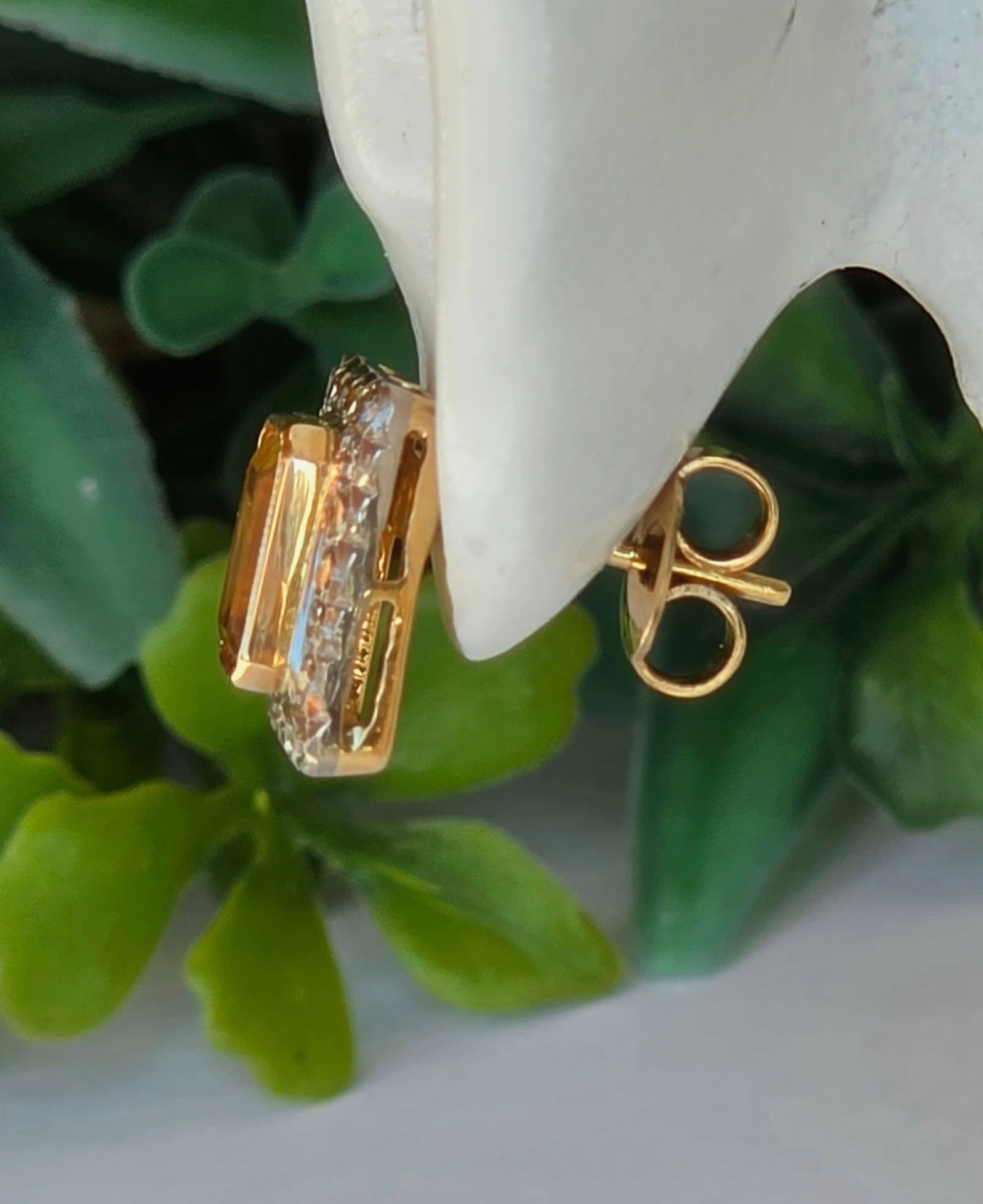 Cercei vechi din aur de 18K, cu 2 superbe citrine și 40 diamante naturale (0.40ct).