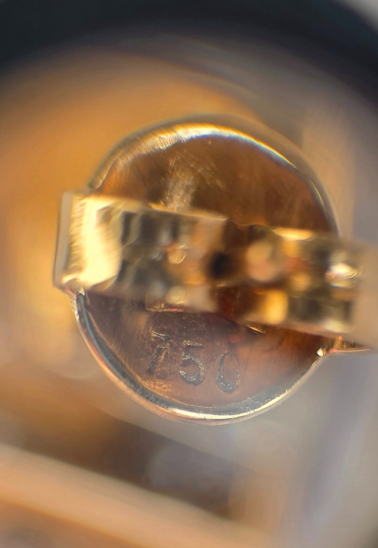 Prezintă marcaje 750 pentru puritate aur de 18K.