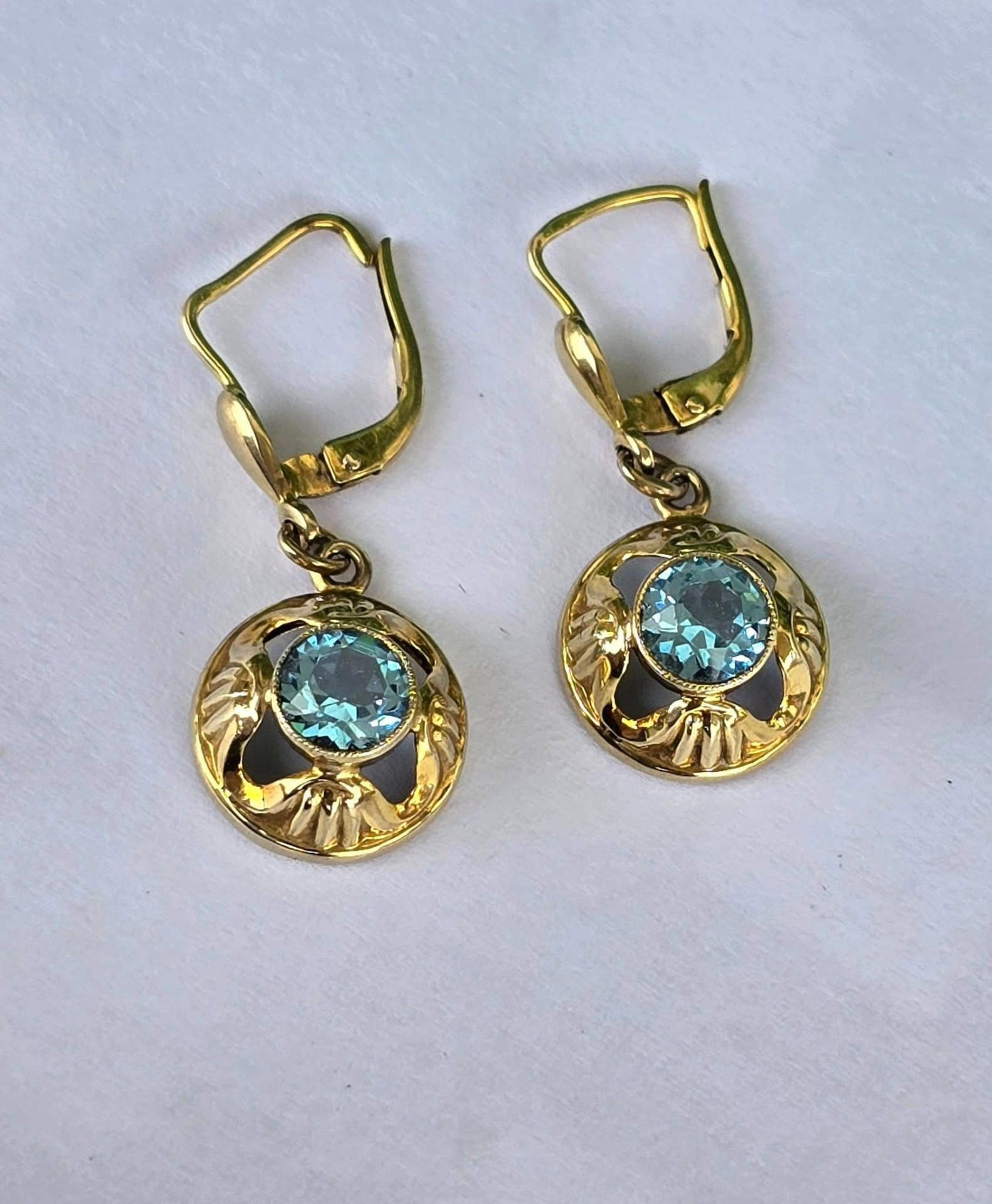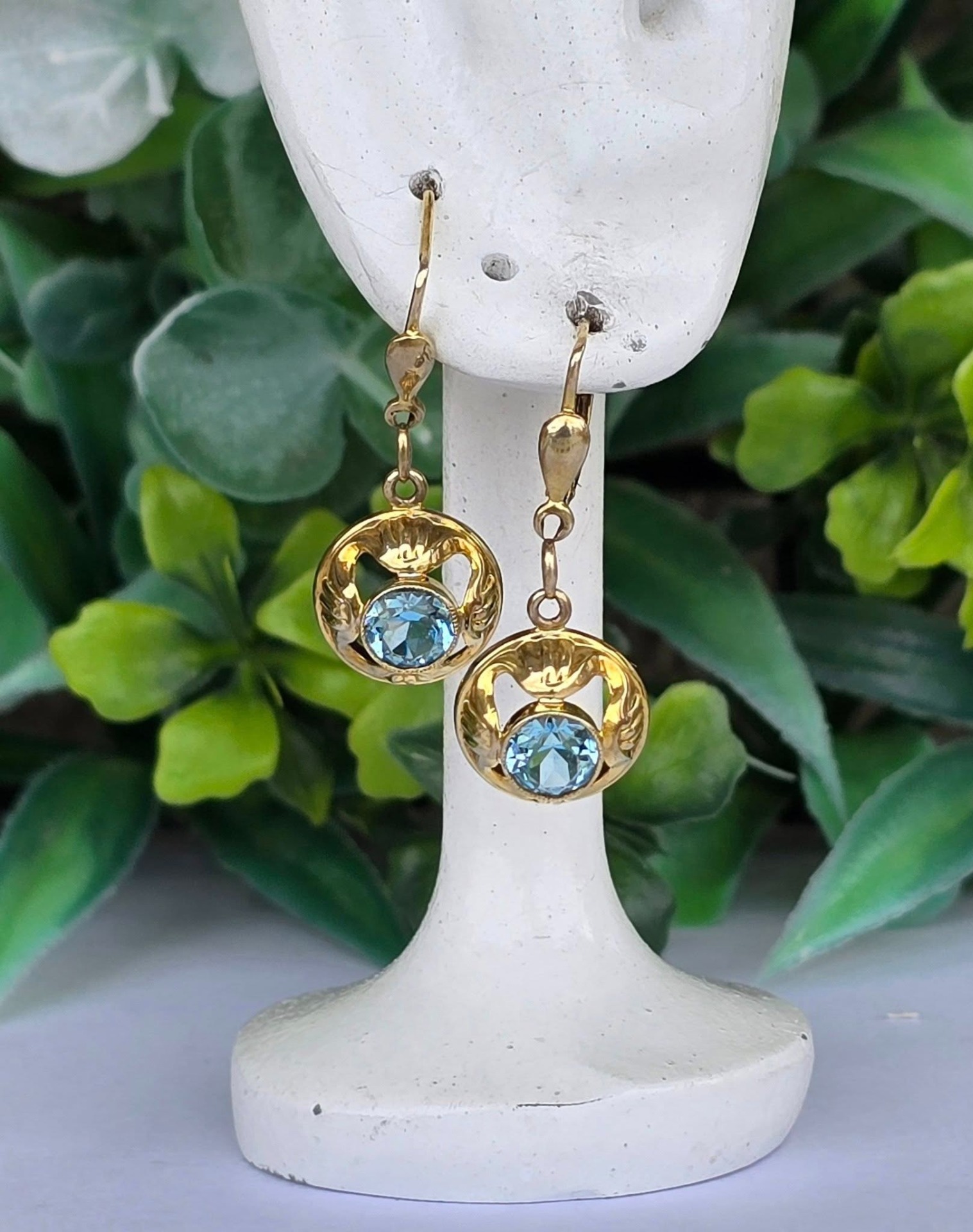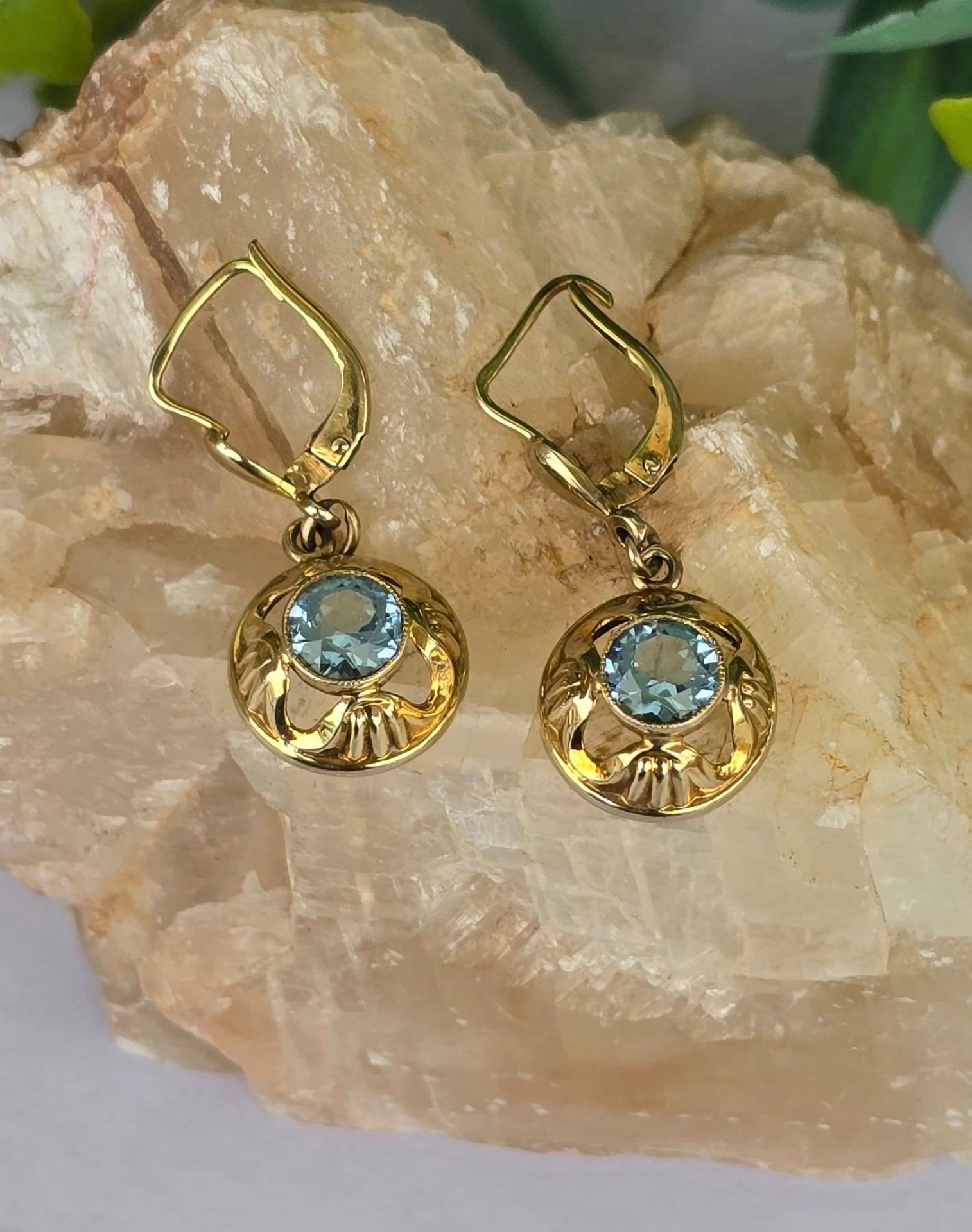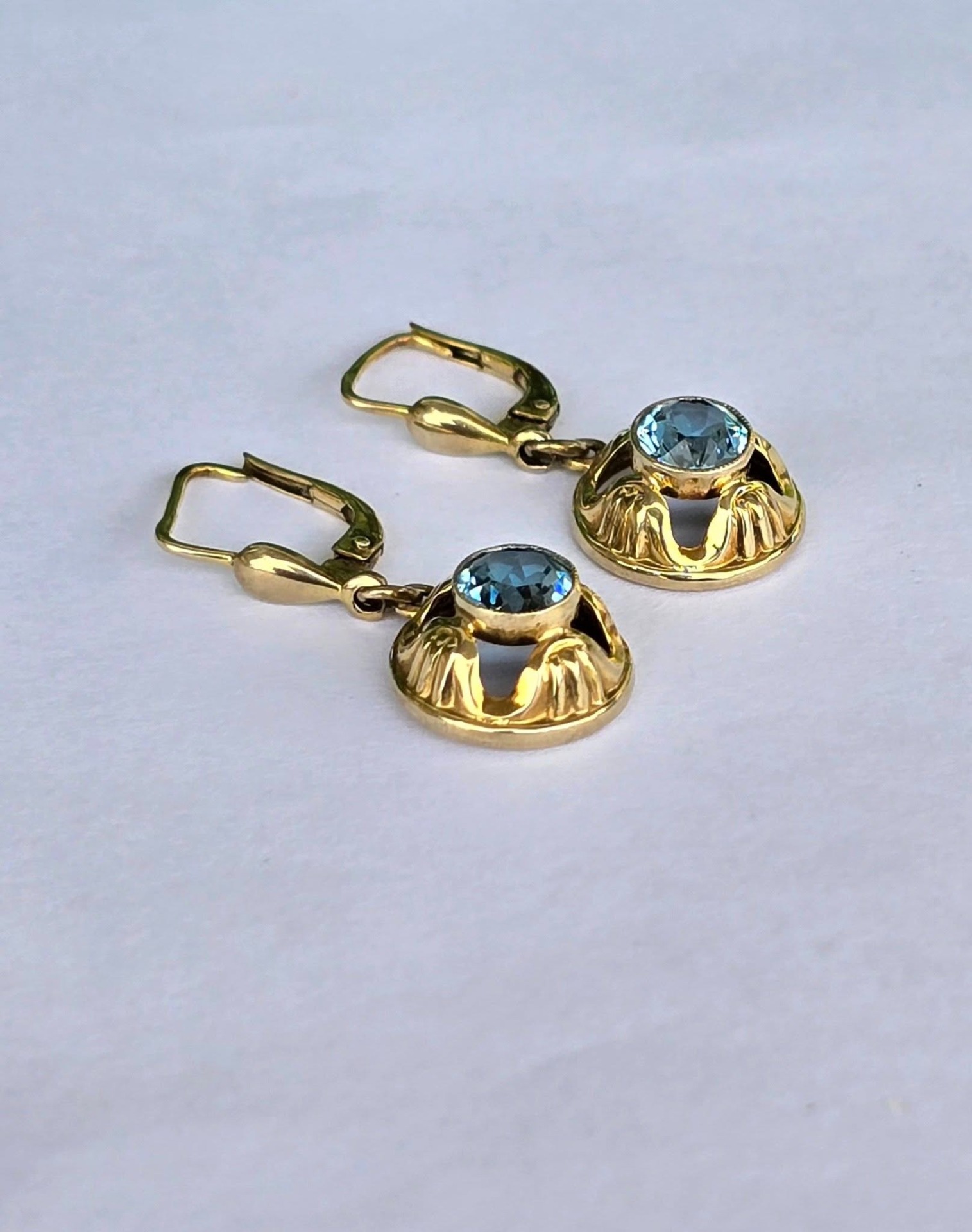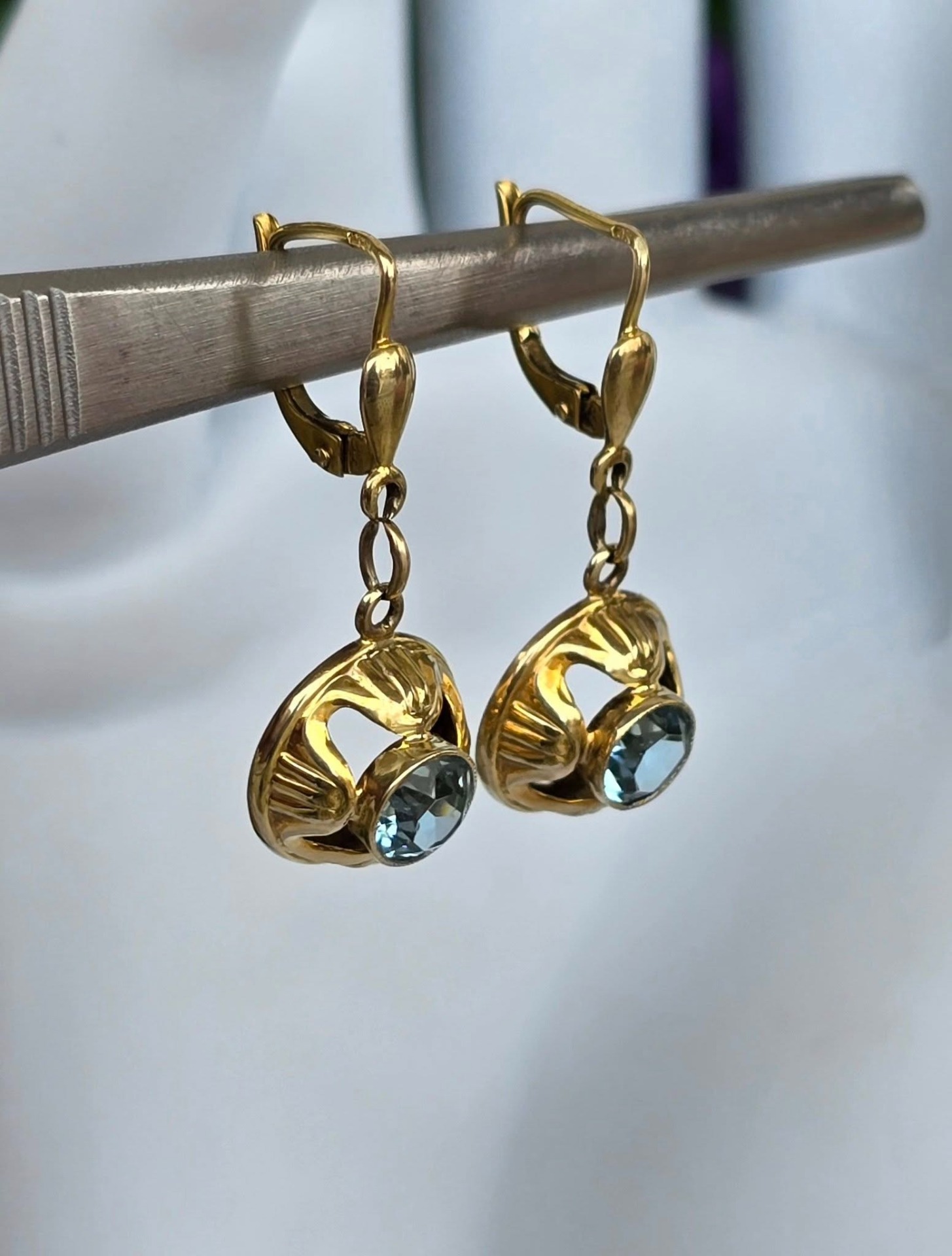 Cercei vechi din aur de 8K, cu "glass paste" albastre (anii 1930-1940, Austria).