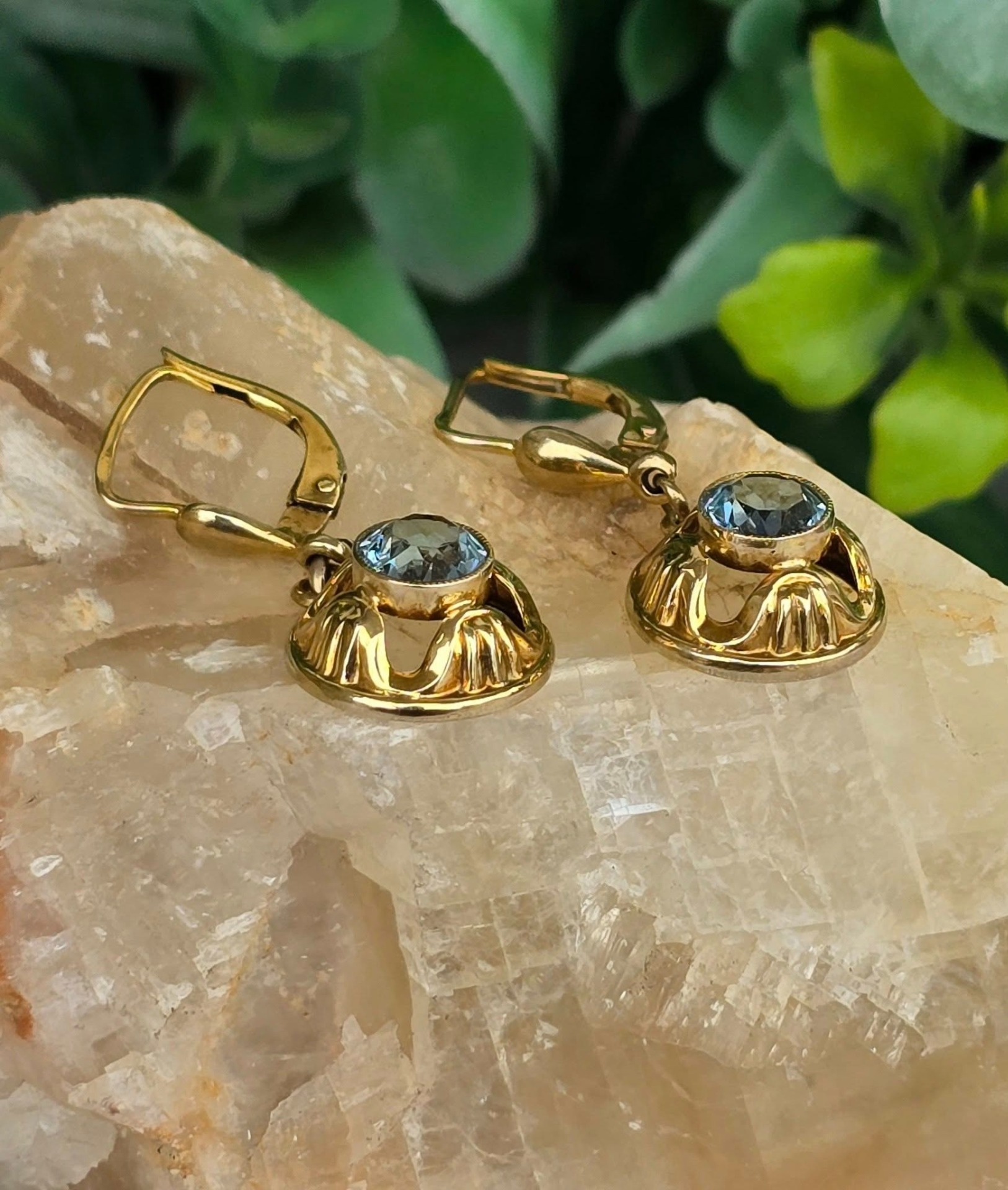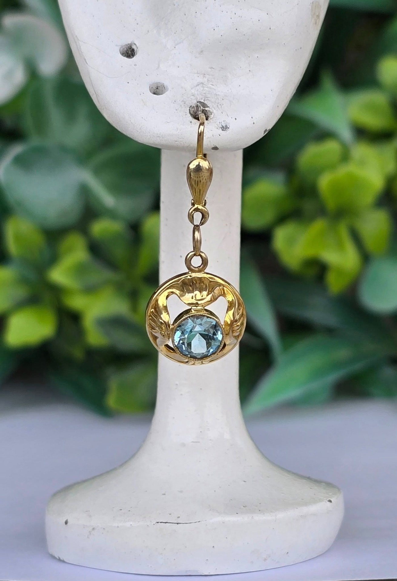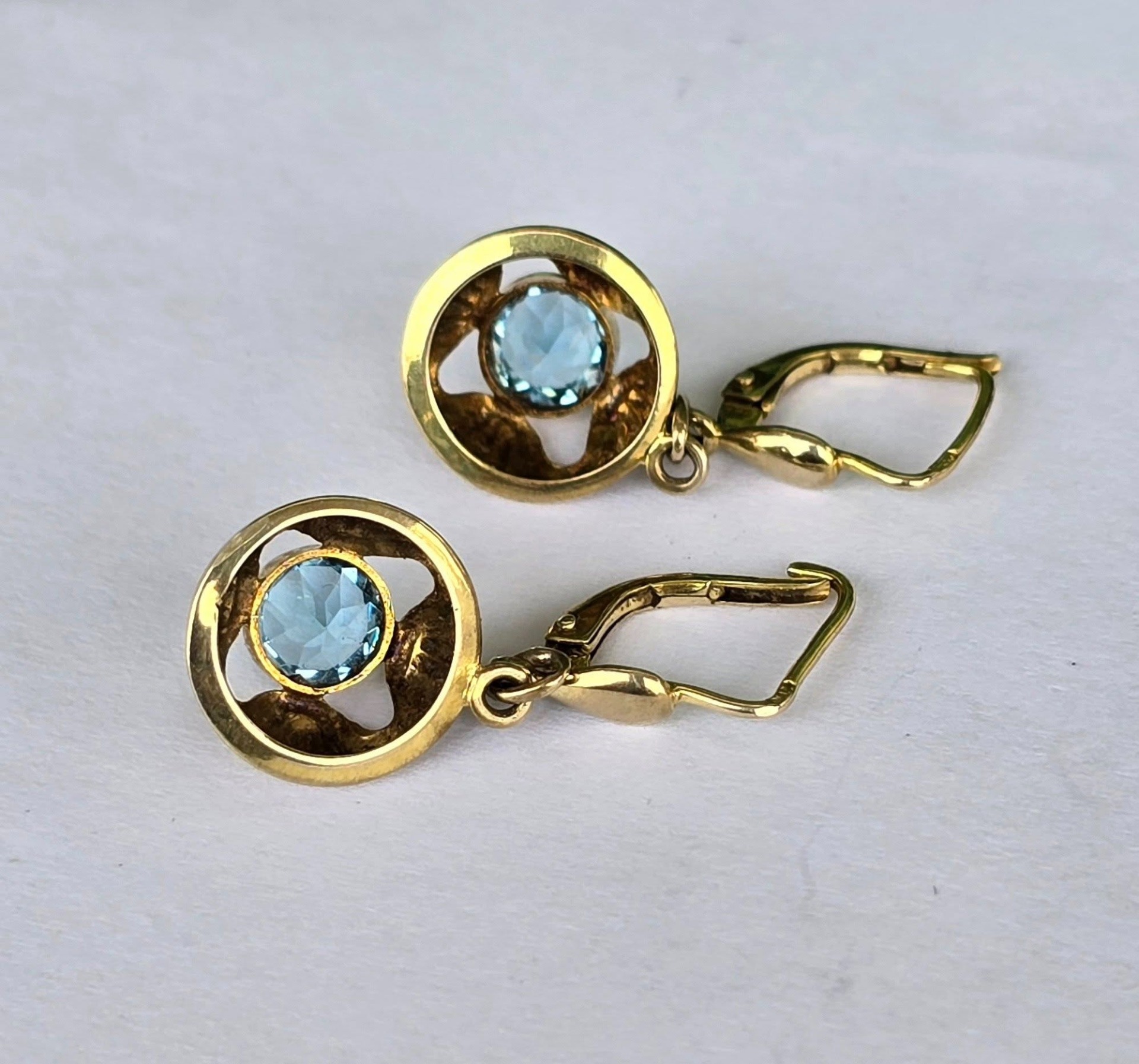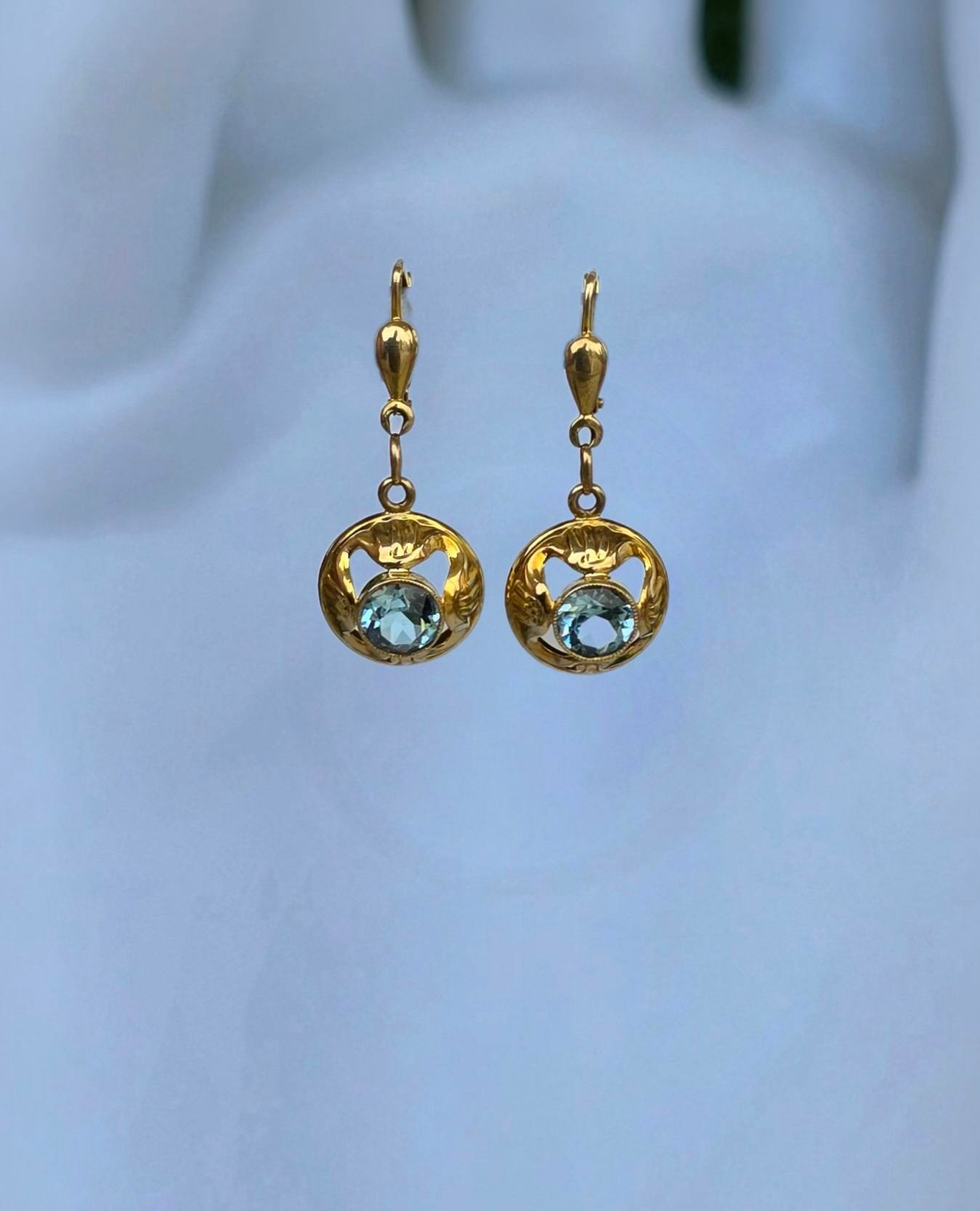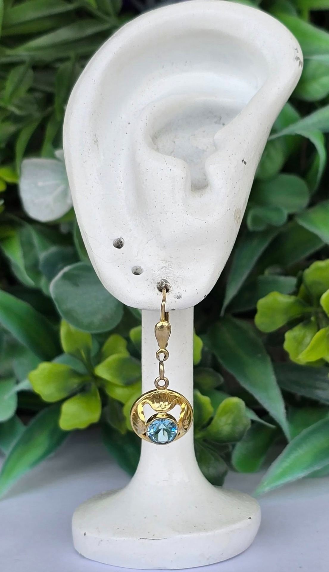 Cercei vechi din aur de 8K, cu "glass paste" albastre (anii 1930-1940, Austria).