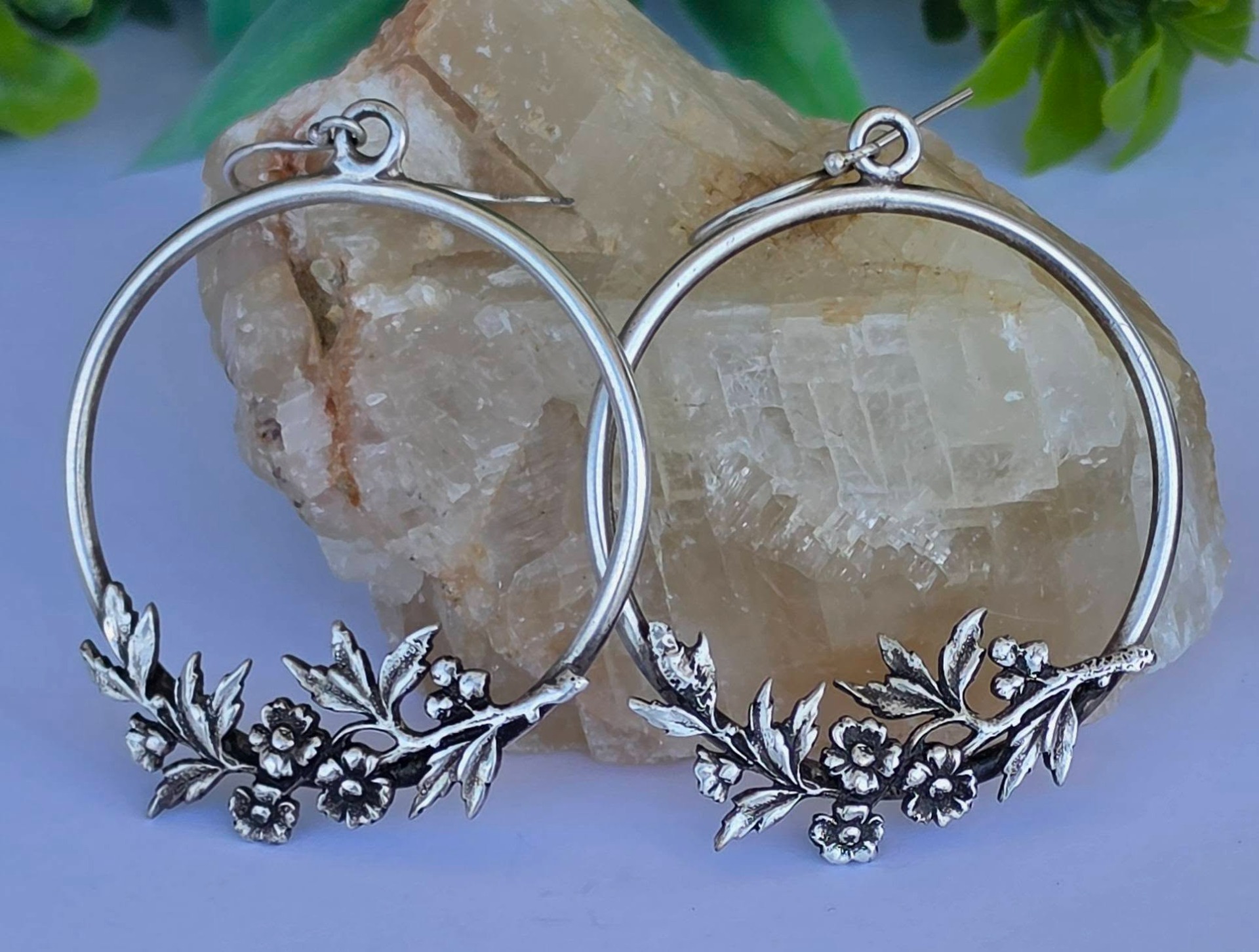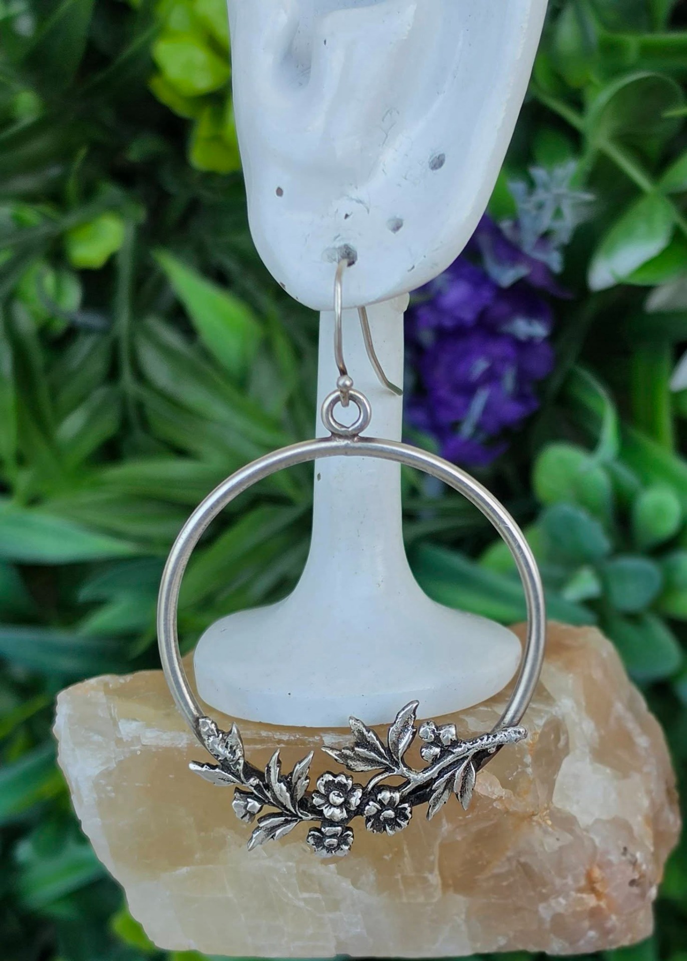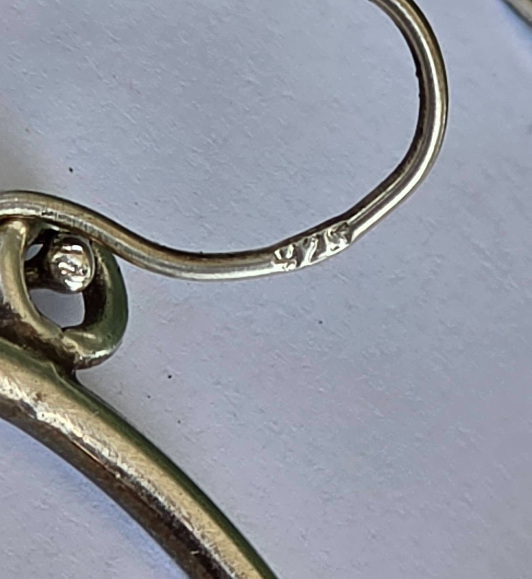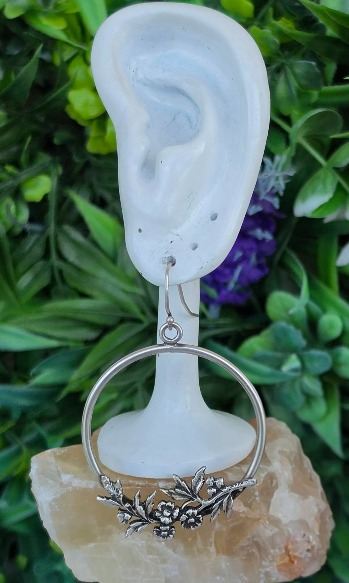 Cercei vechi spectaculoși, din metal argintat și tortițe din argint, manufactură în motiv floral în stil Art Nouveau.