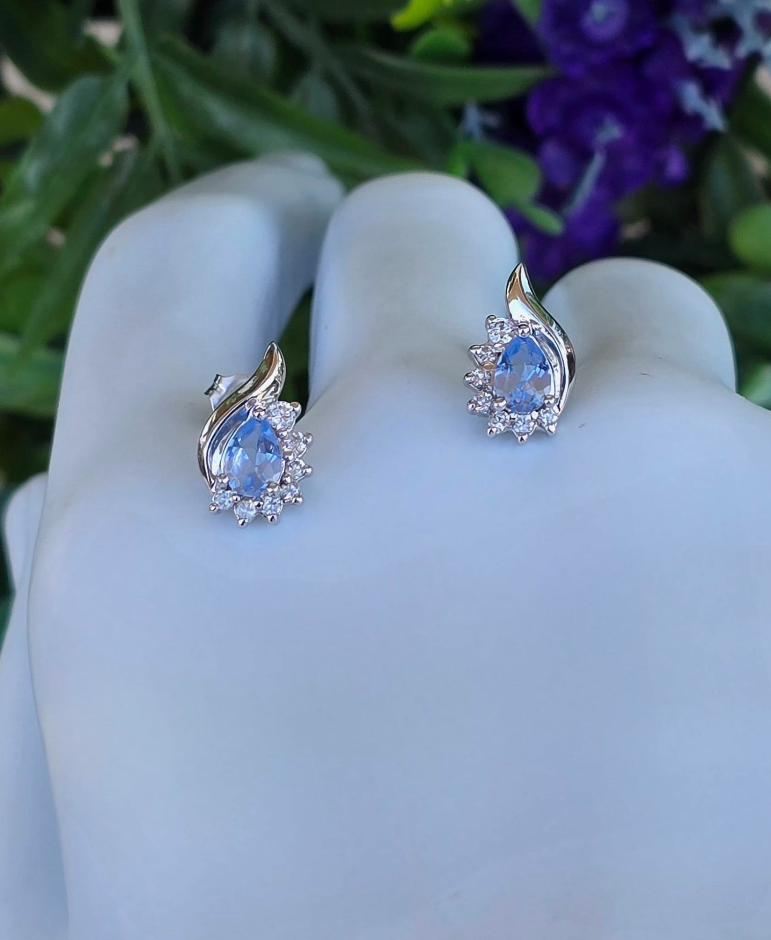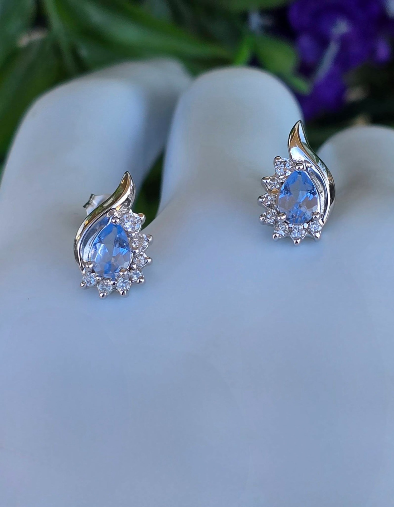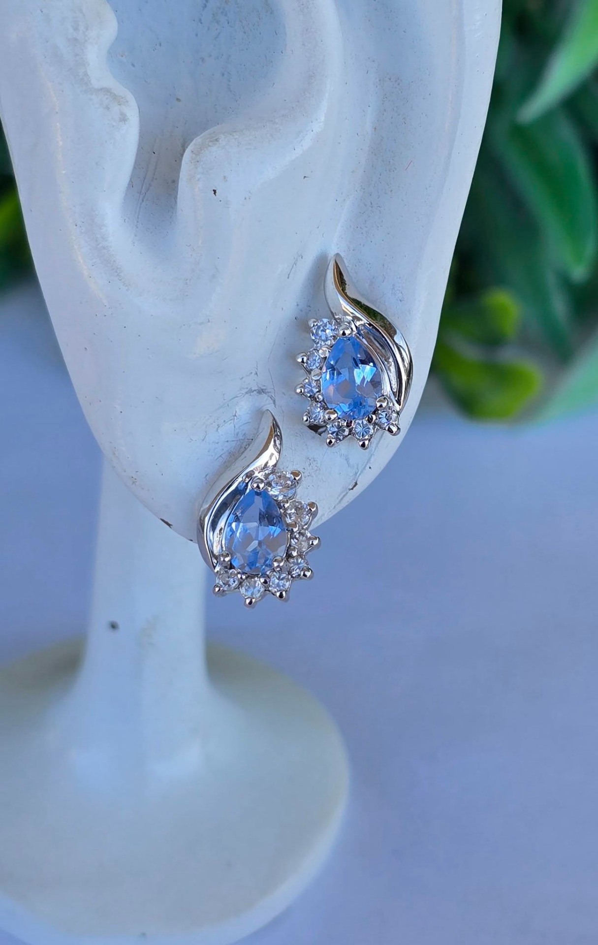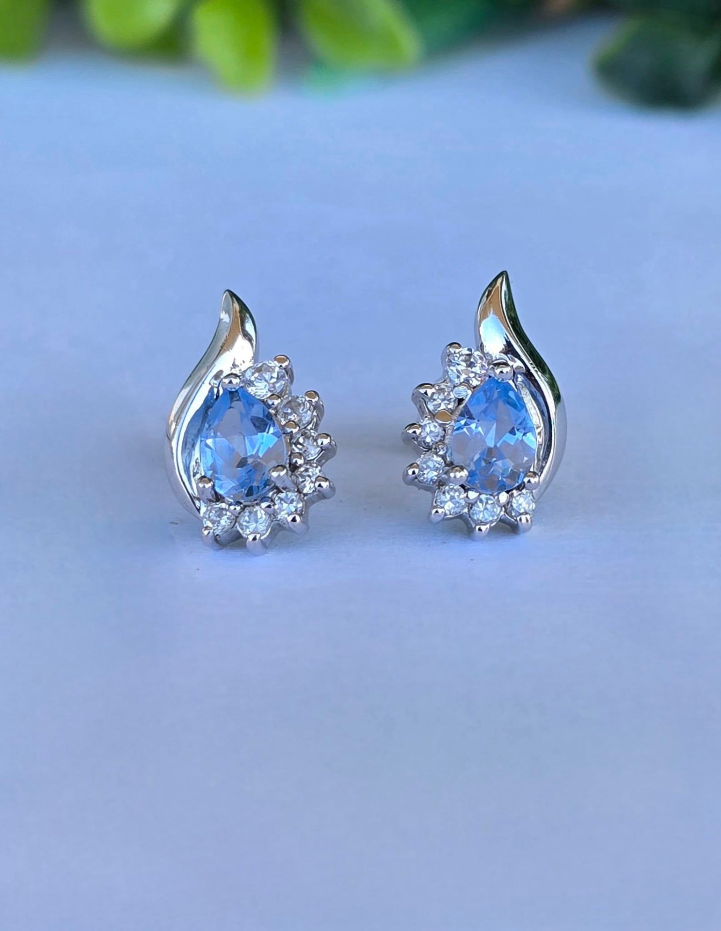Cercei vechi superbi, din argint, cu topaze "sky blue" naturale și pietre cubic zirconia.