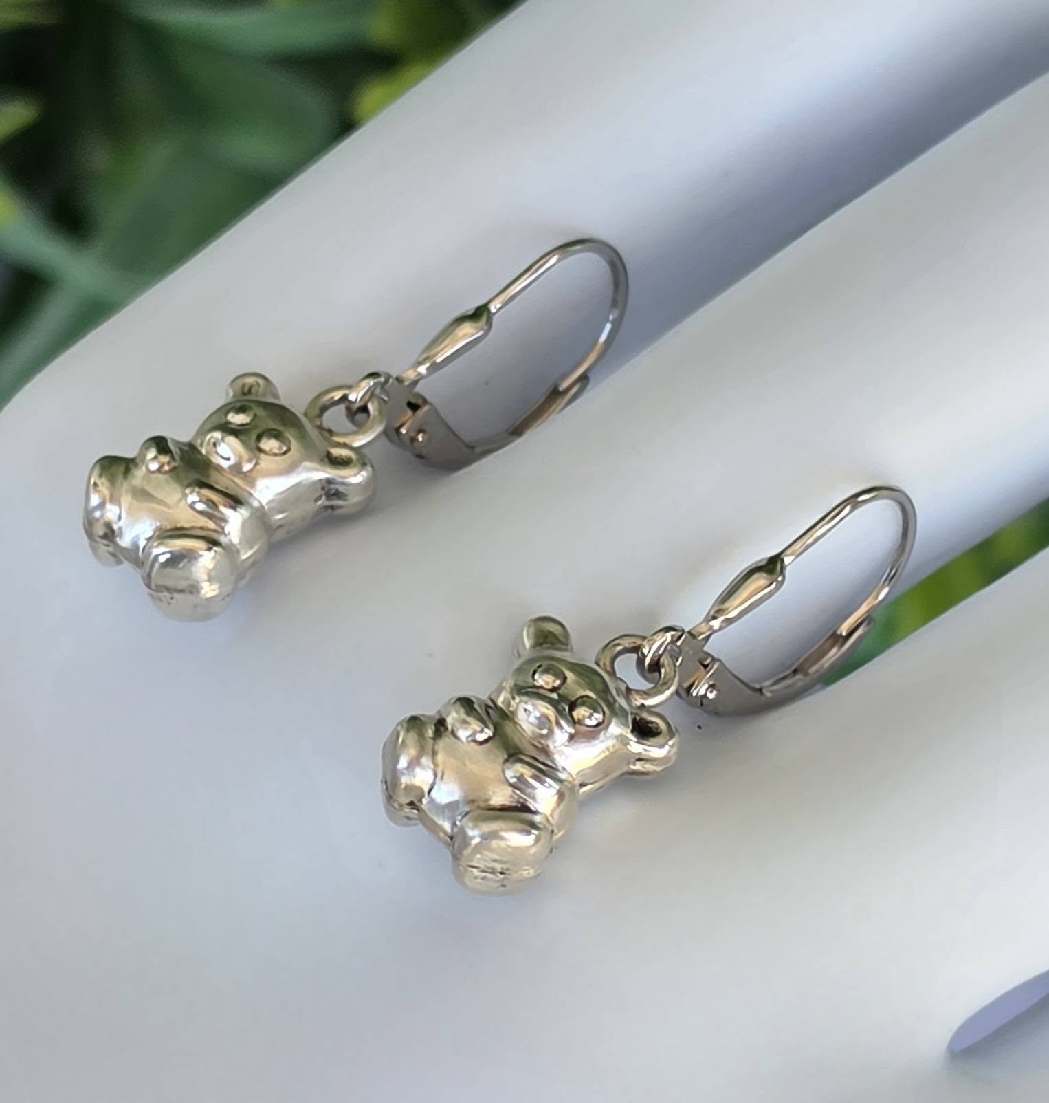 Cercei vechi superbi, din argint, frumos stilizați cu ursuleți.