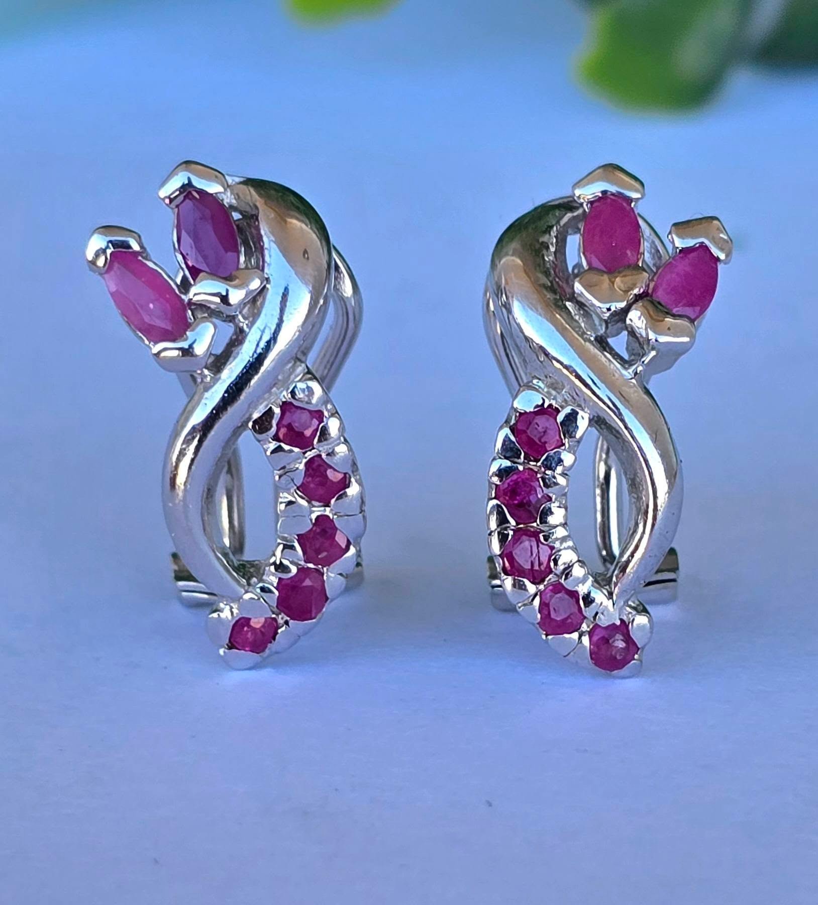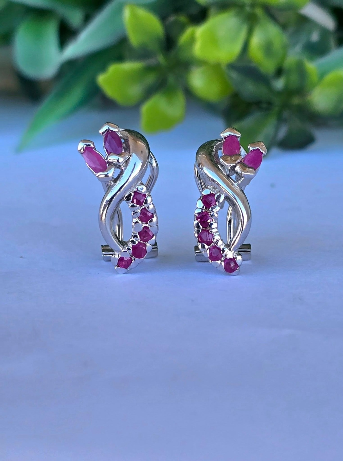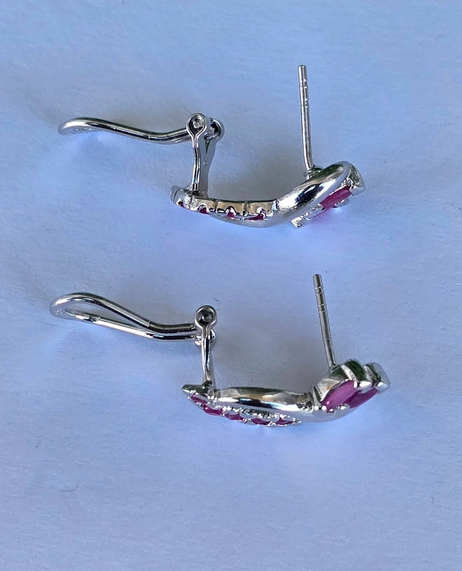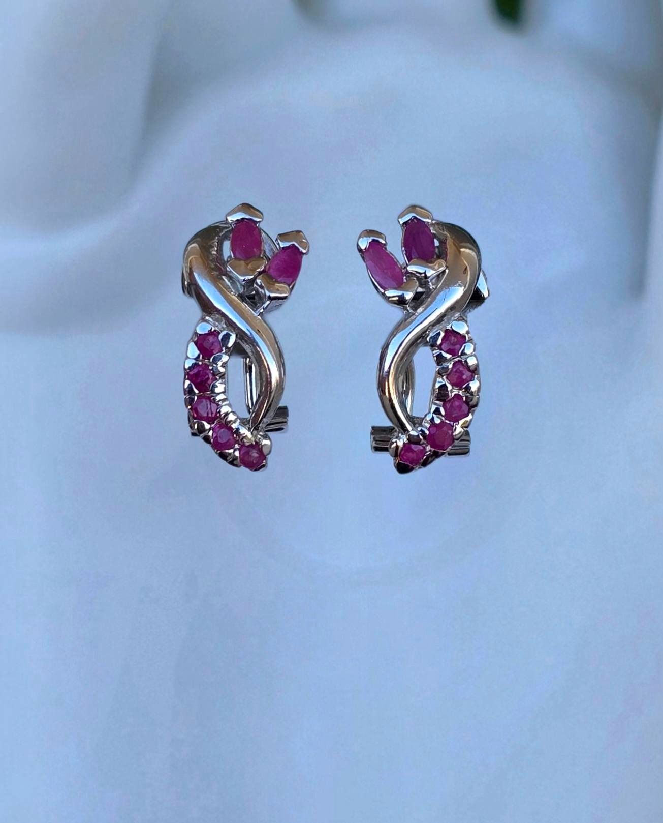 Cercei vechi superbi, din argint rodiat, cu 14 rubine naturale.