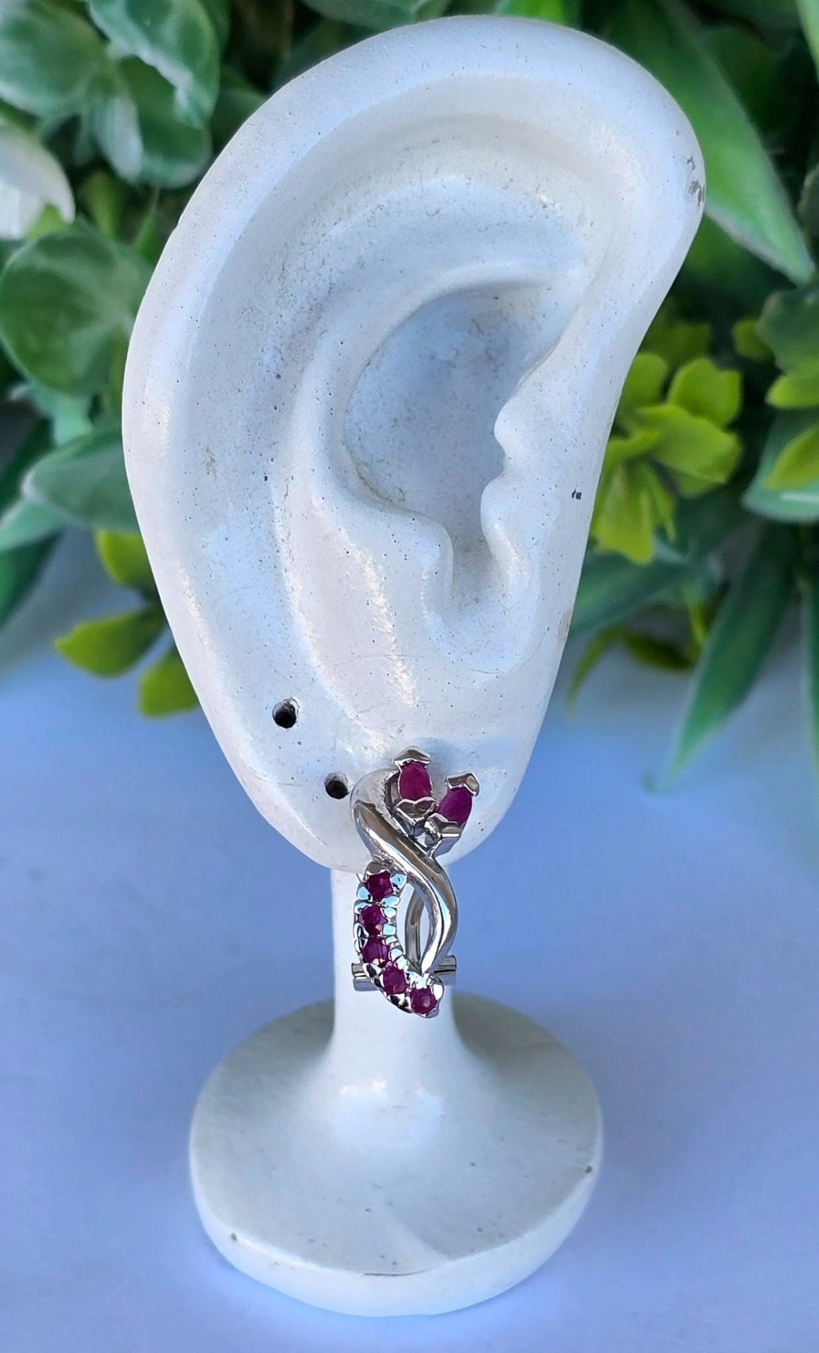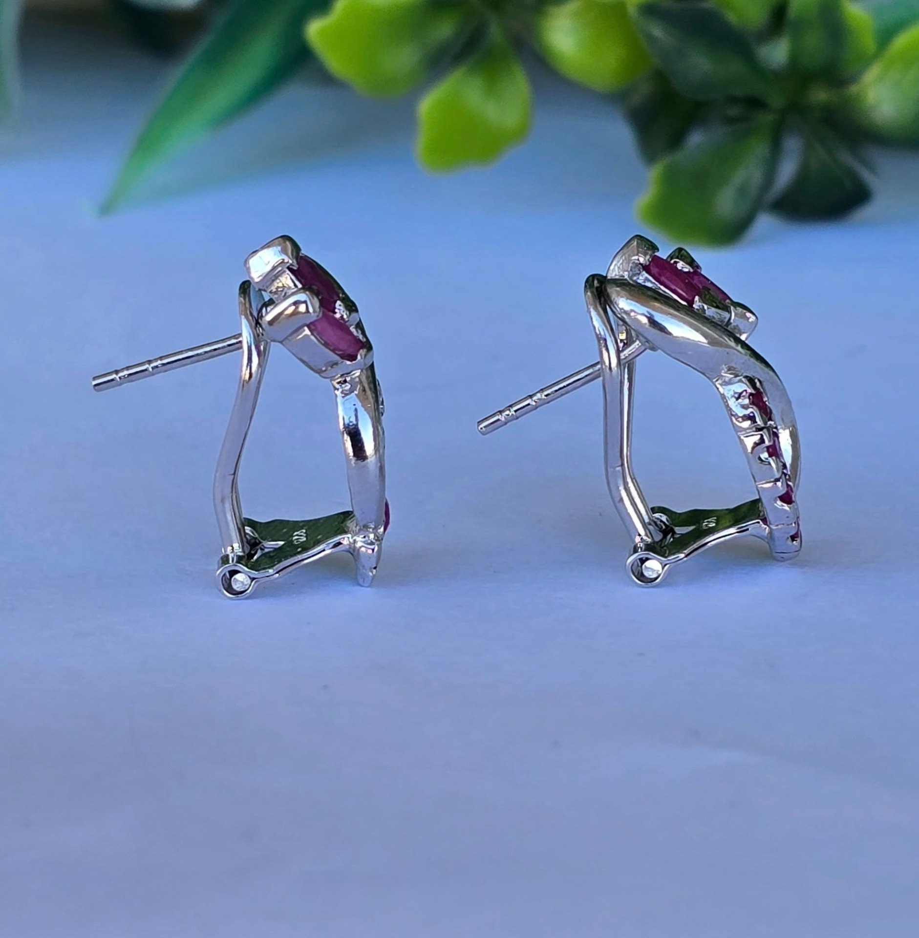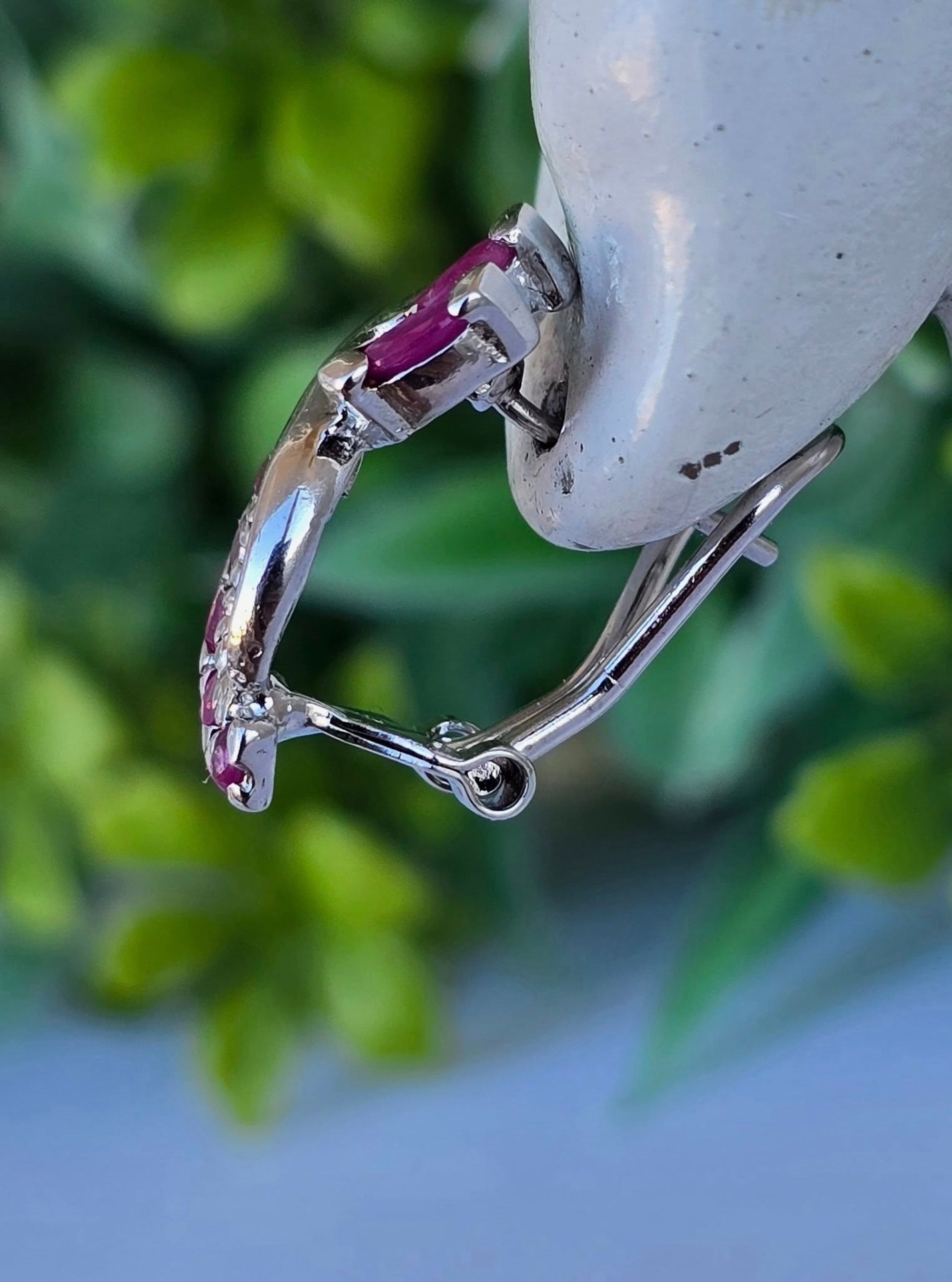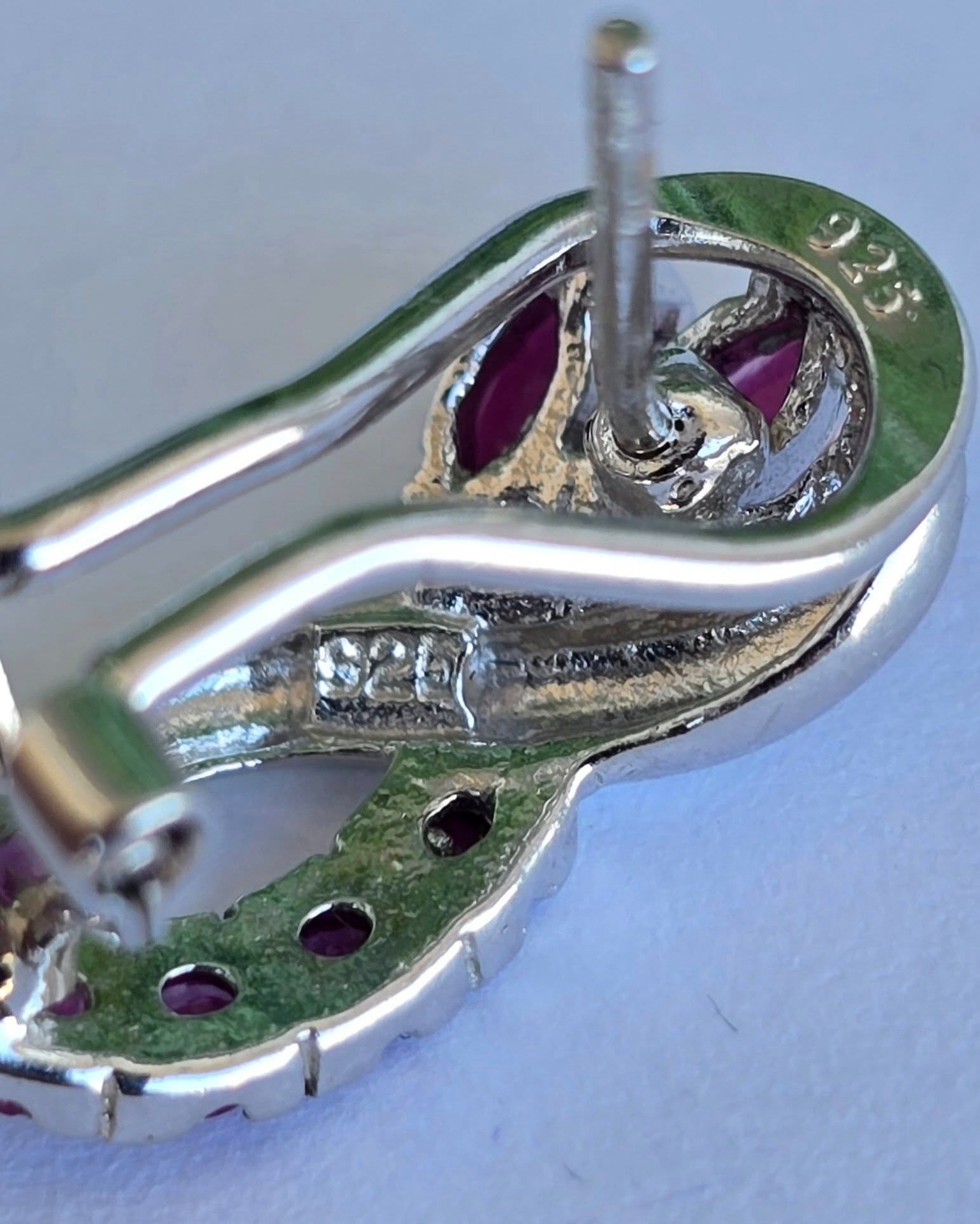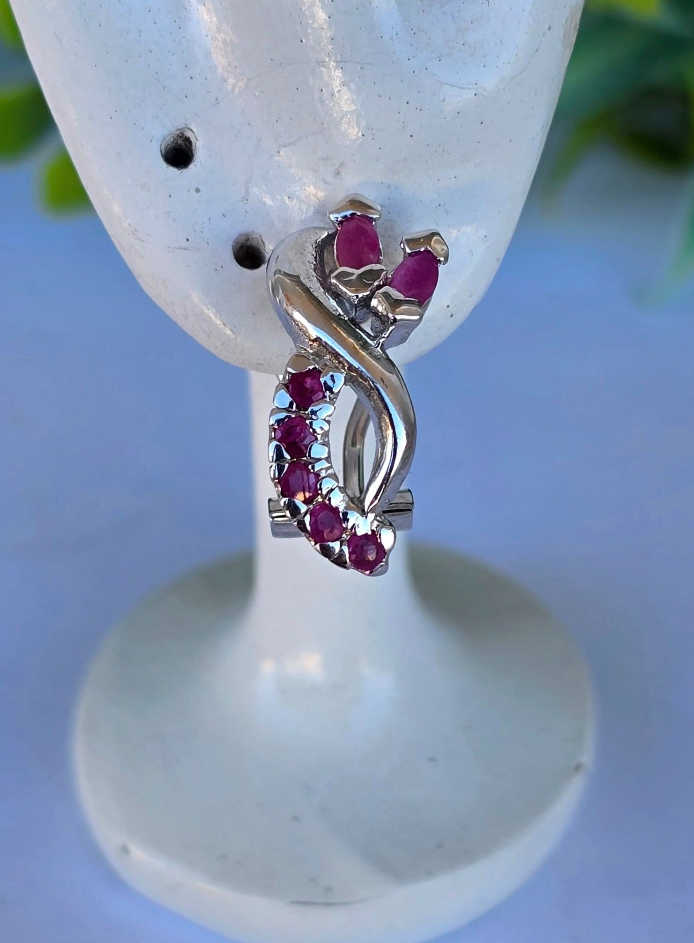 Cercei vechi superbi, din argint rodiat, cu 14 rubine naturale.