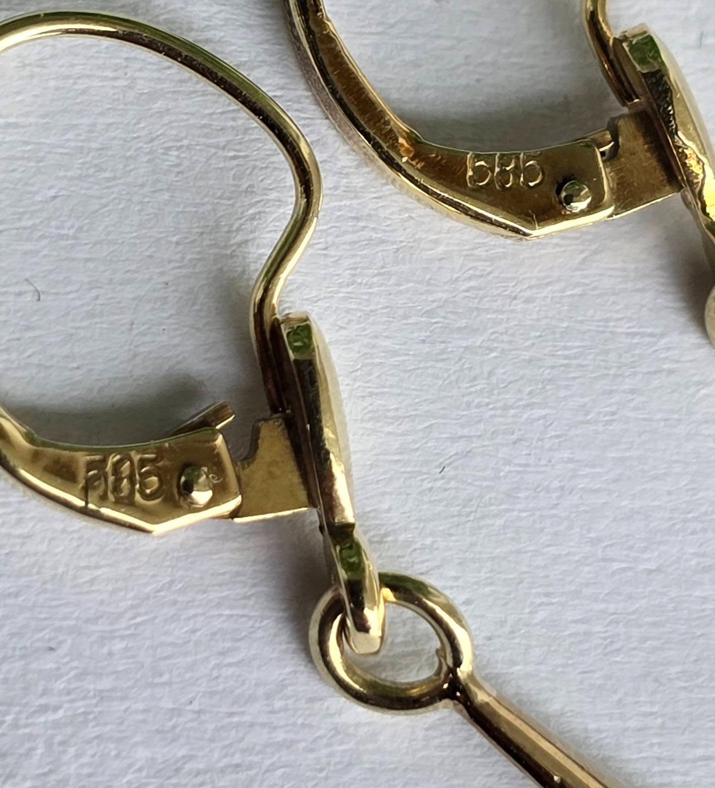 Prezintă marcaje 585 pentru puritate aur de 14K.