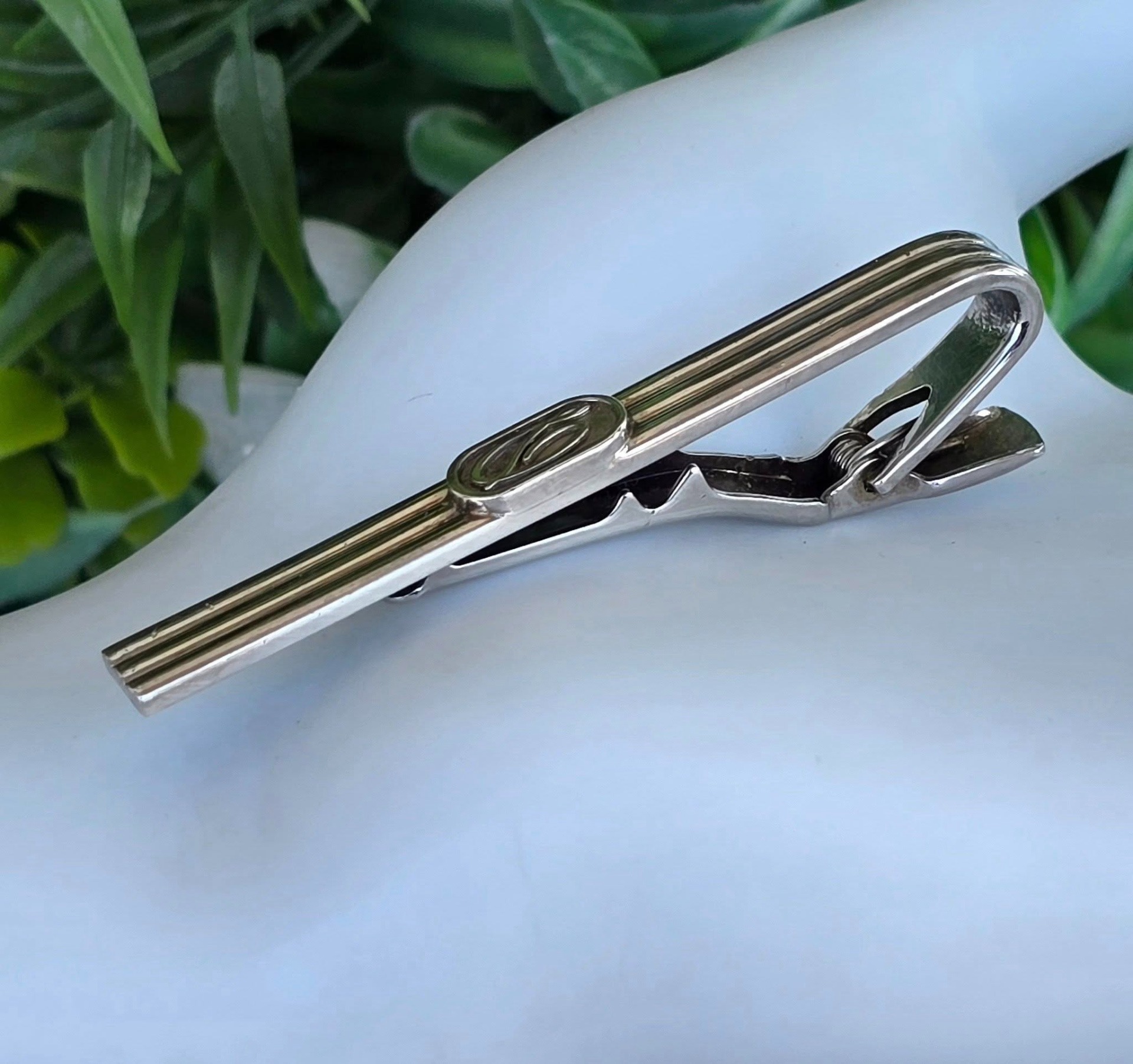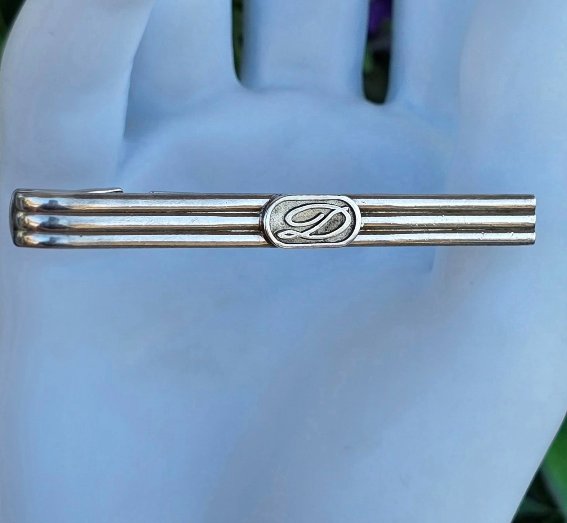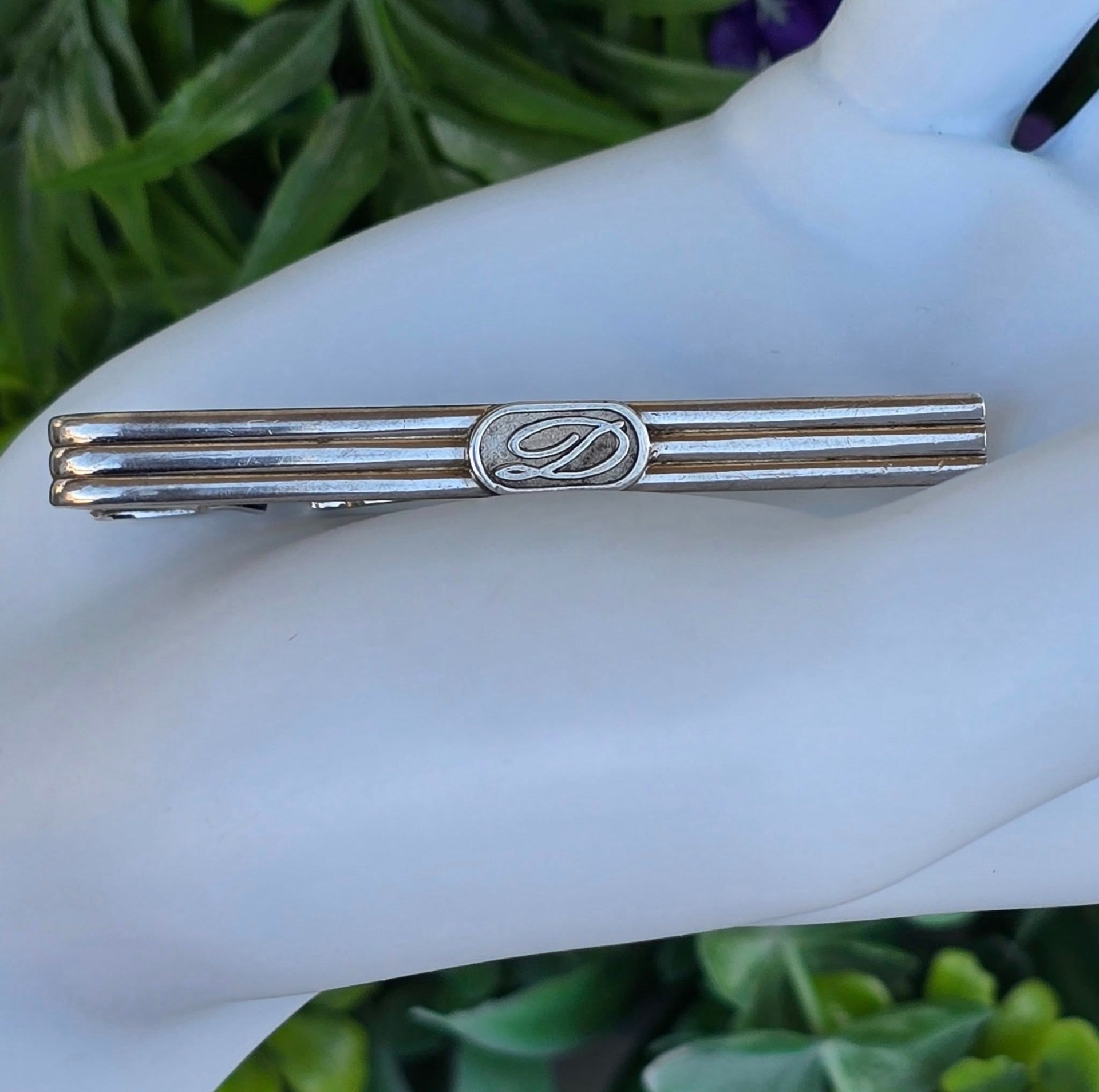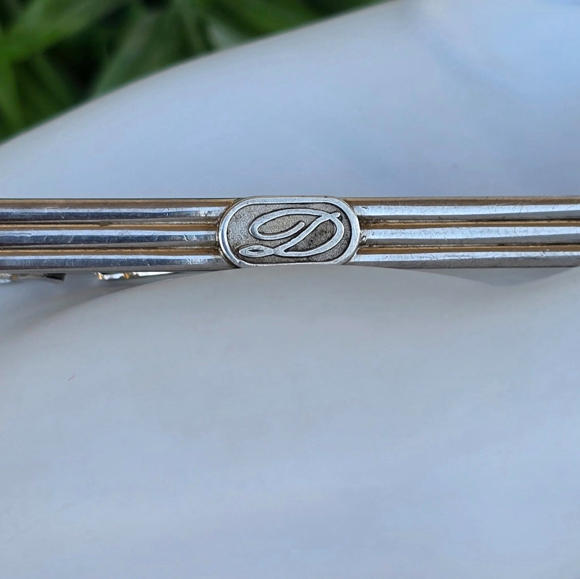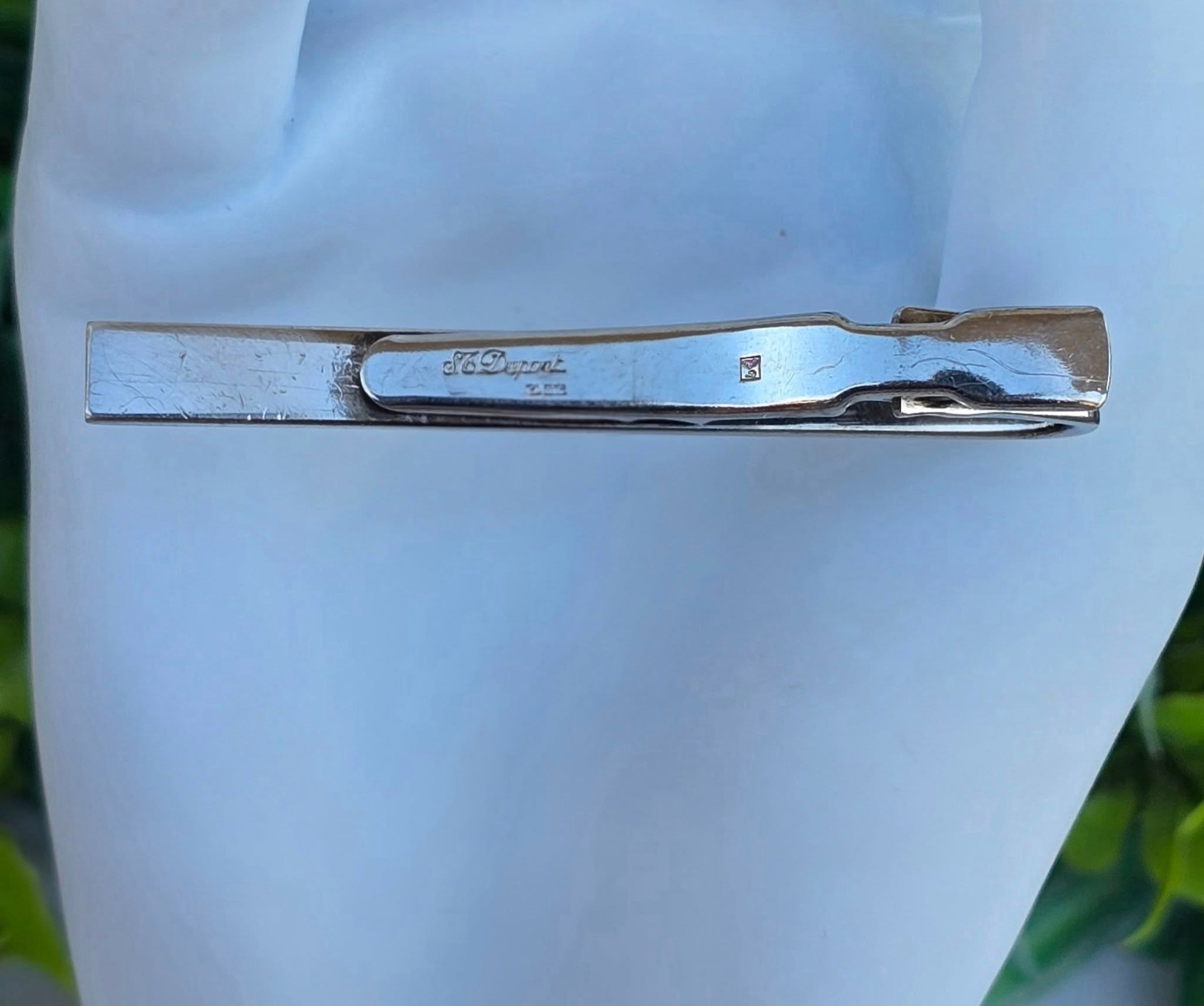 Clemă de cravată vintage S.T. Dupont Paris, de colecție, din metal argintat (anii 1990, Franța).