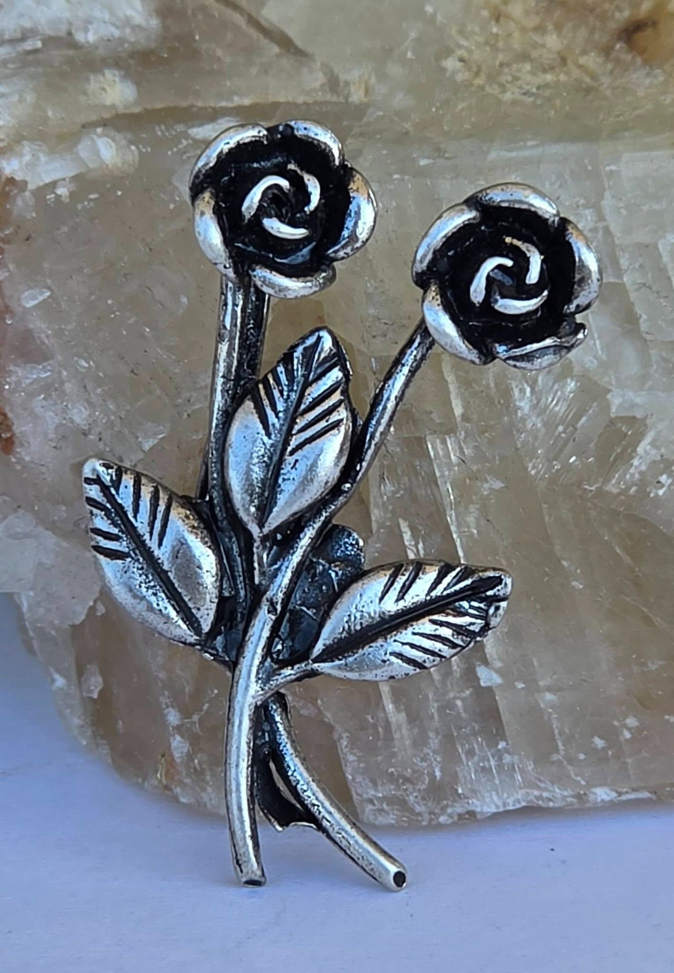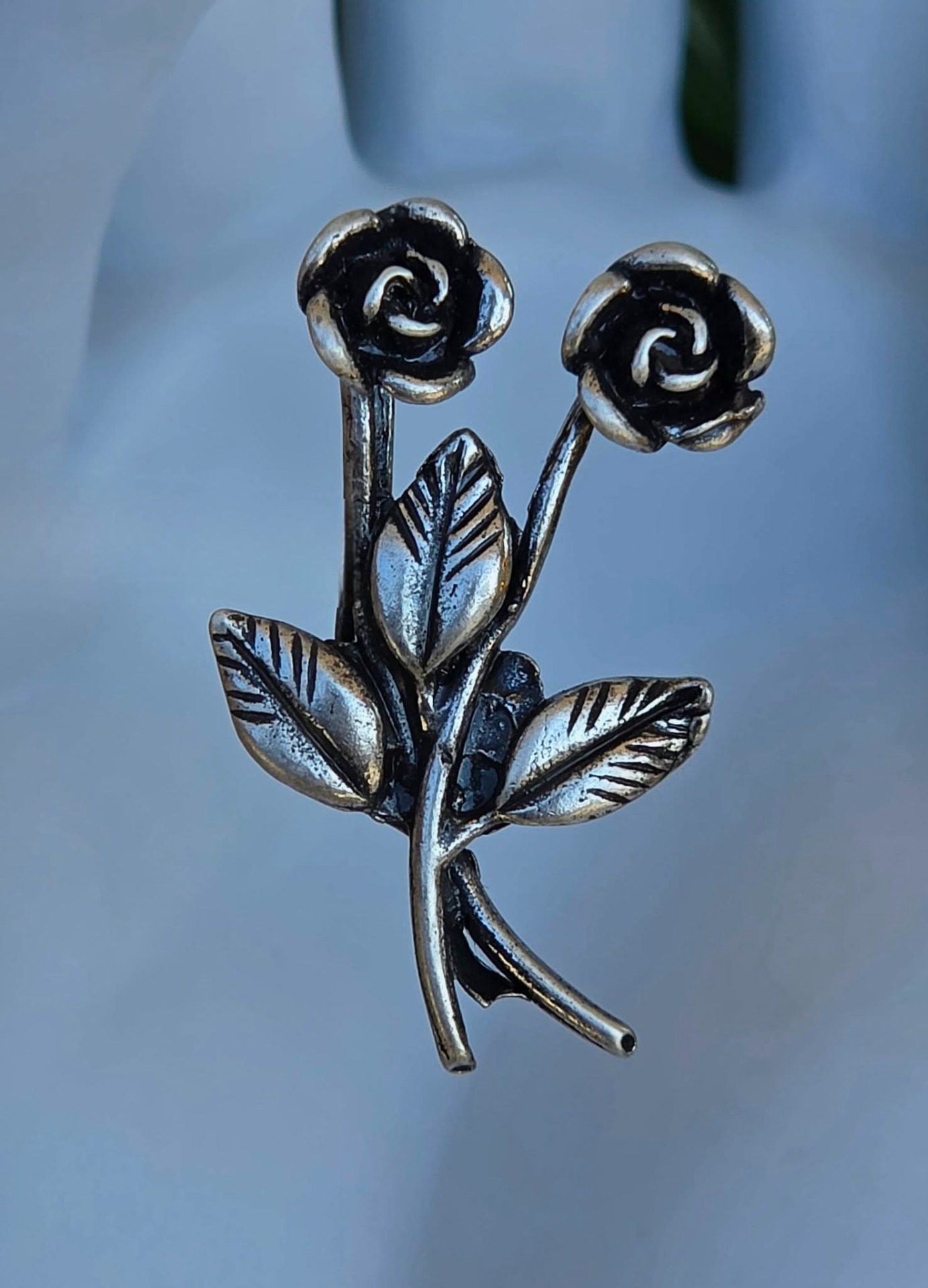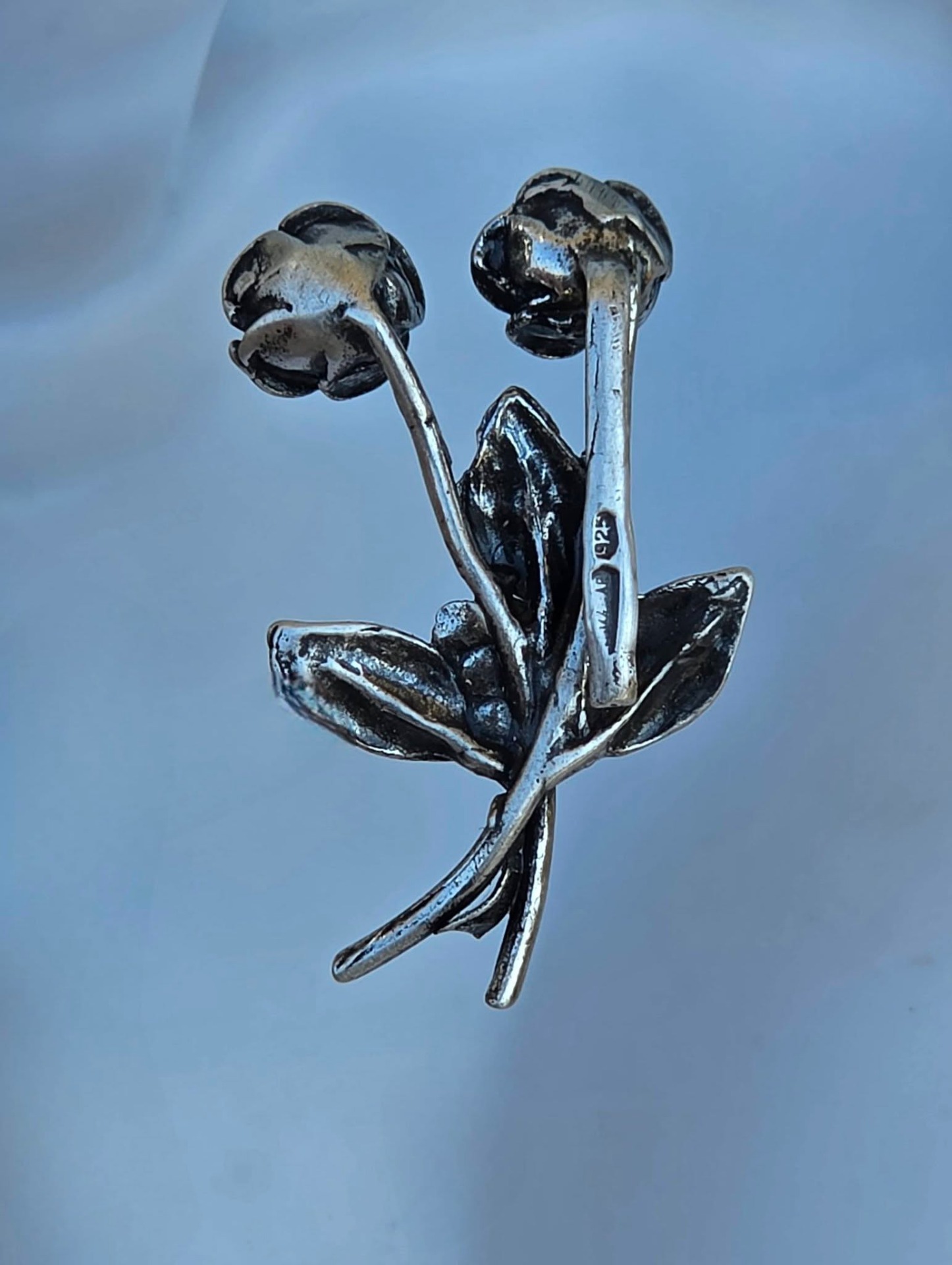Clemă de rever vintage, din argint, frumos stilizată în motiv floral (anii 1950-1960, Arezzo, Italia).