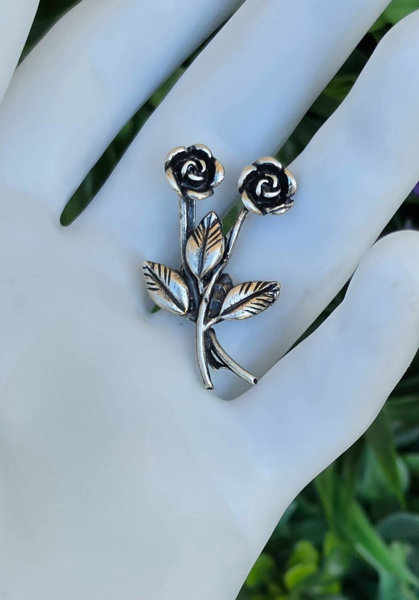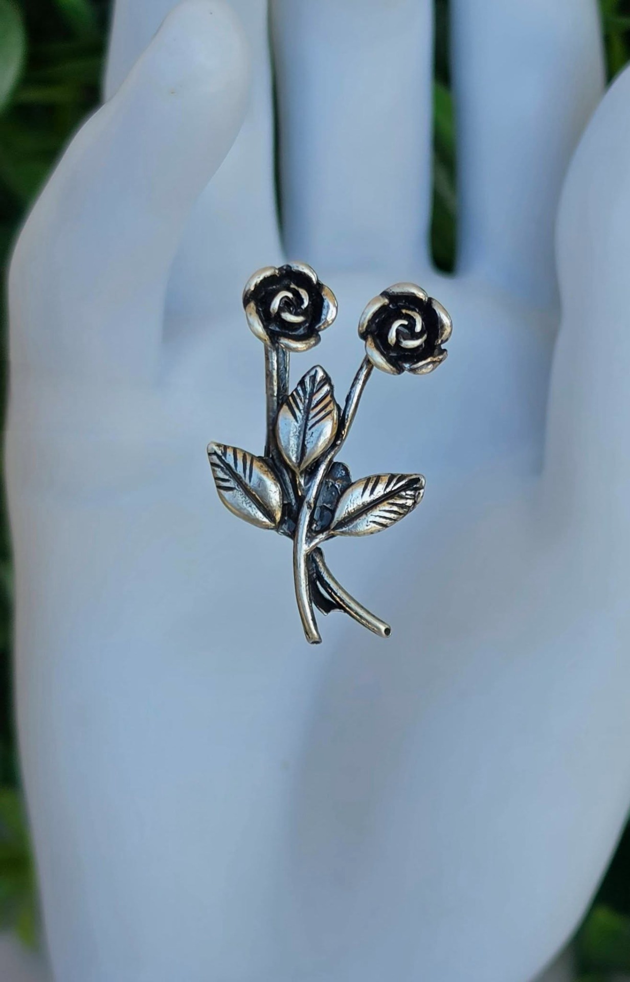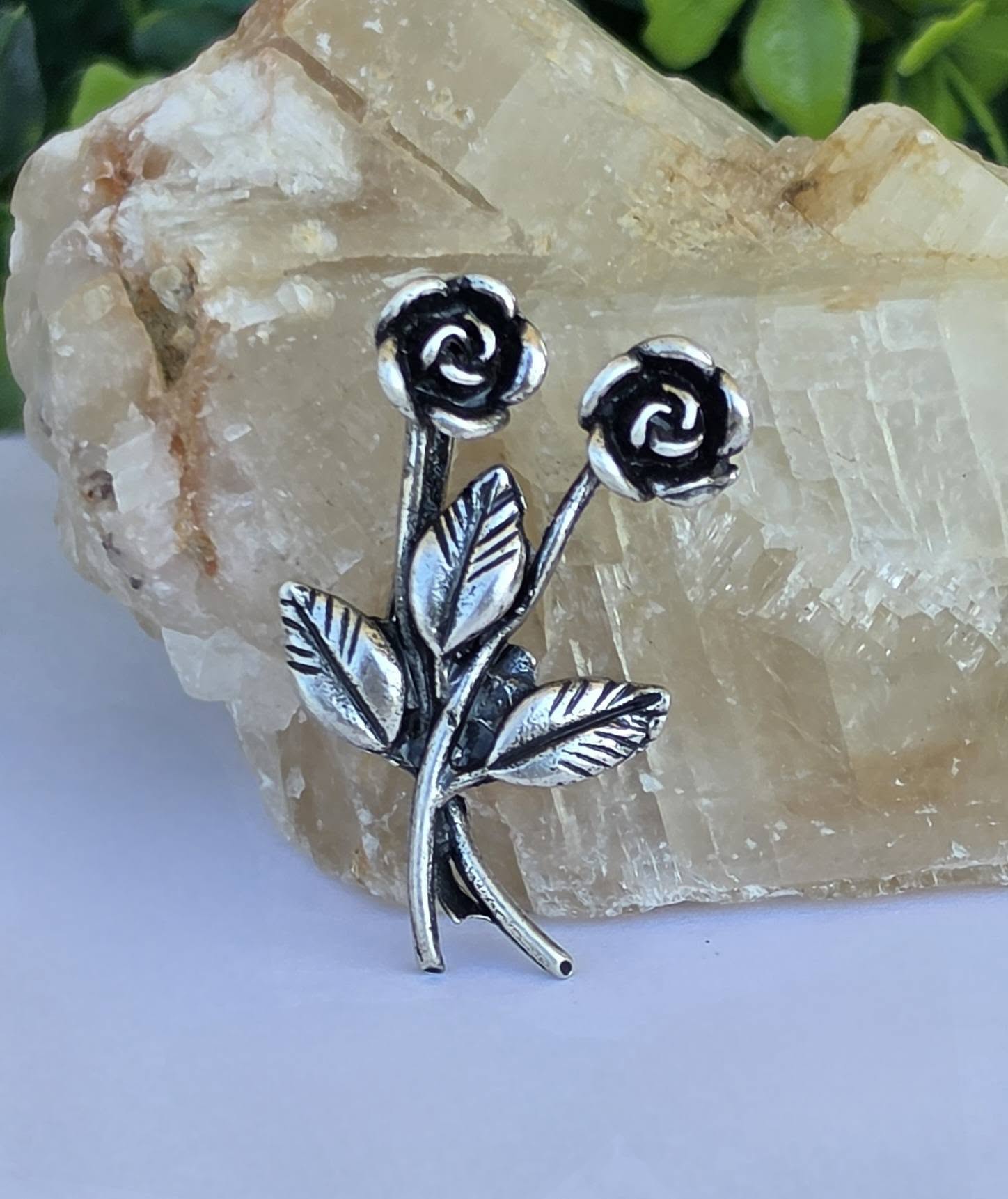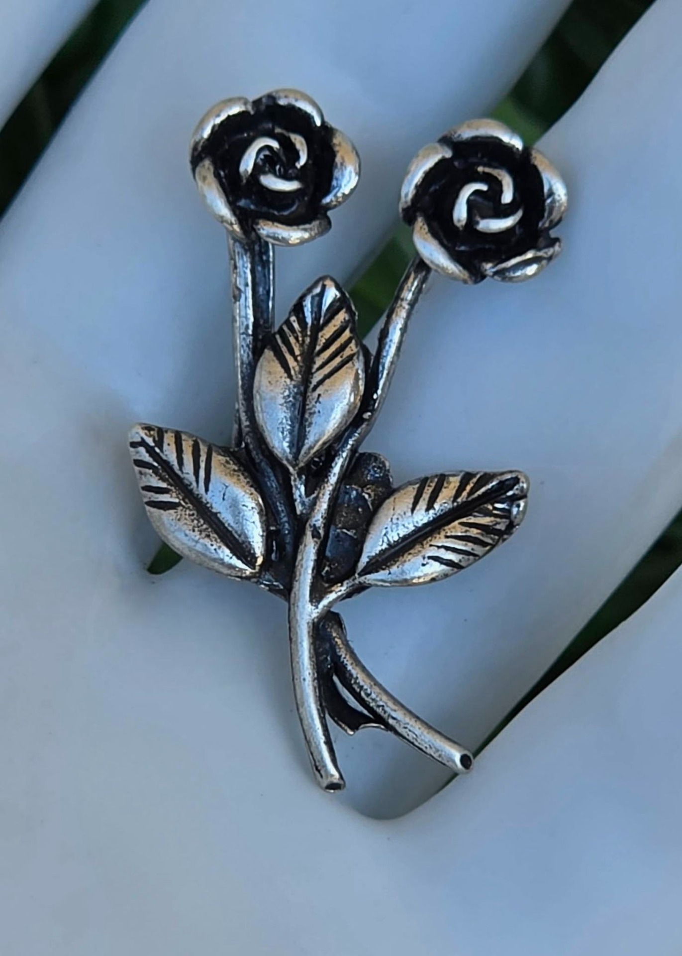 Clemă de rever vintage, din argint, frumos stilizată în motiv floral (anii 1950-1960, Arezzo, Italia).