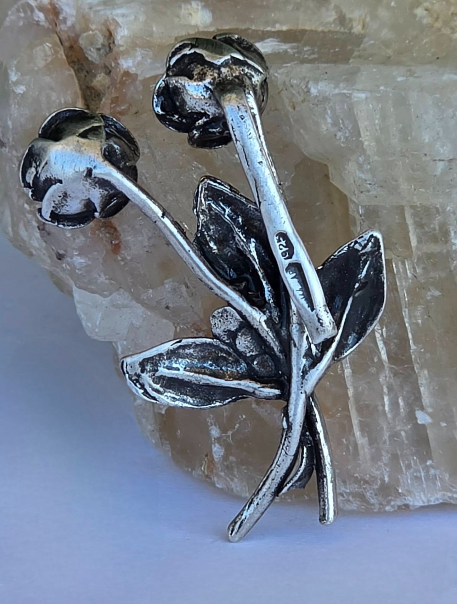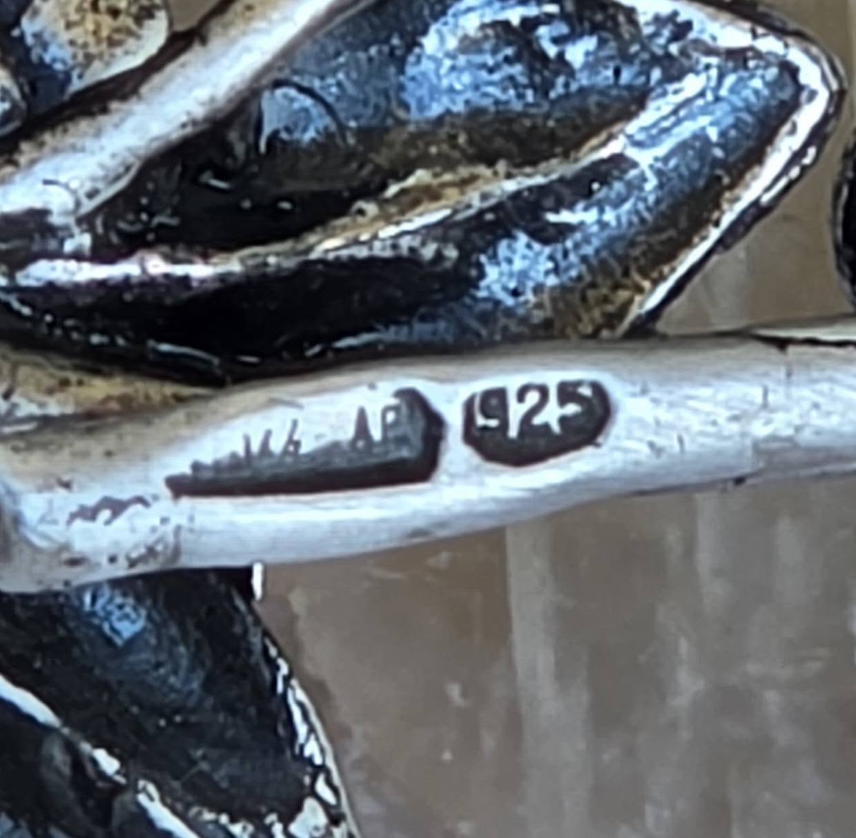 Prezintă marcaj de argint 925, marcaj de atelier și de birou de certificare.