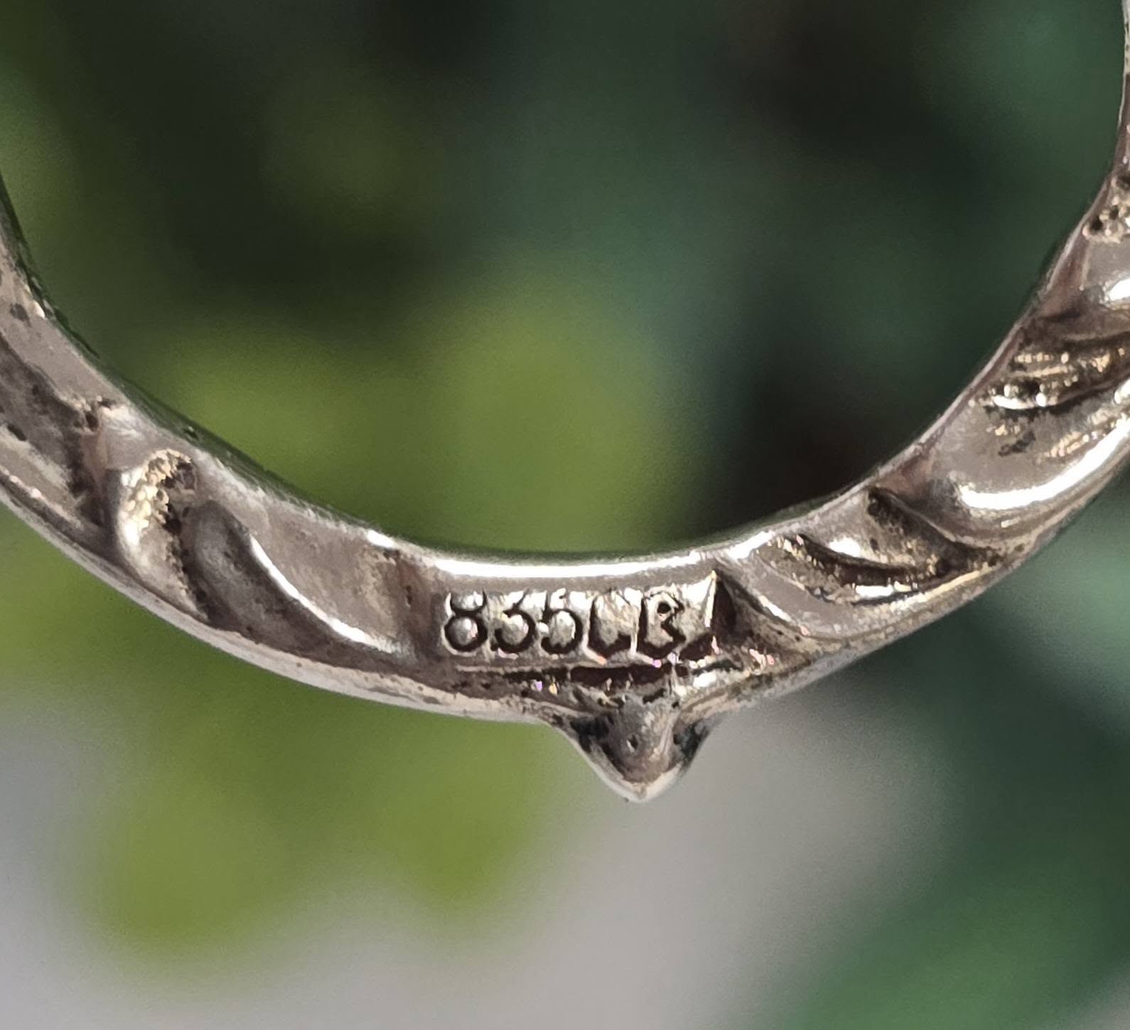 Prezintă marcaj de argint 835 și marcaj de meșter.