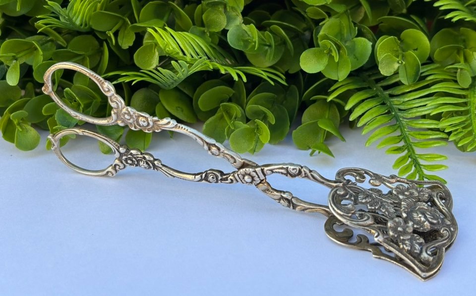 Clește vechi din argint, frumos lucrat manual în motiv floral, manufactură deosebită.
