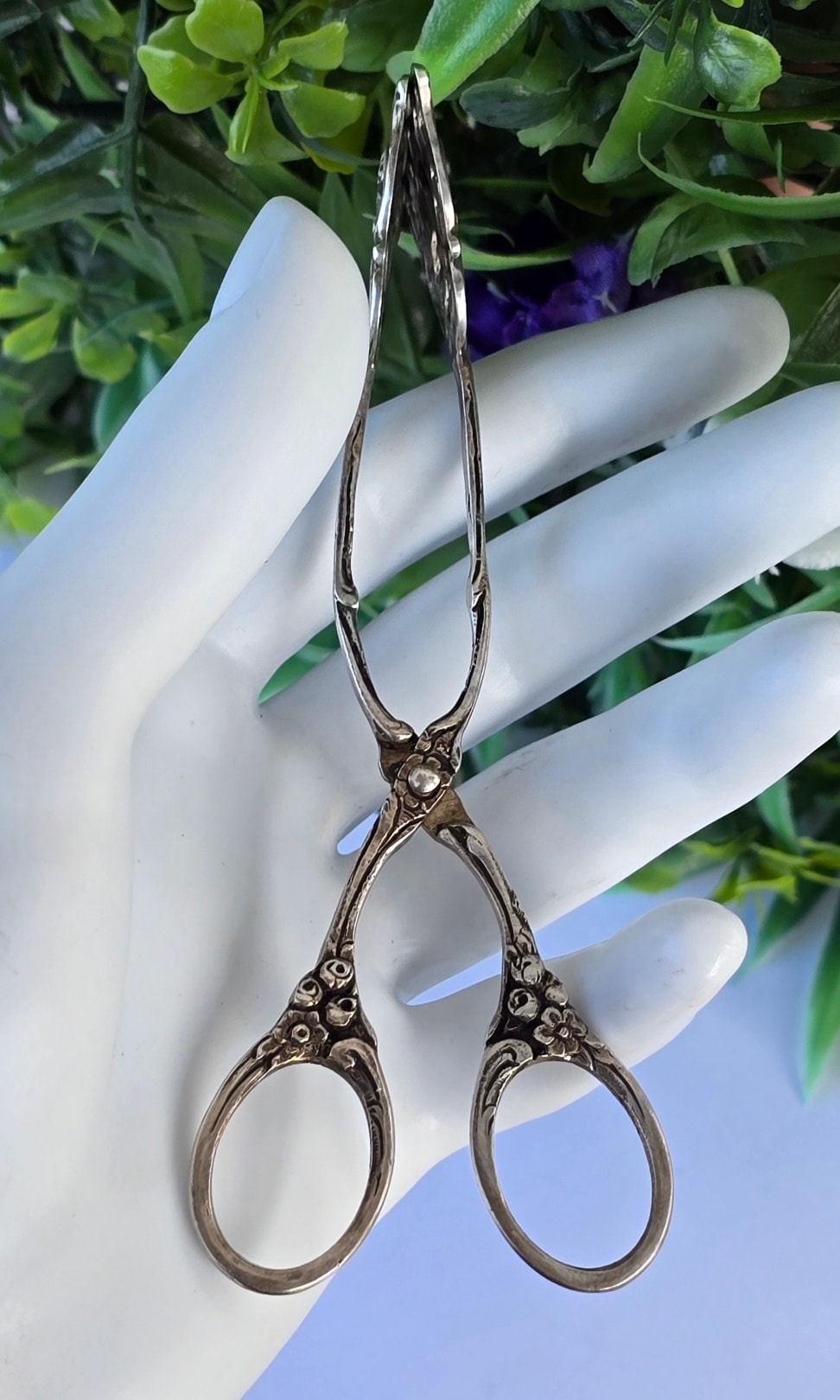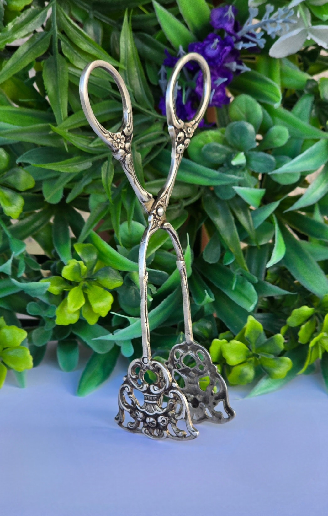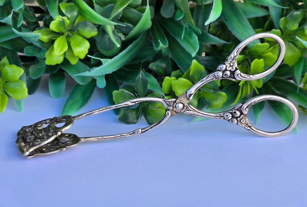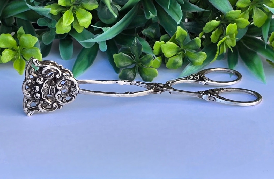 Clește vechi din argint, frumos lucrat manual în motiv floral, manufactură de meșter german (încep.sec.XX, Germania).