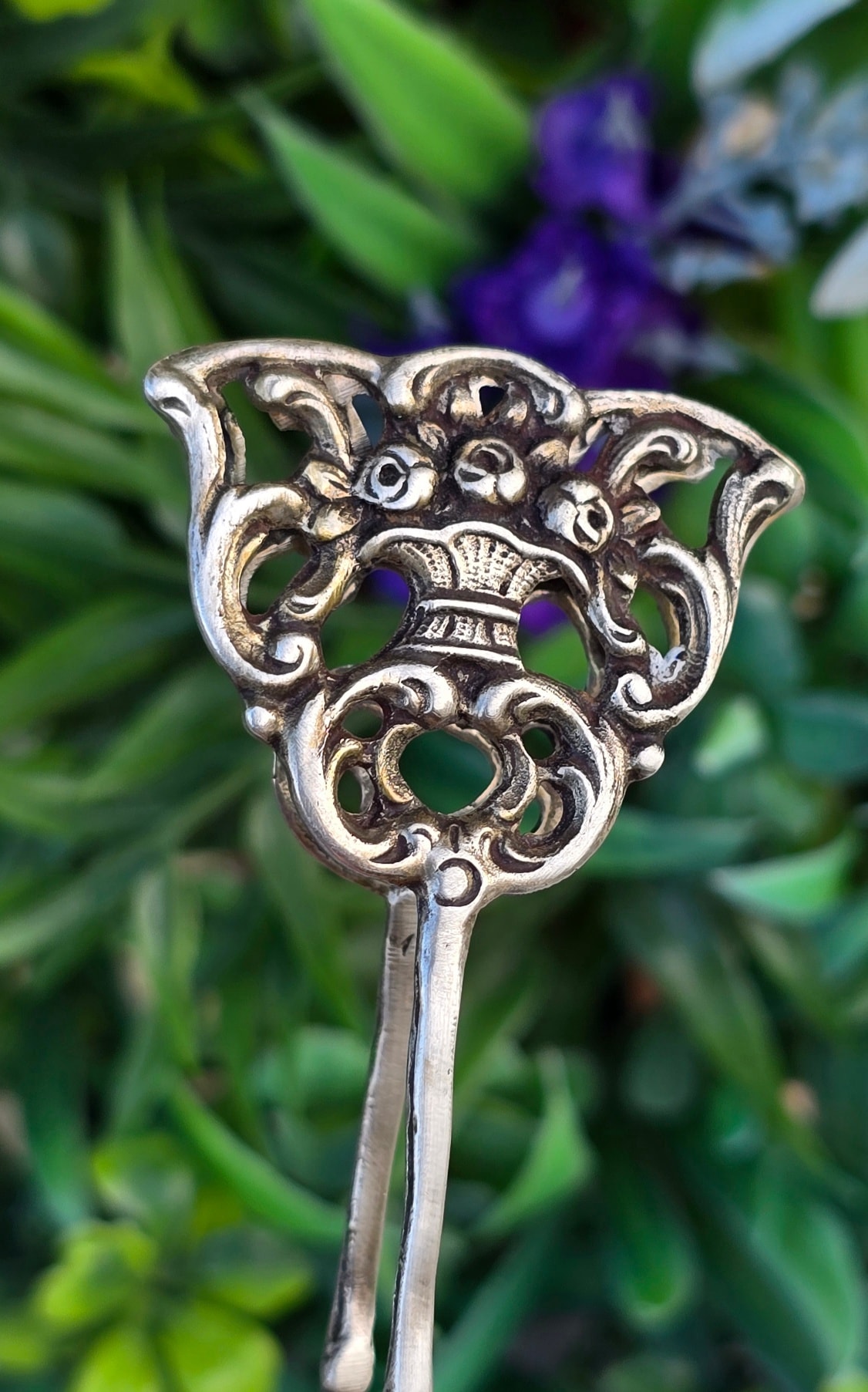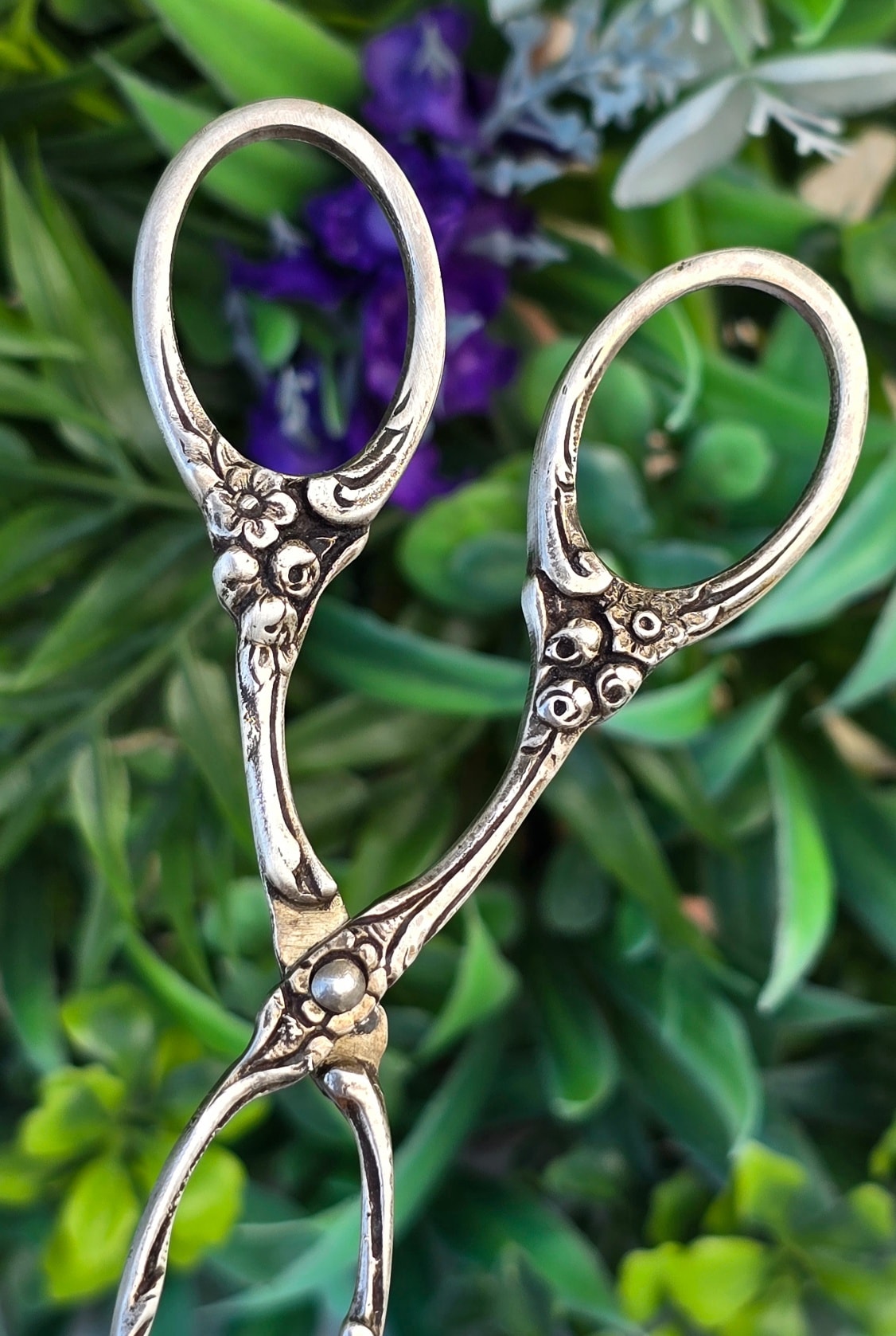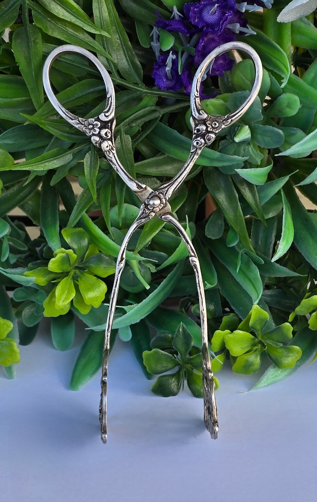 Clește vechi din argint, frumos lucrat manual în motiv floral, manufactură de meșter german (încep.sec.XX, Germania).