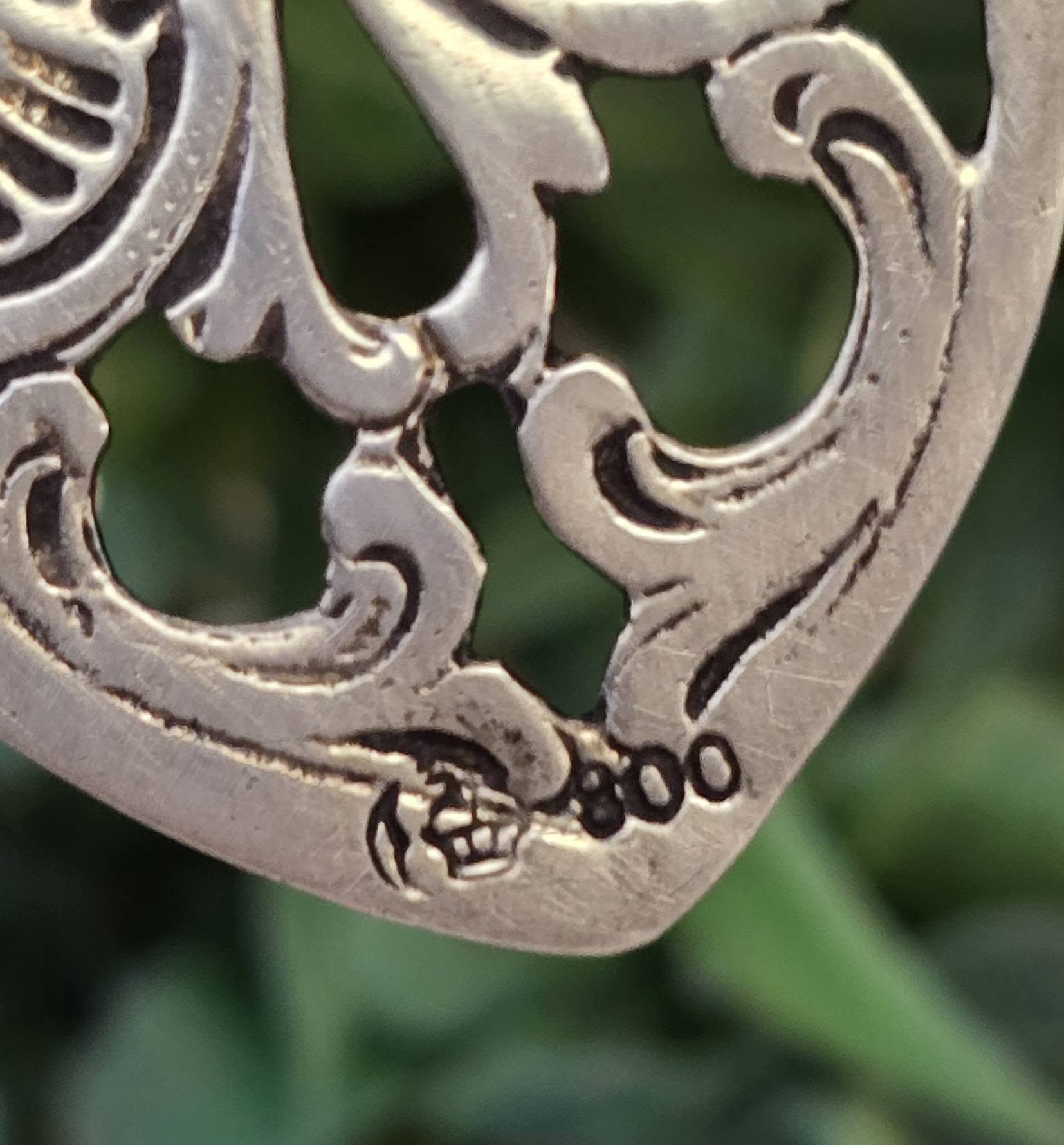 Prezintă marcaj de argint 800 și marcaj specific german de garanție ("semiluna și coroana").