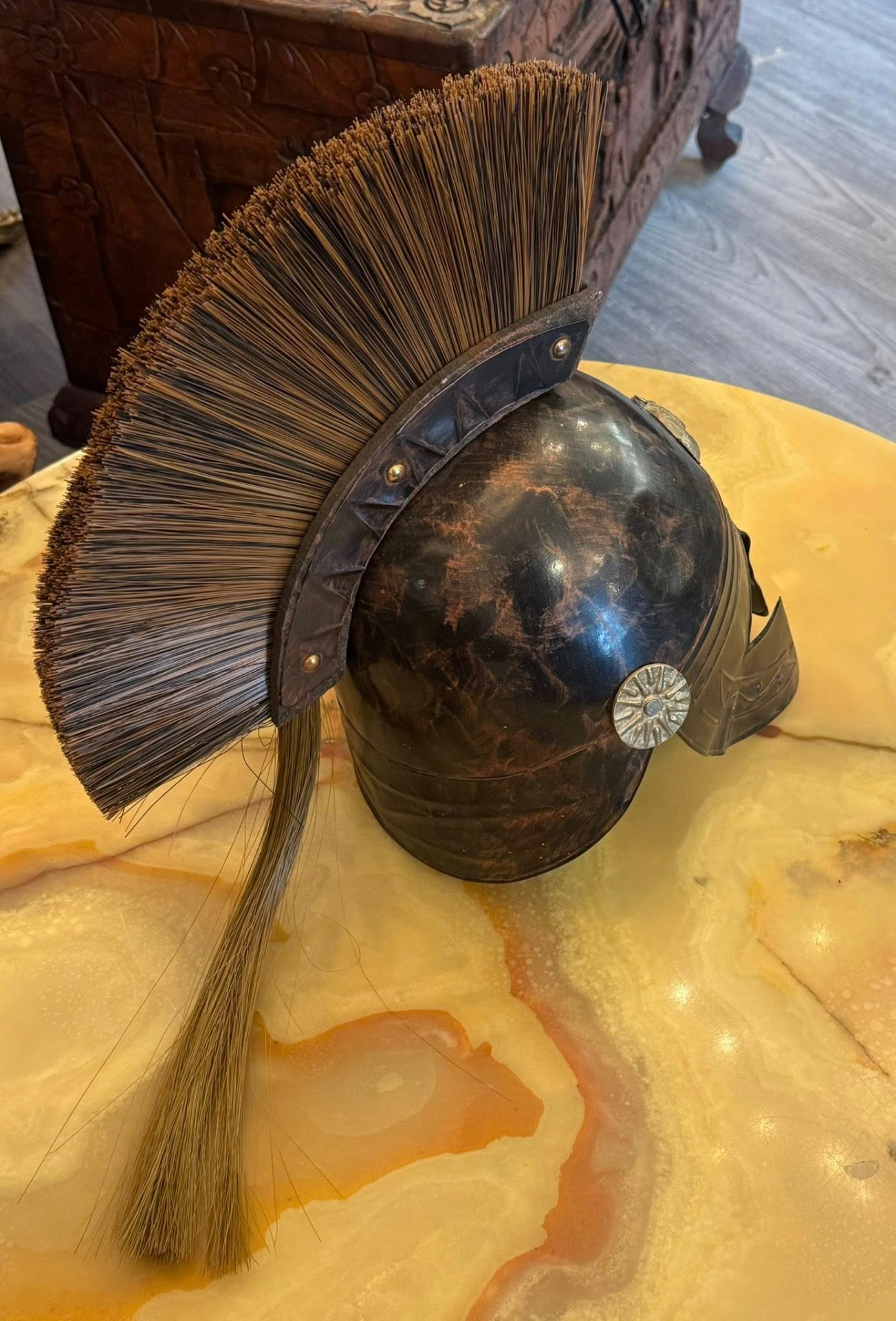 Coif de tip corintic decorativ, specific armatelor antice (precum cele ale grecilor sau romanilor)