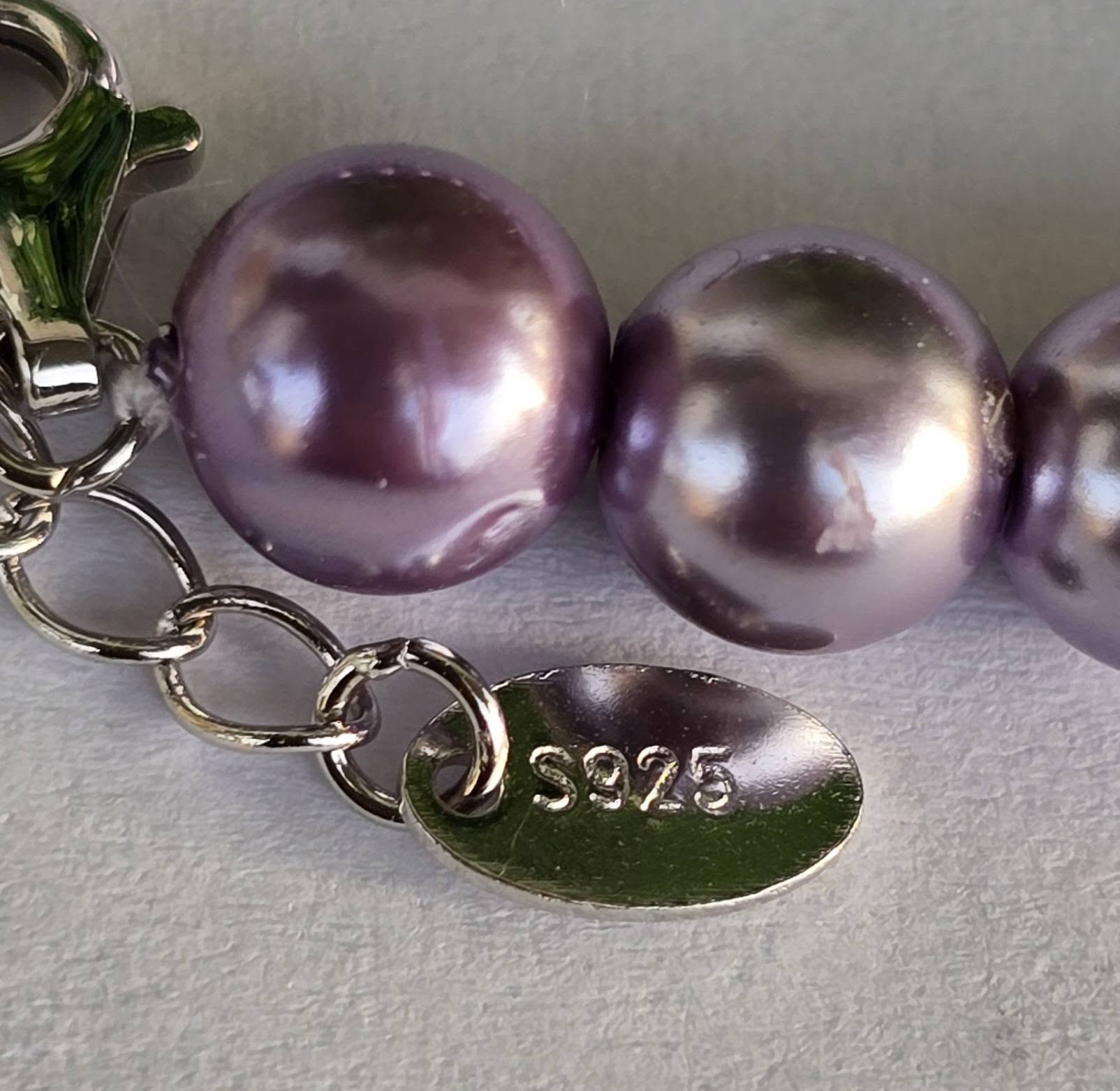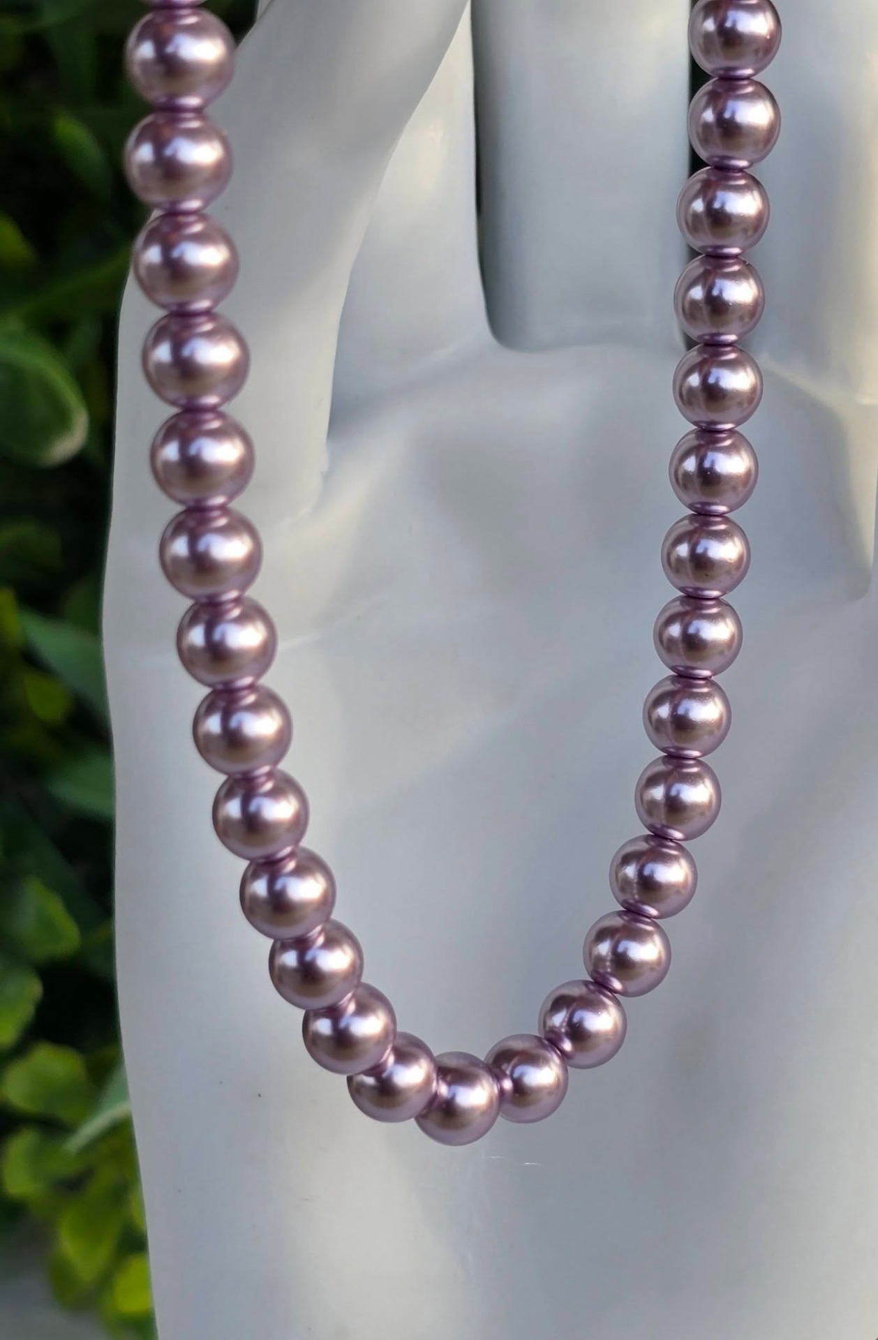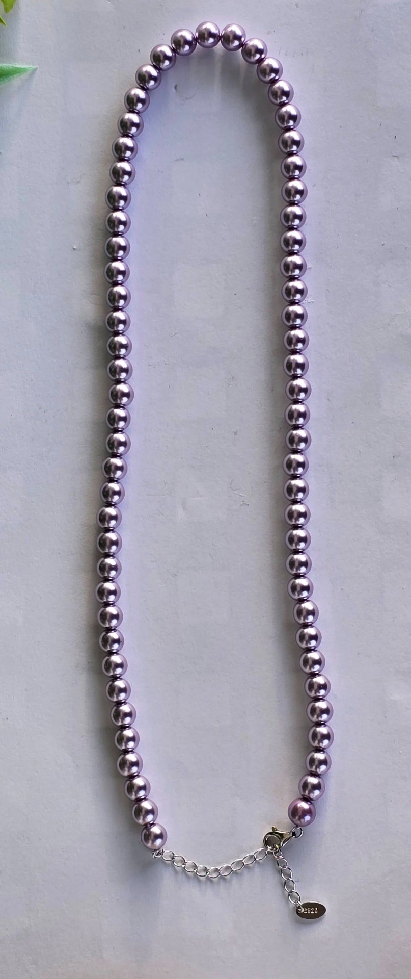 Colier contemporan din perle "faux" lavandă, cu închizătoare din argint.