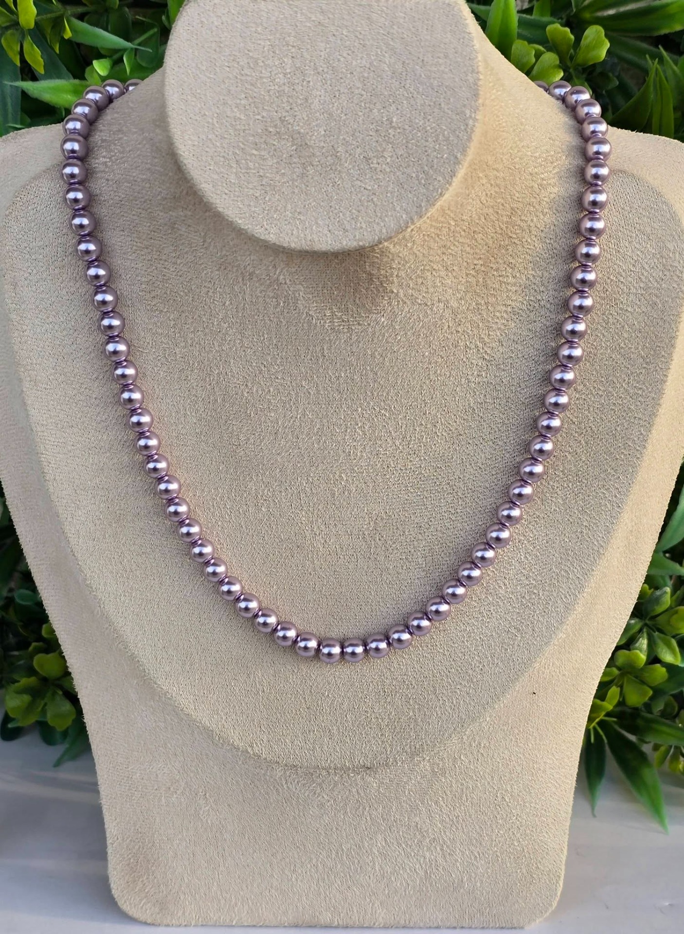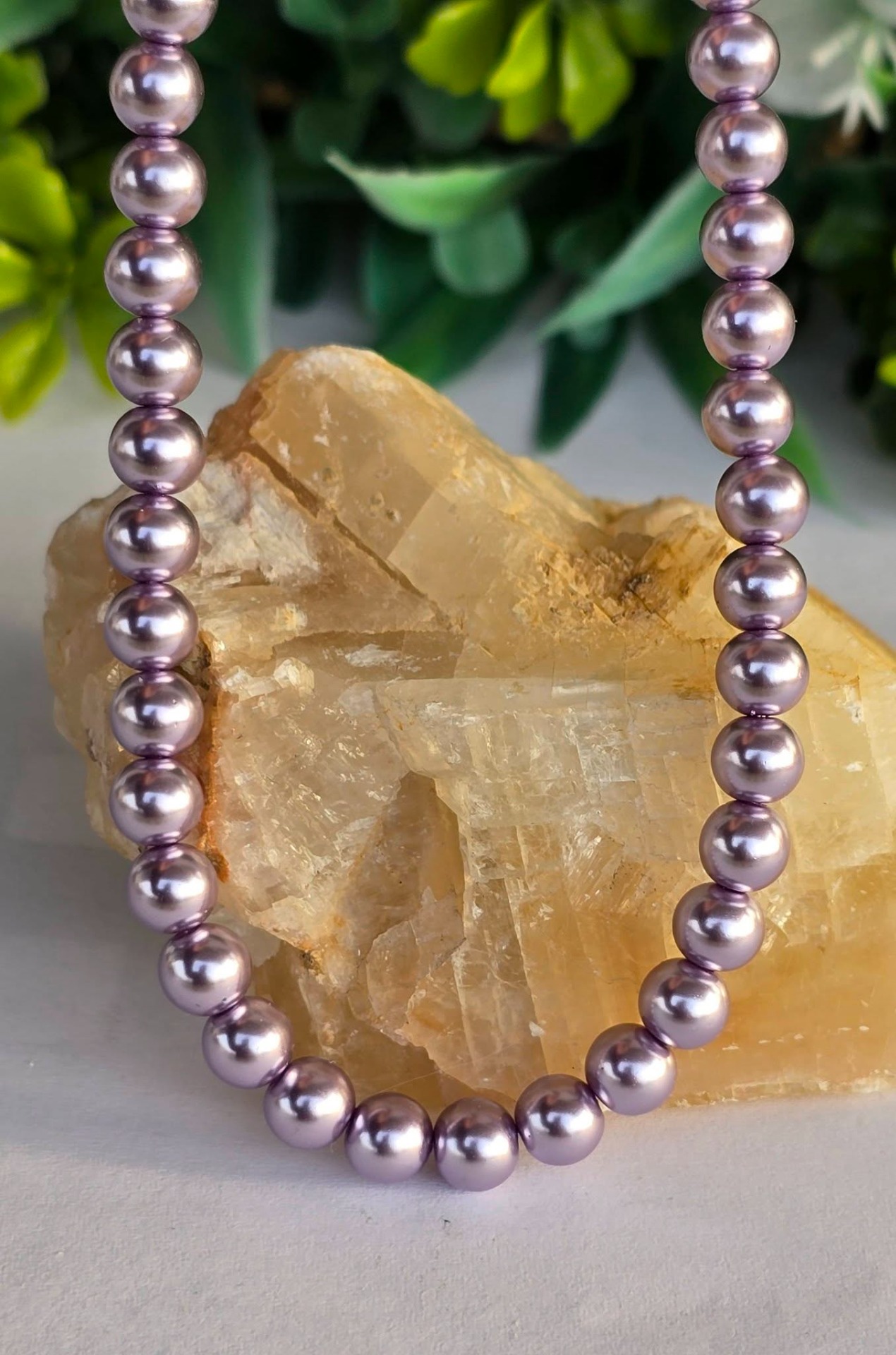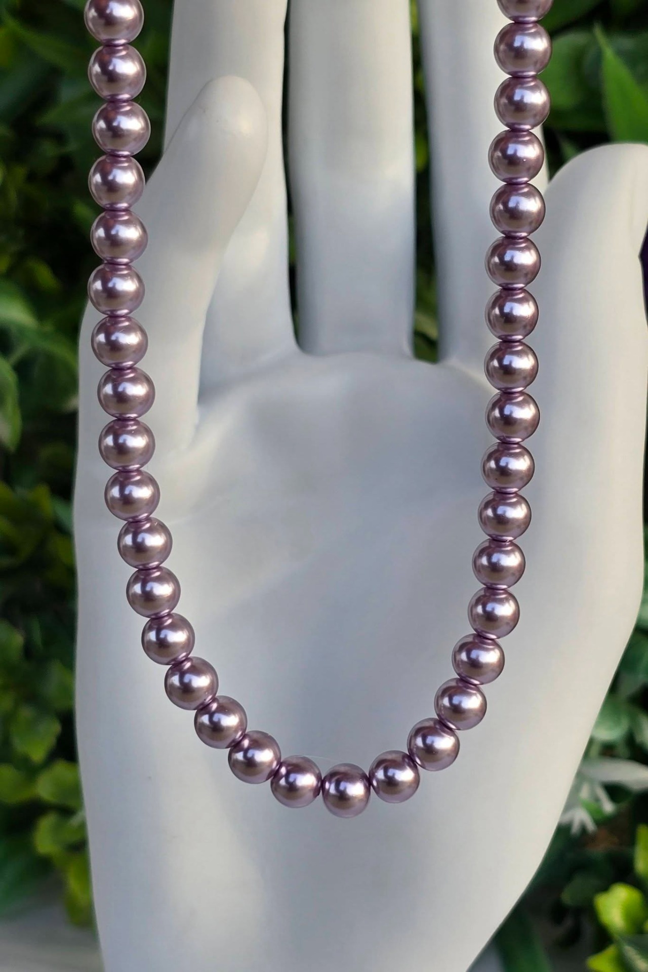 Colier contemporan din perle "faux" lavandă, cu închizătoare din argint.