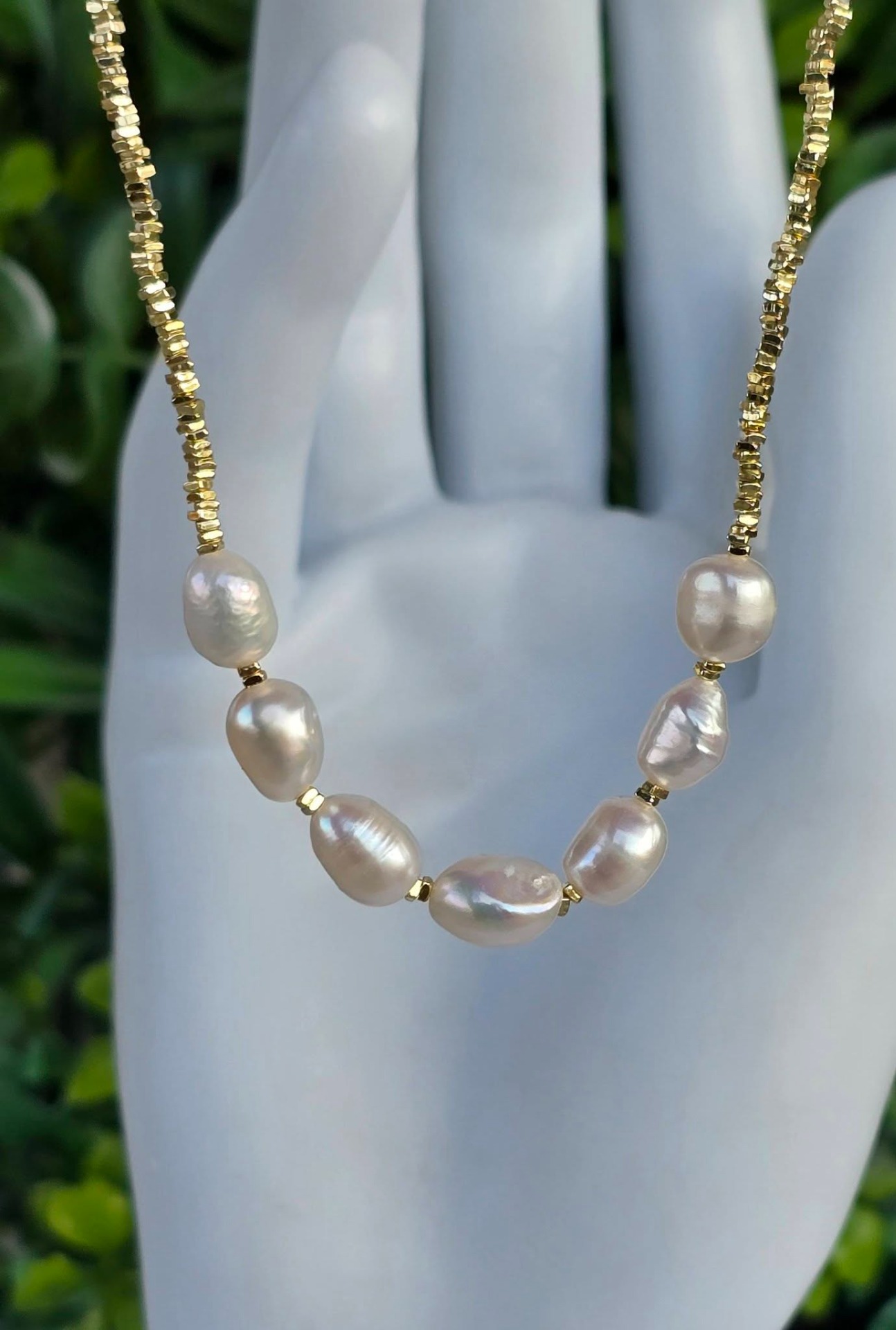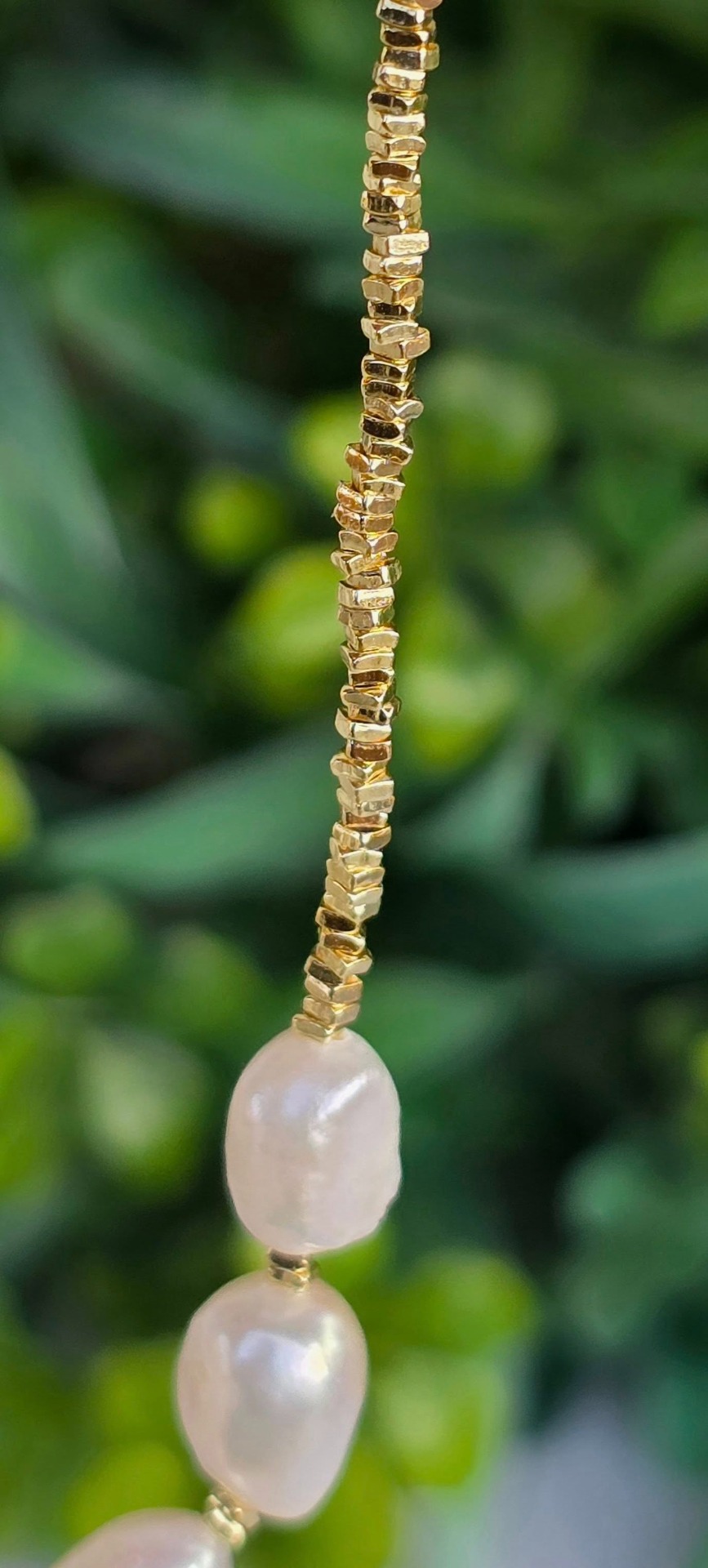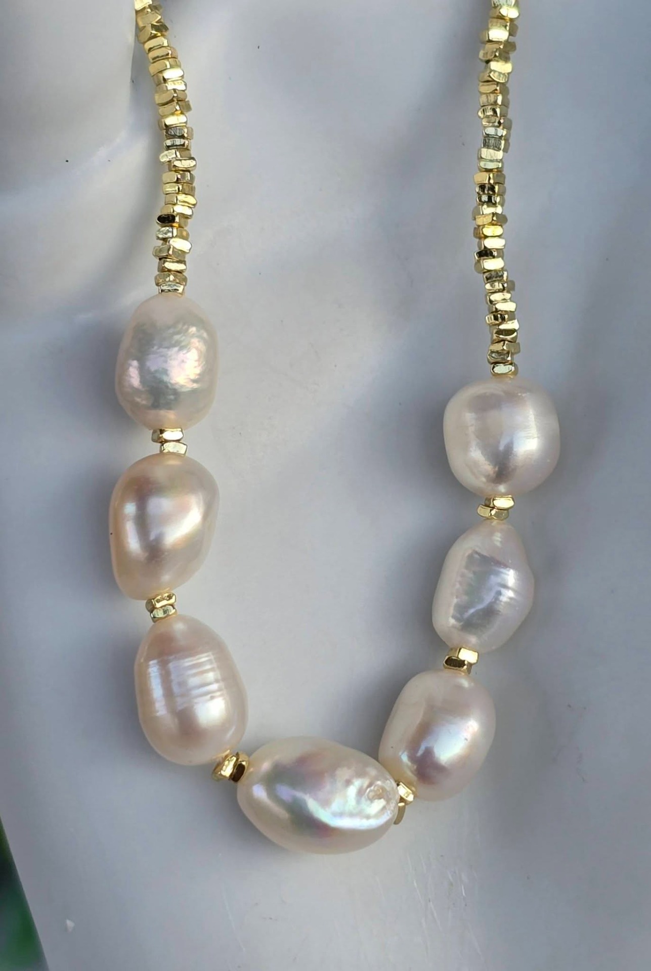 Colier contemporan superb, din argint aurit, cu perle naturale de cultură și lanț spectaculos din pepite.