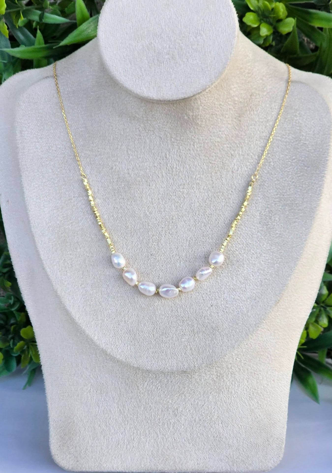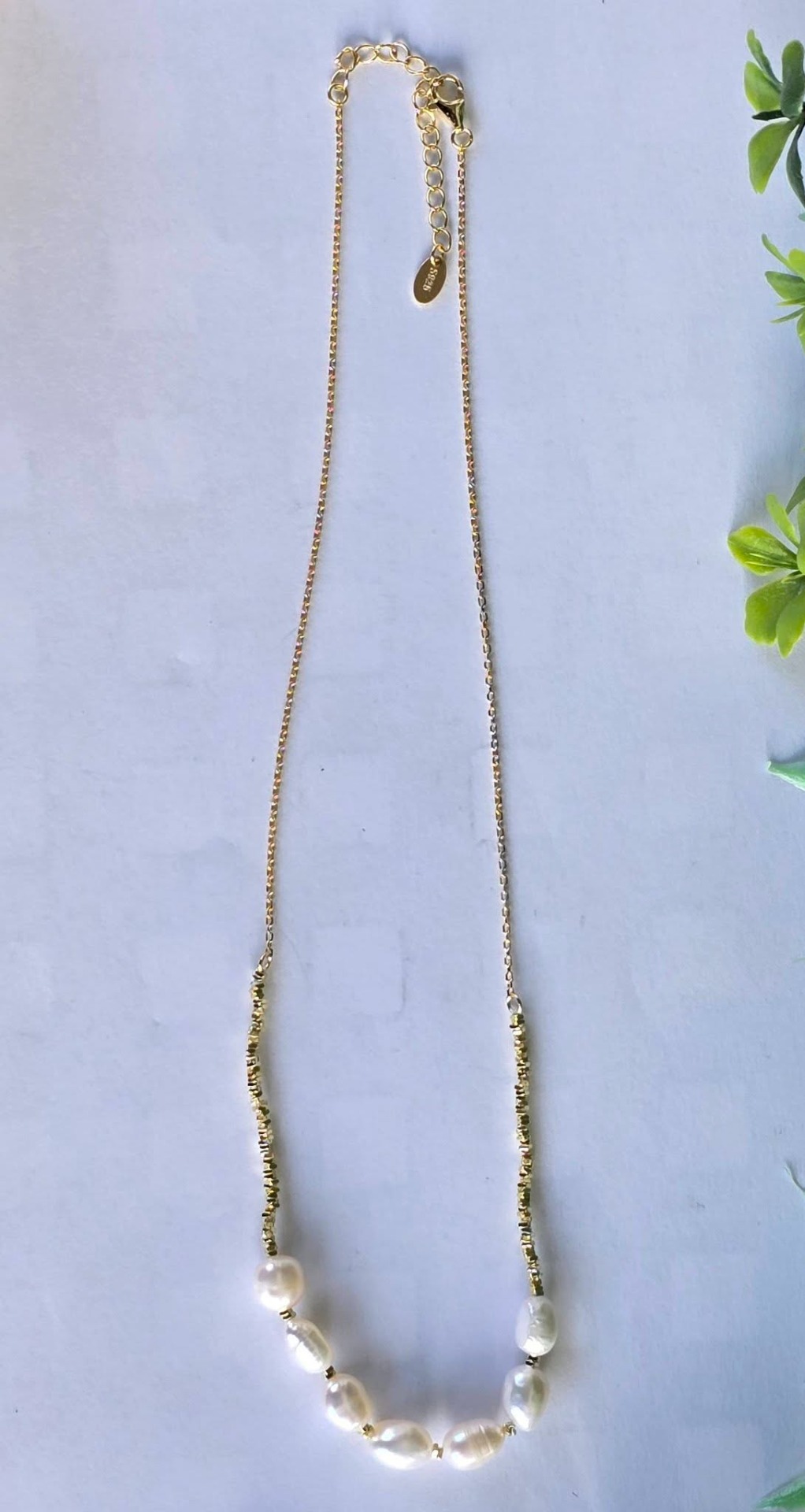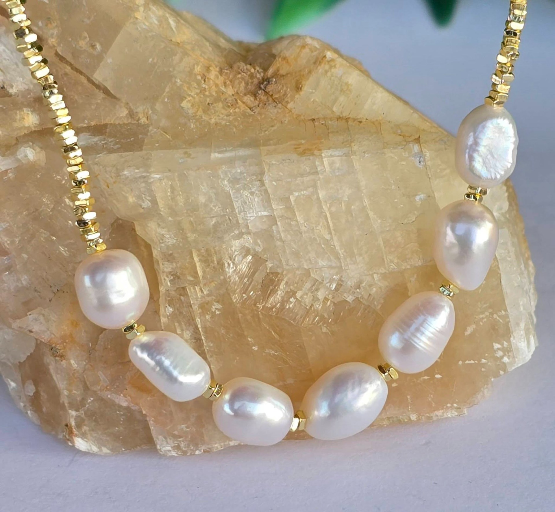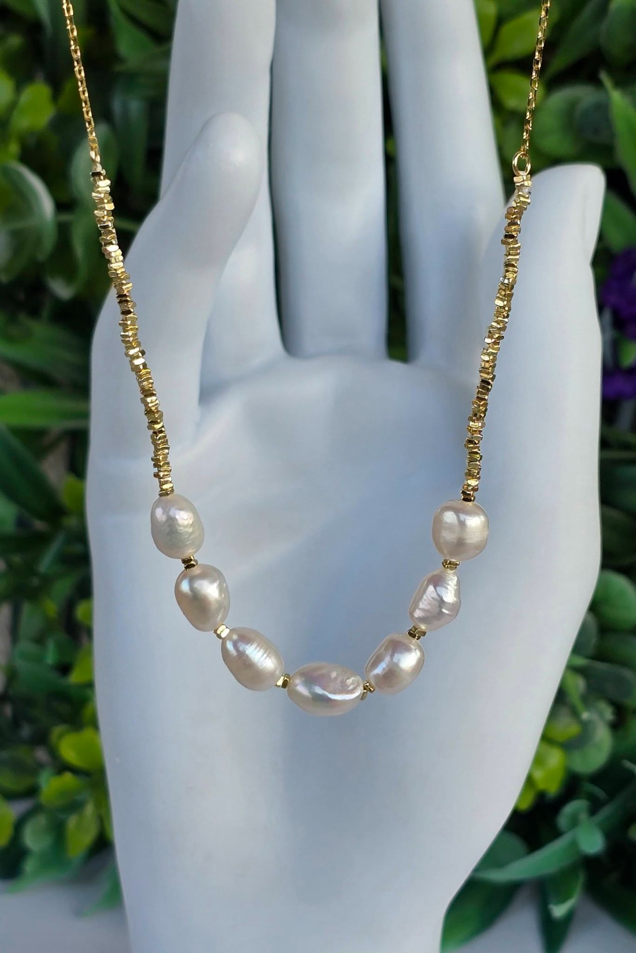 Colier contemporan superb, din argint aurit, cu perle naturale de cultură și lanț spectaculos din pepite.