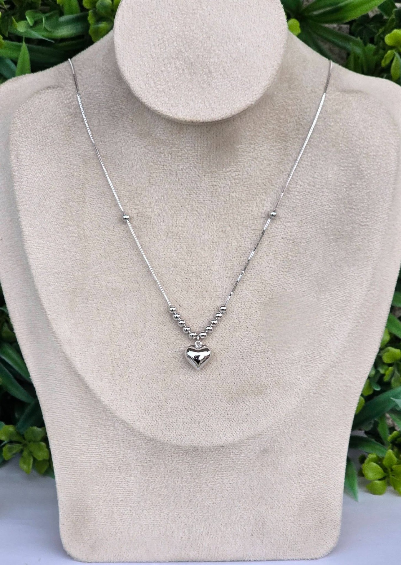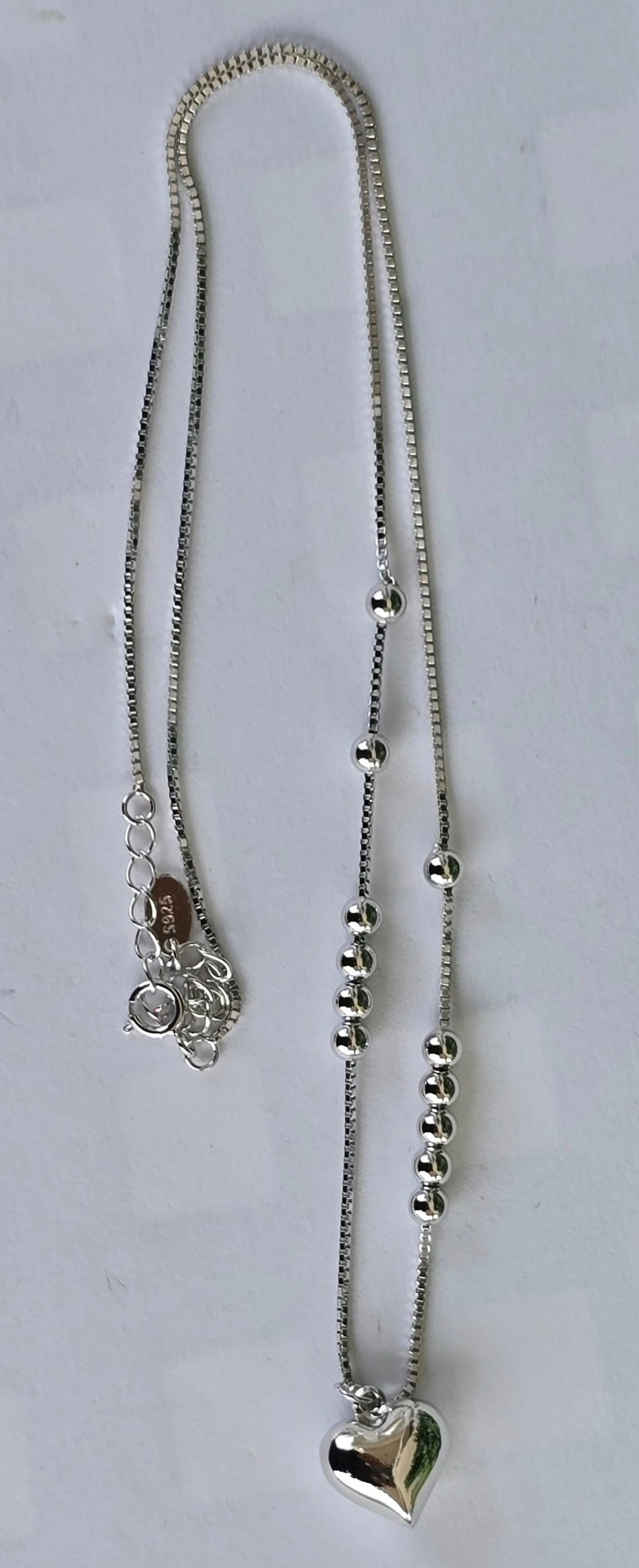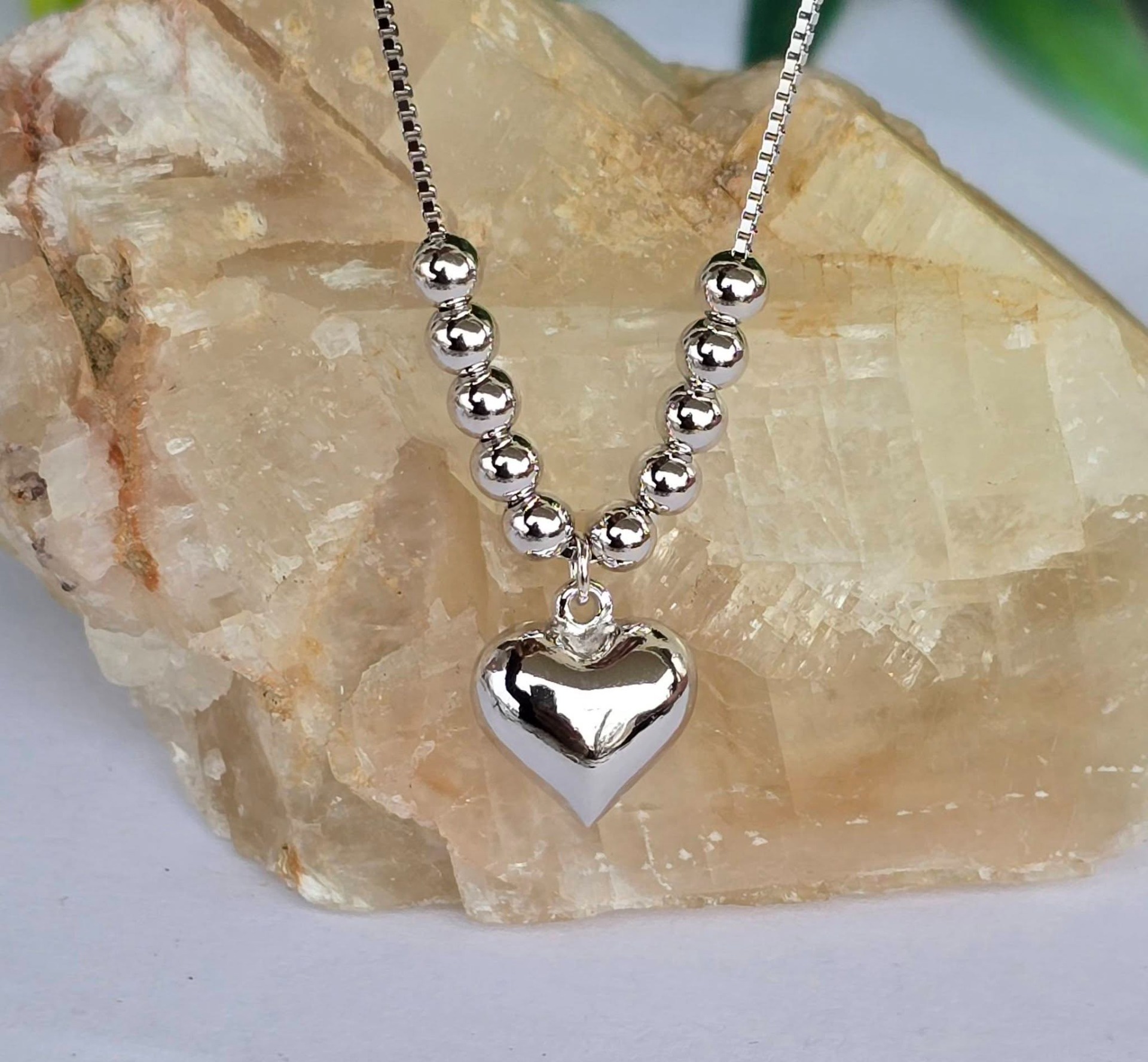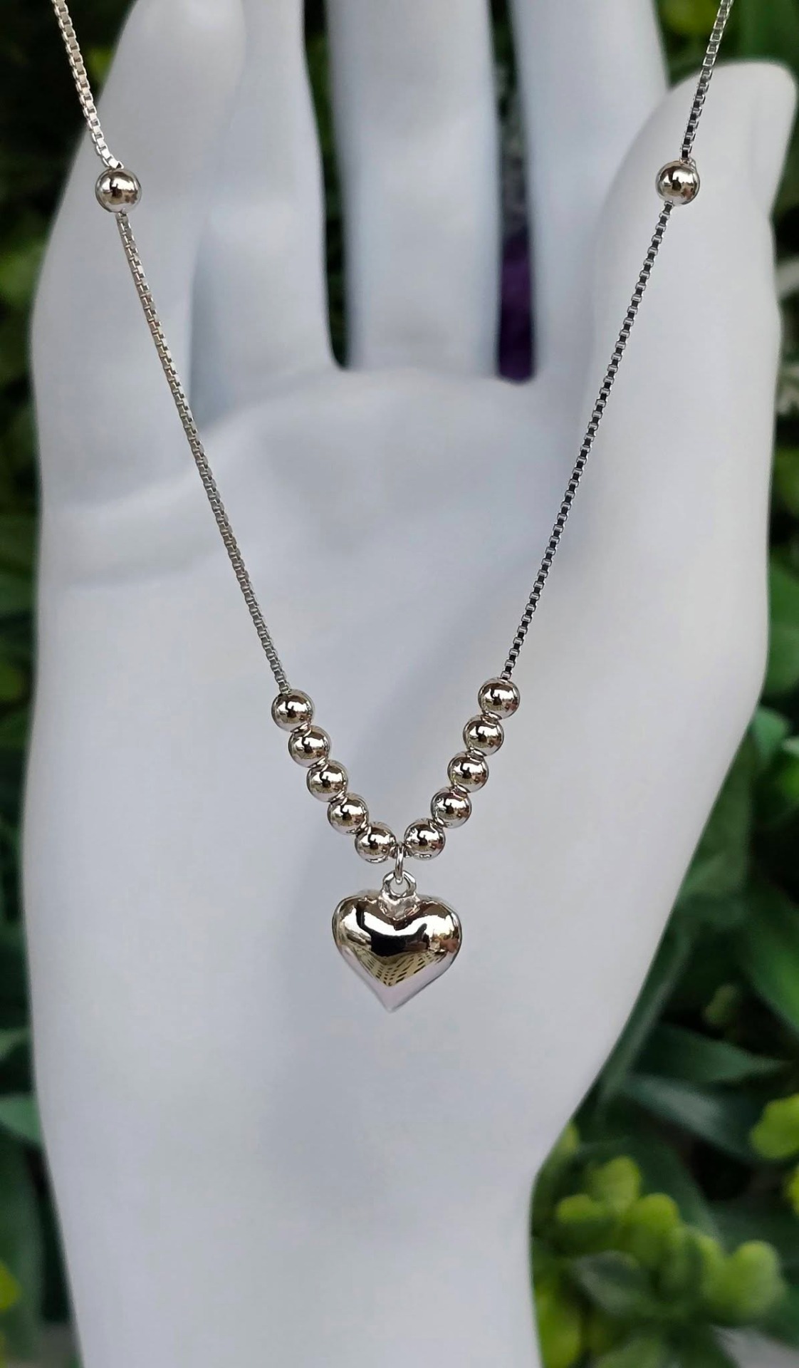 Colier contemporan superb, din argint, stilizat cu inimioară și mărgeluțe mobile din argint.