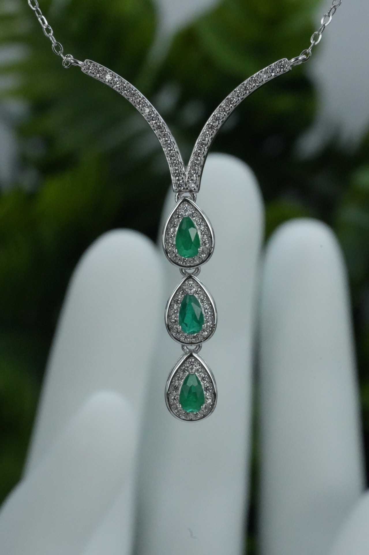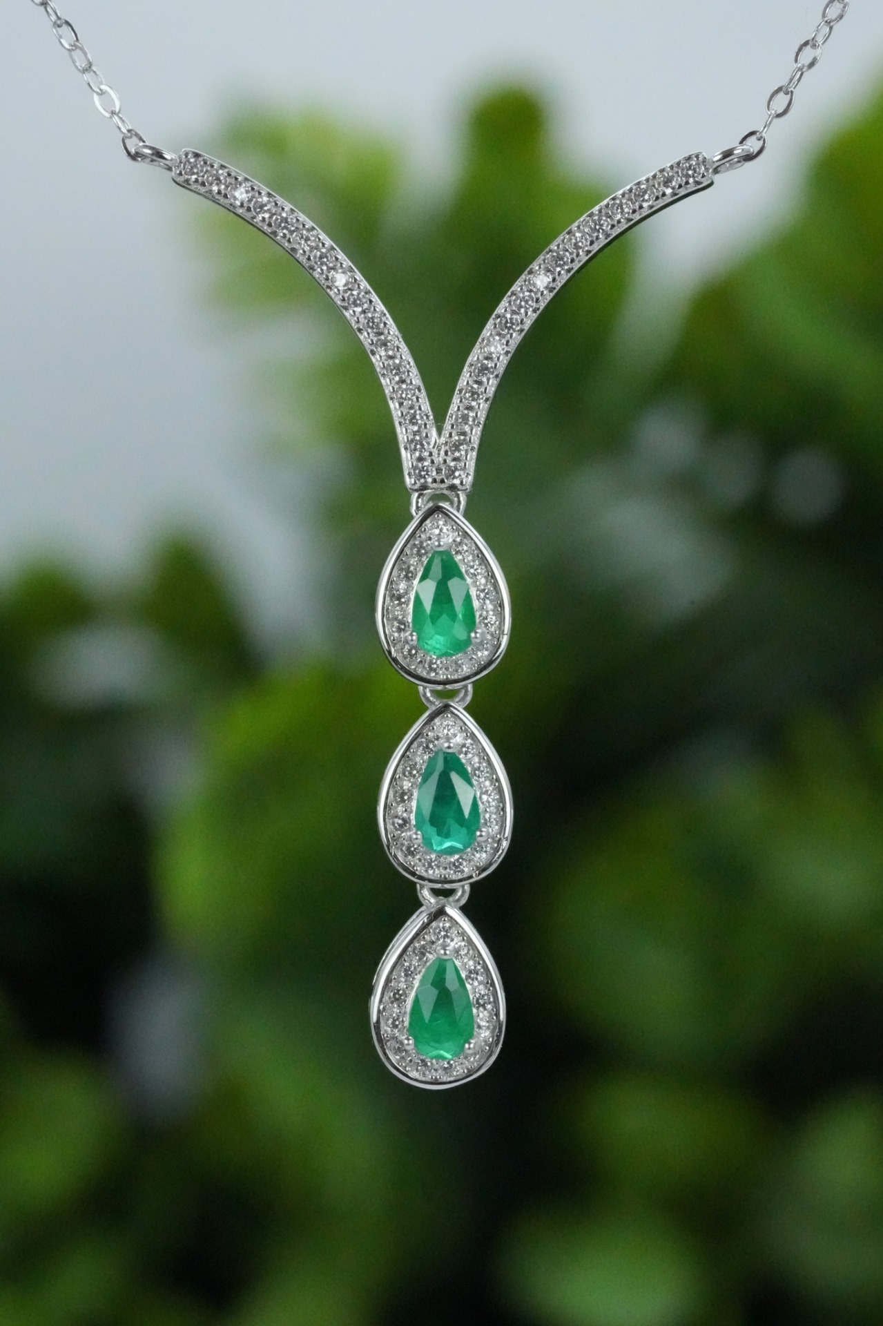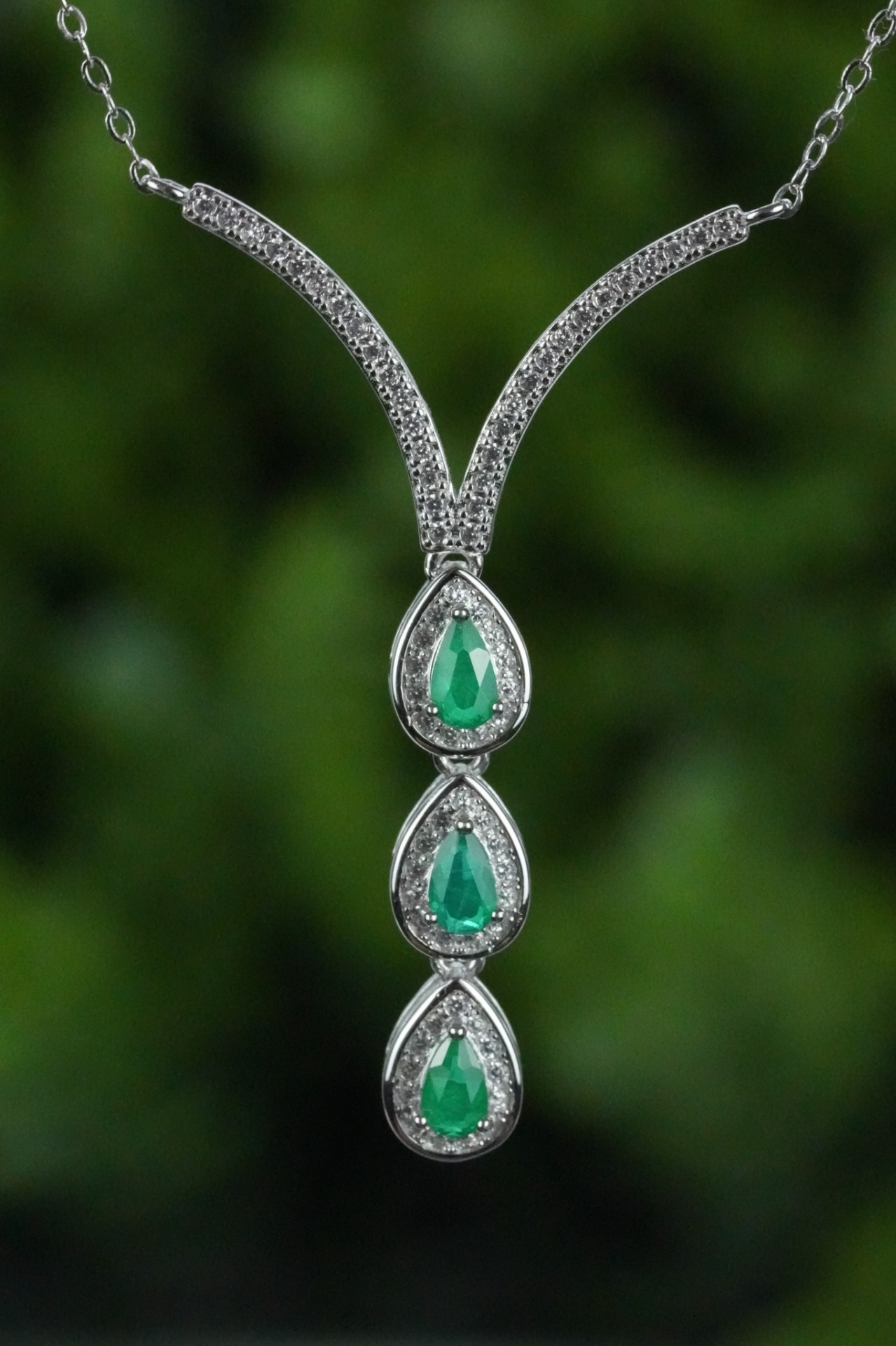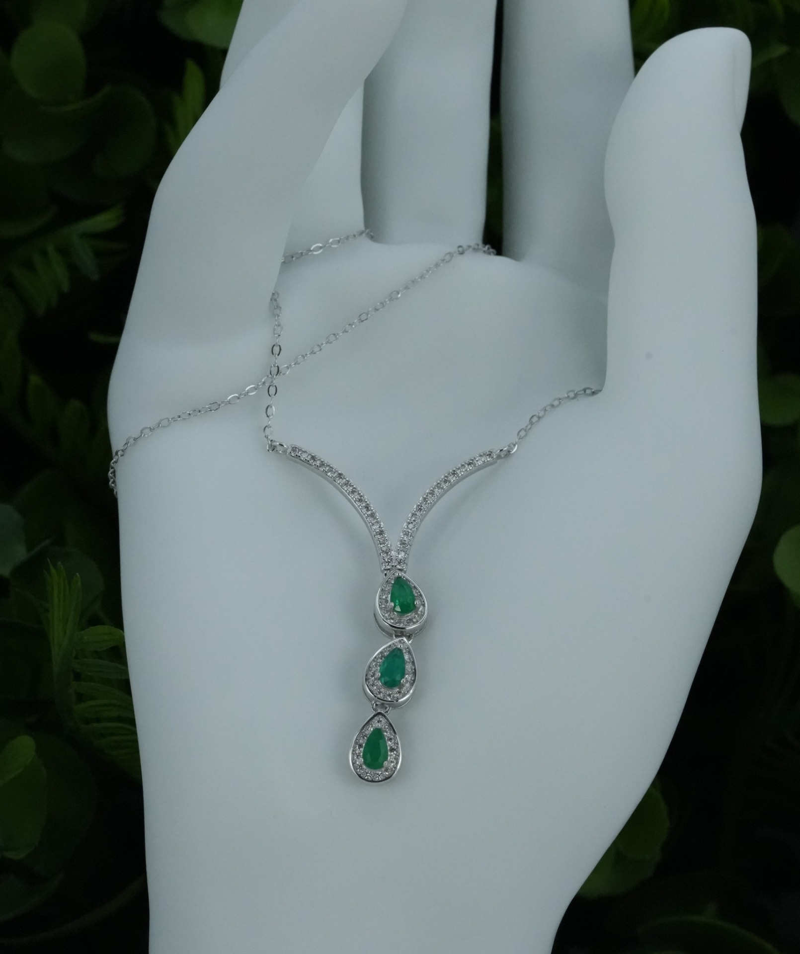 Colier superb din argint, cu smaralde "doublet" naturale și pietre cubic zirconia.