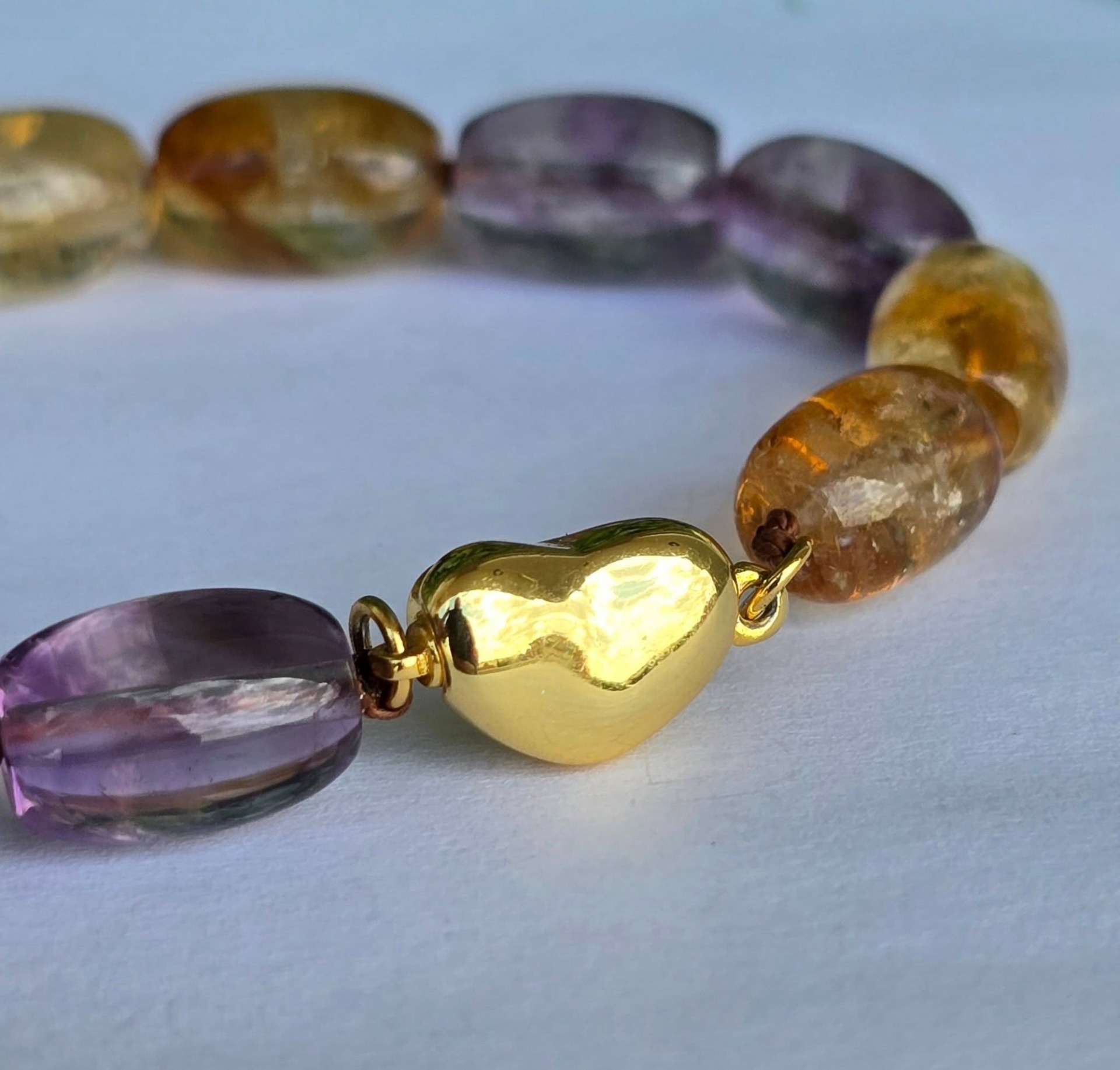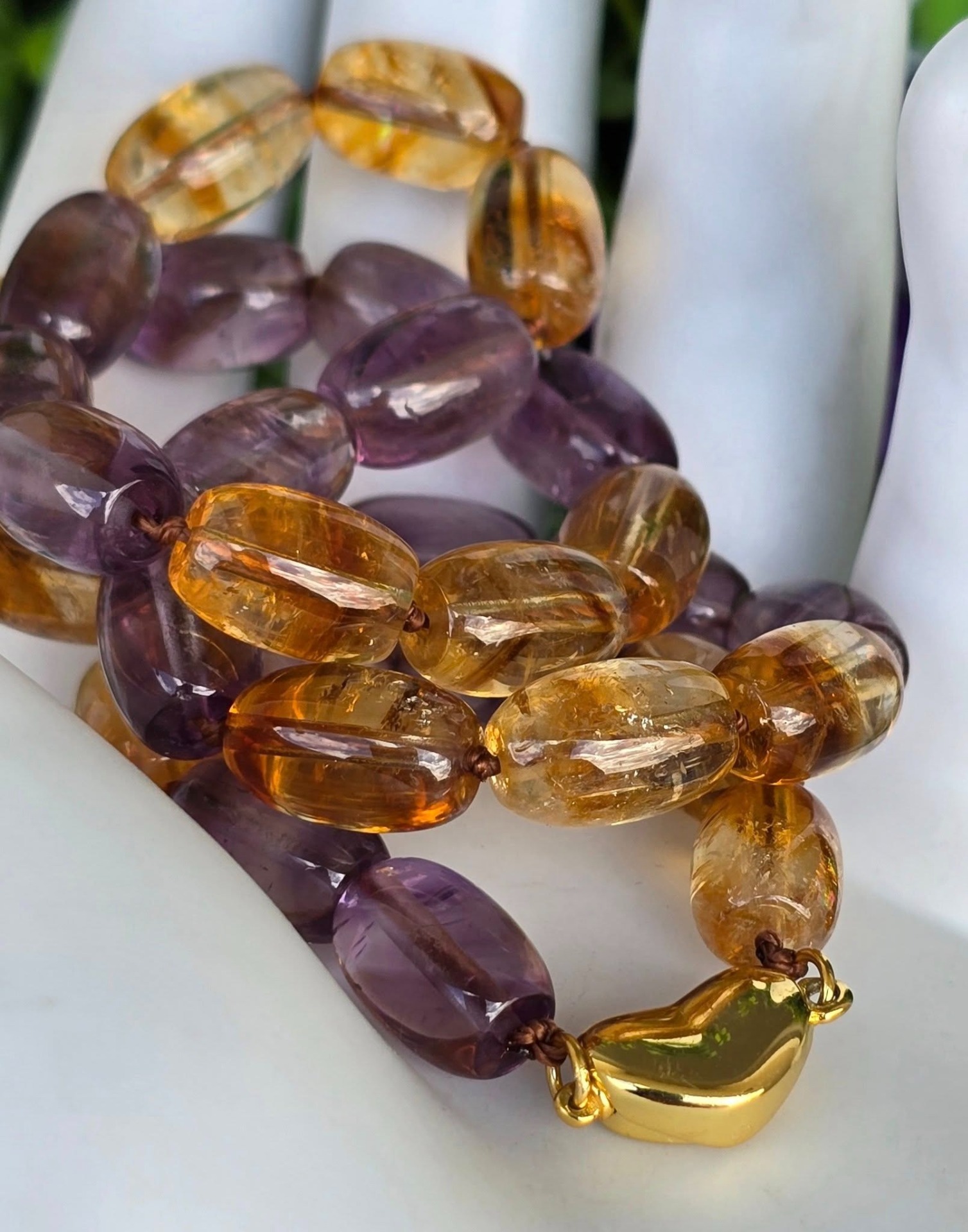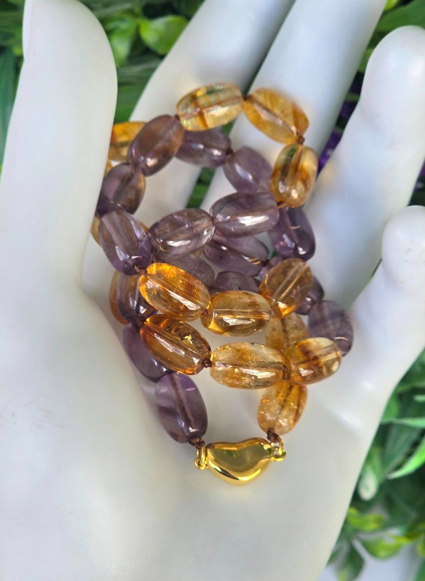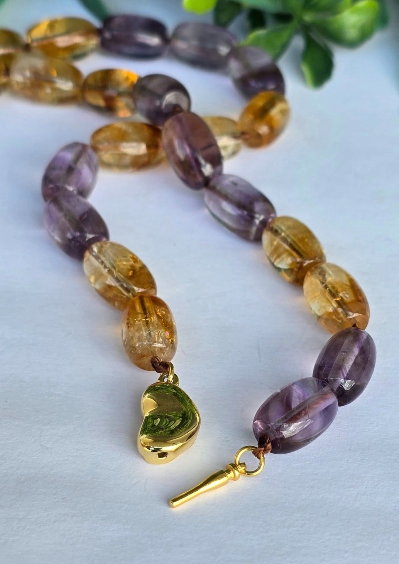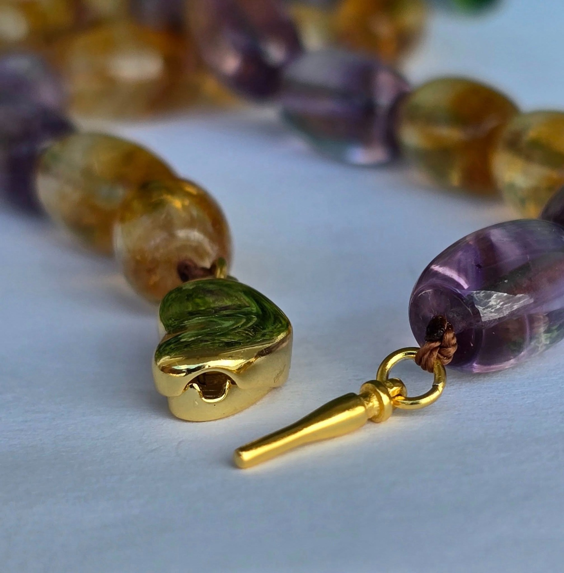 Colier vechi cu ametiste și citrine naturale și închizătoare din argint aurit.