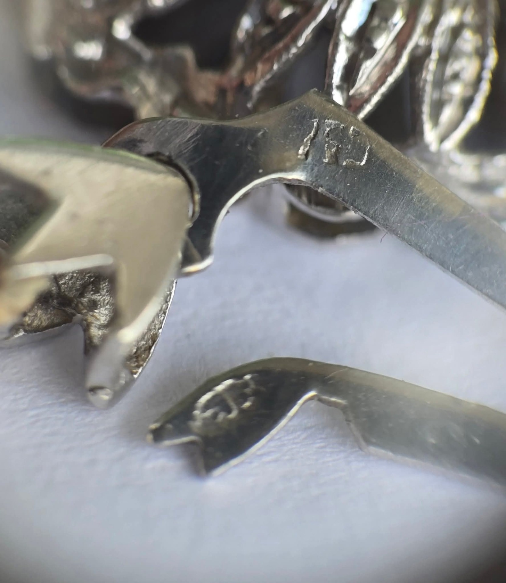 Prezintă marcaj 750 pentru puritate aur de 18K și marcaj de meșter.