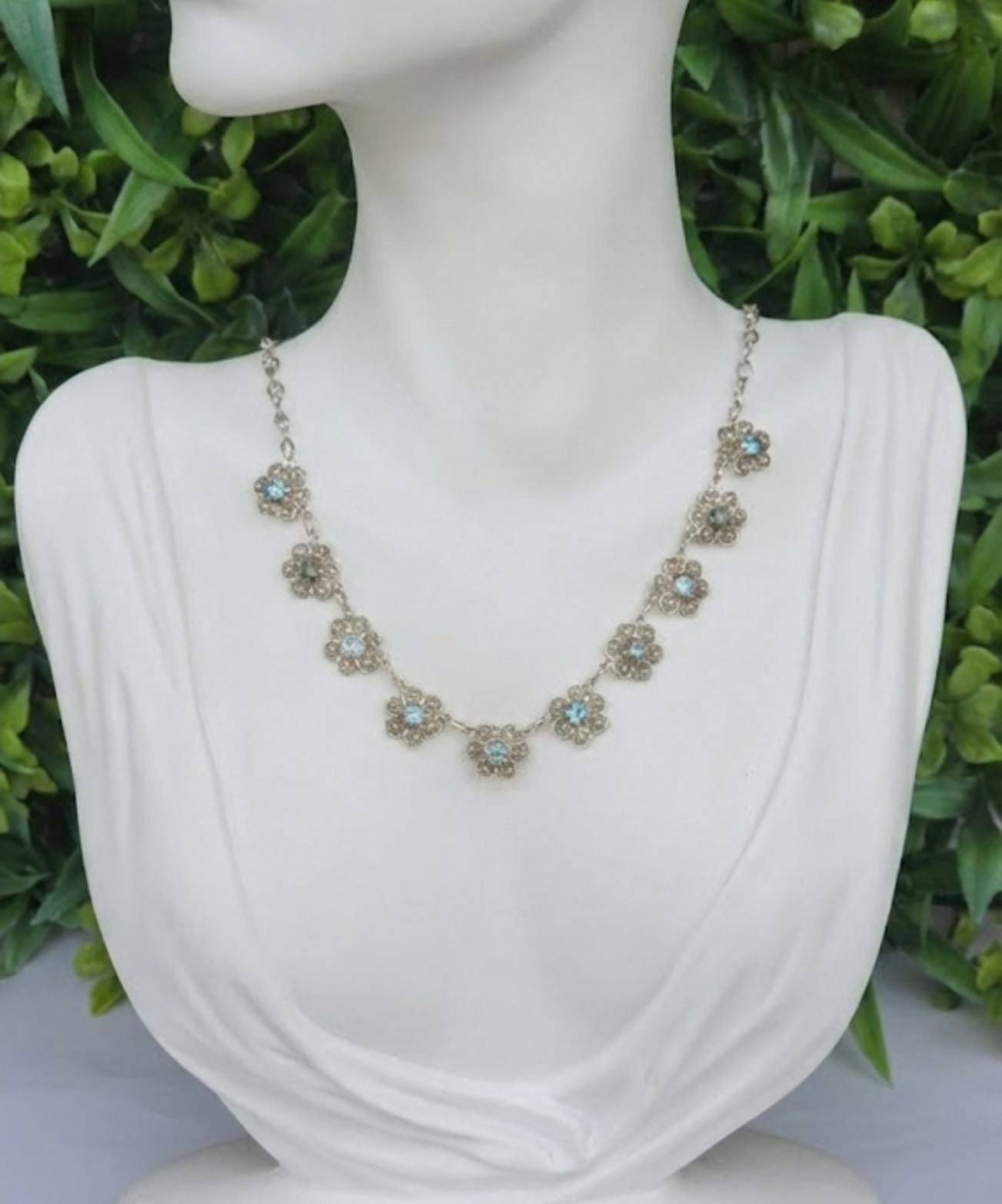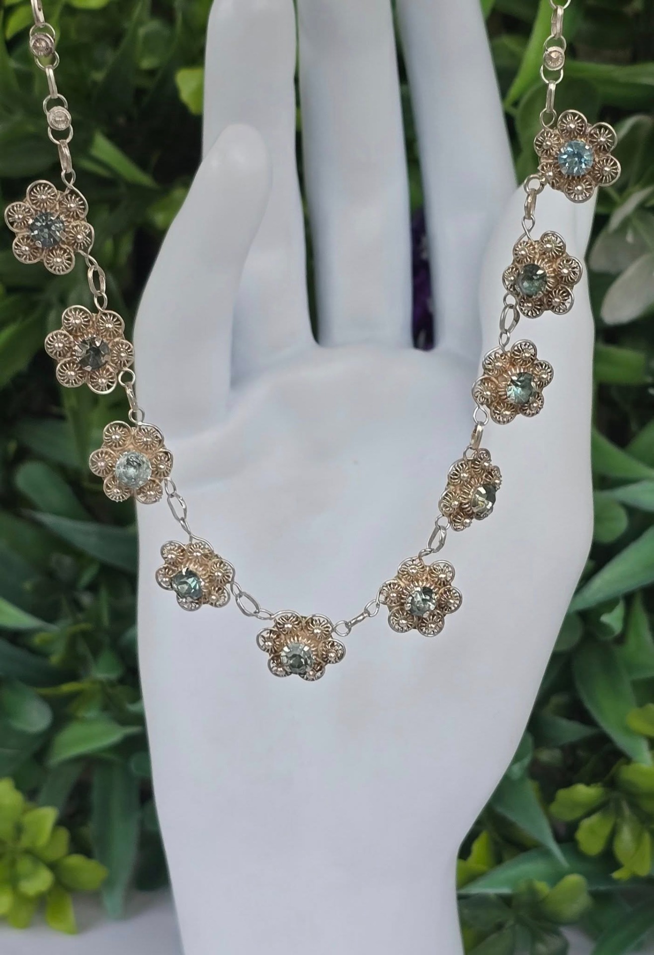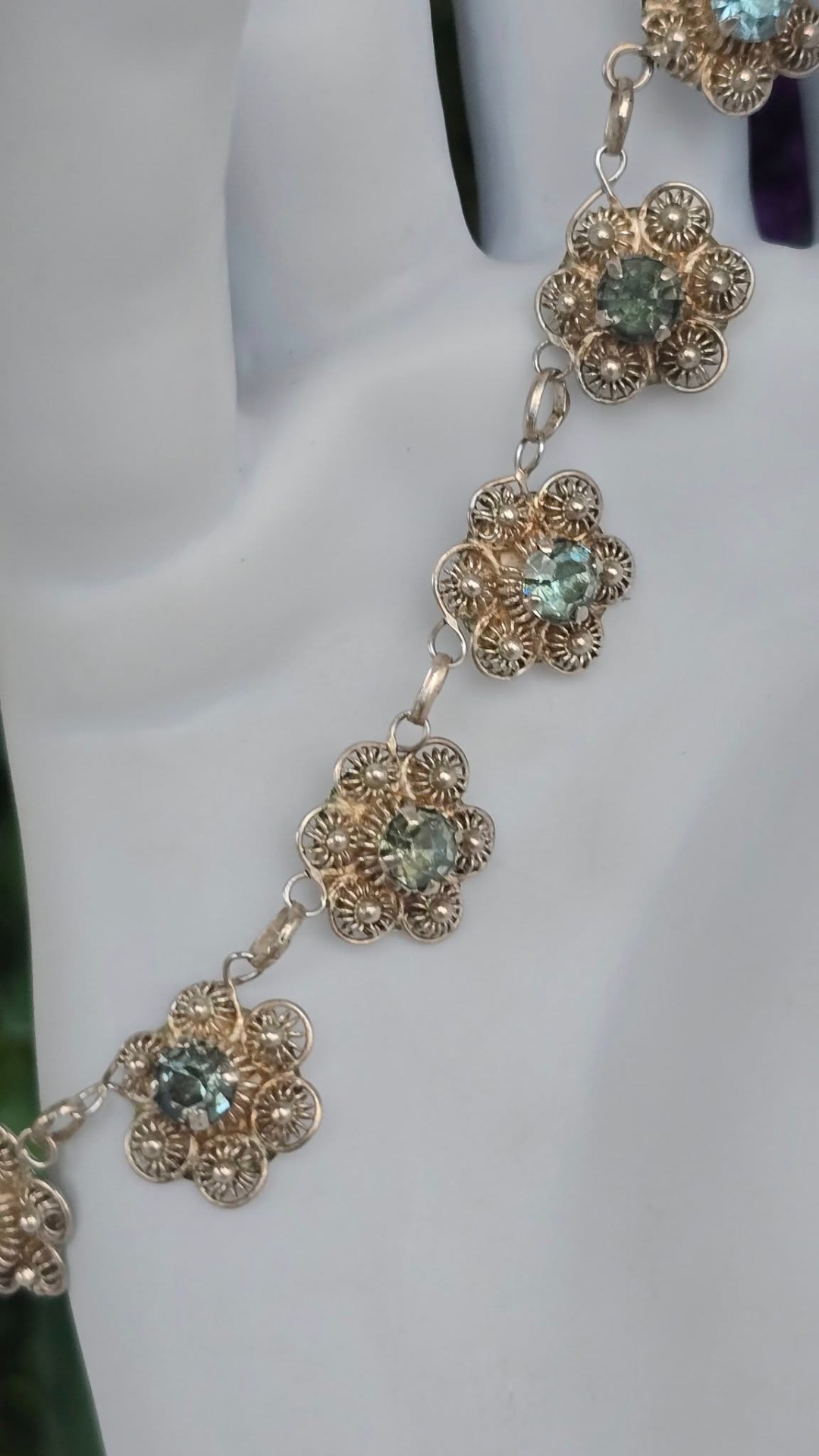 Colier vechi din argint, cu "glass paste" albastre, manufactură excepțională în filigran.