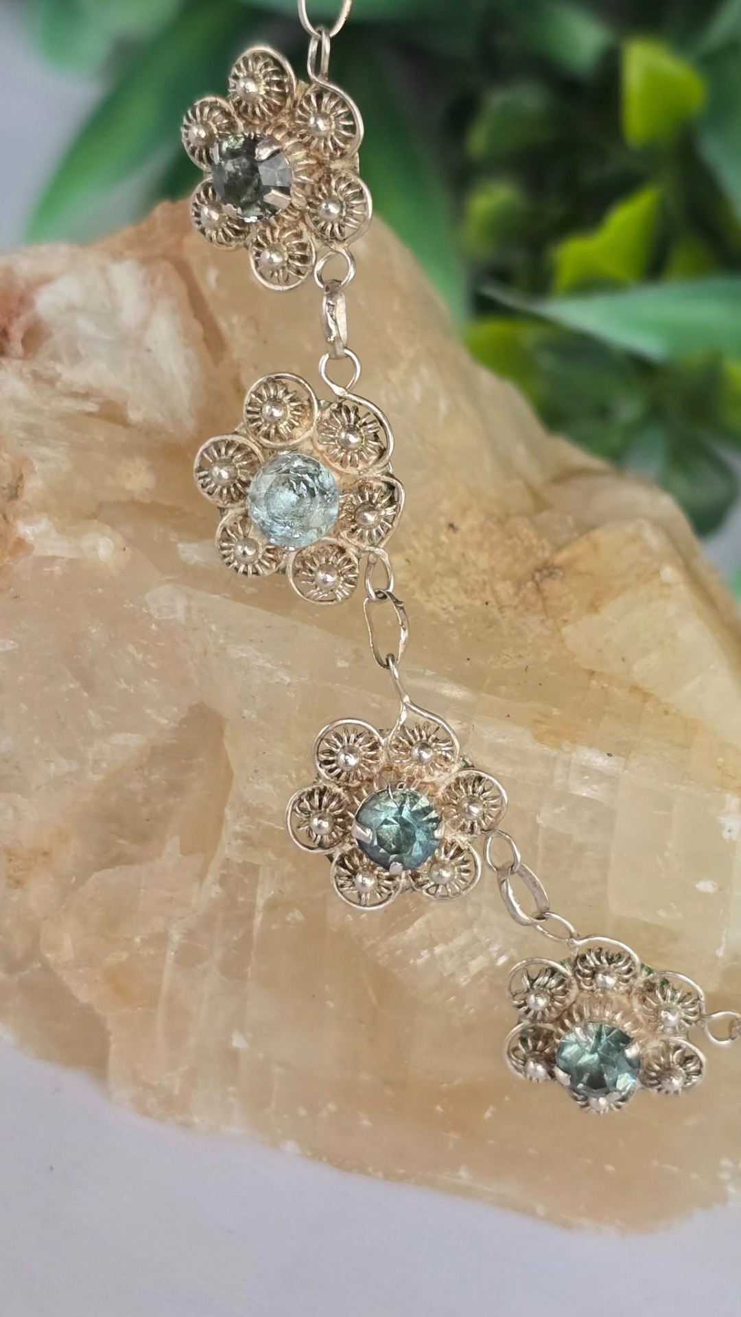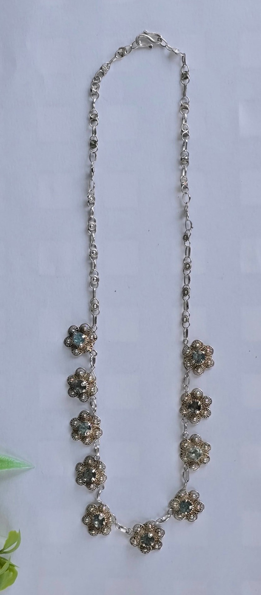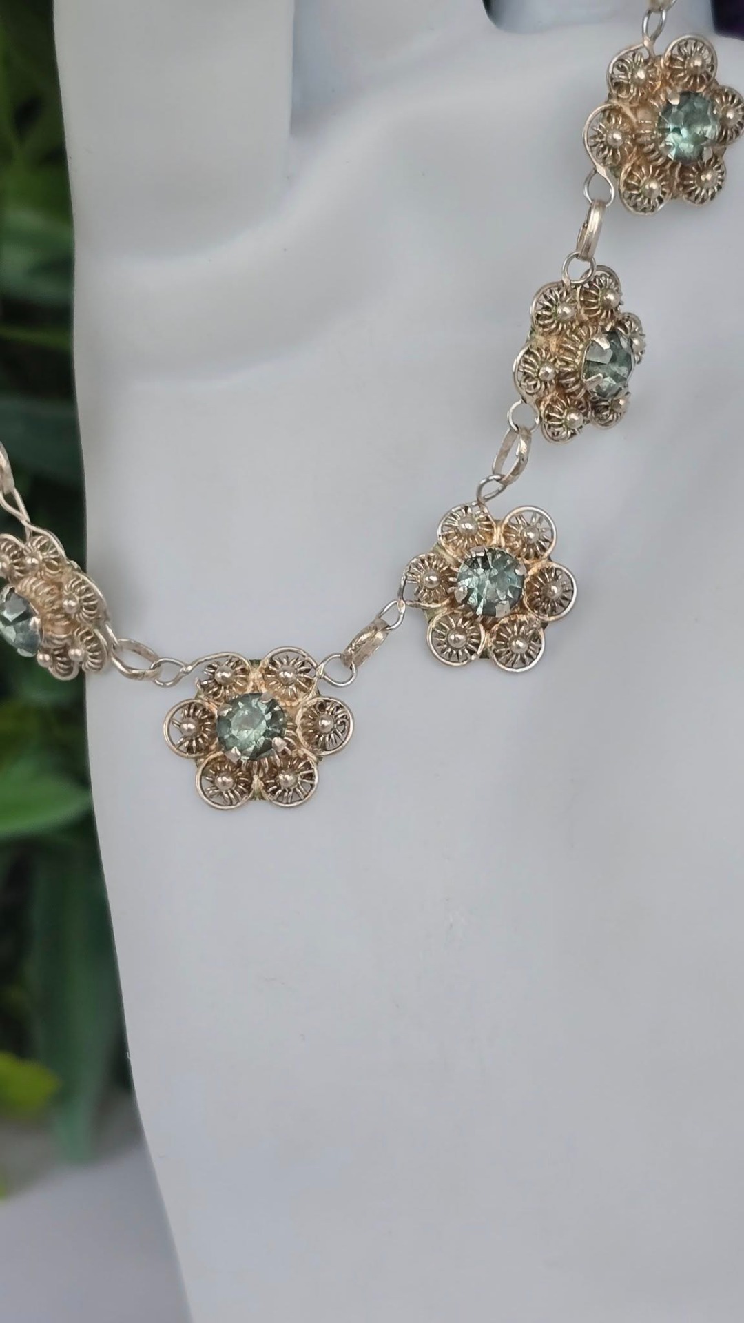 Colier vechi din argint, cu "glass paste" albastre, manufactură excepțională în filigran.