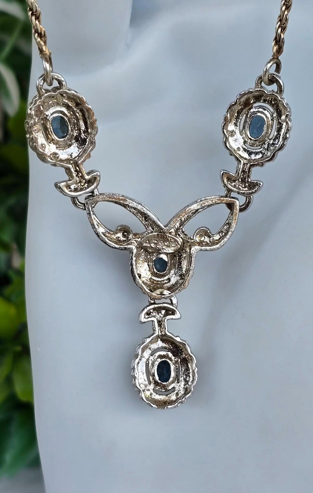 Colier vechi din argint, cu pietre cubic zirconia.
