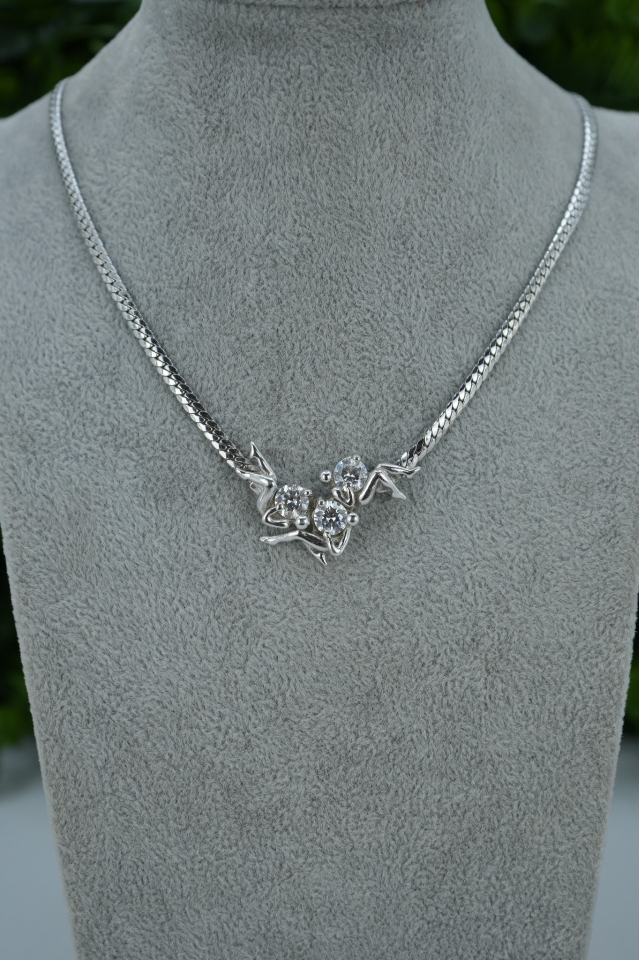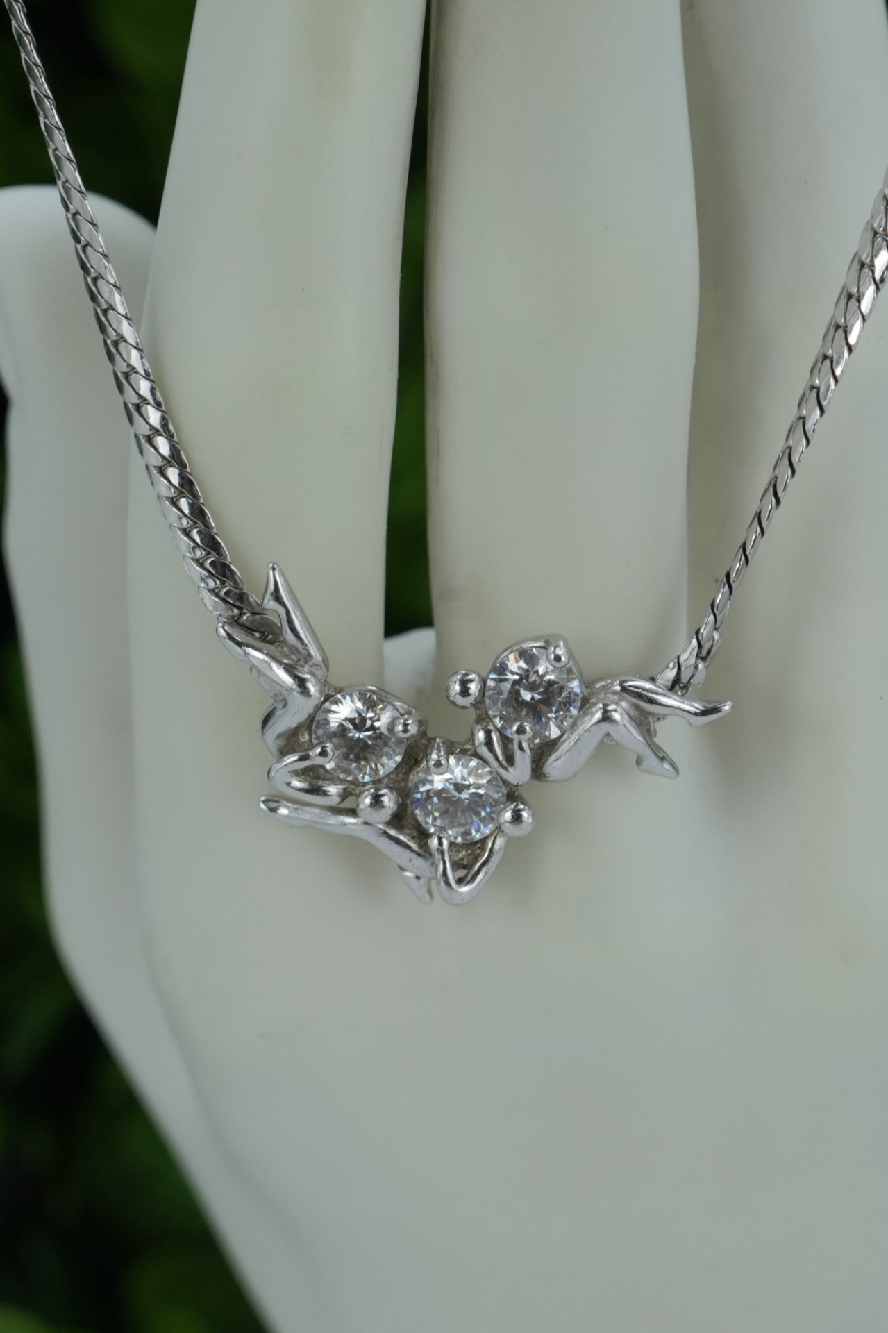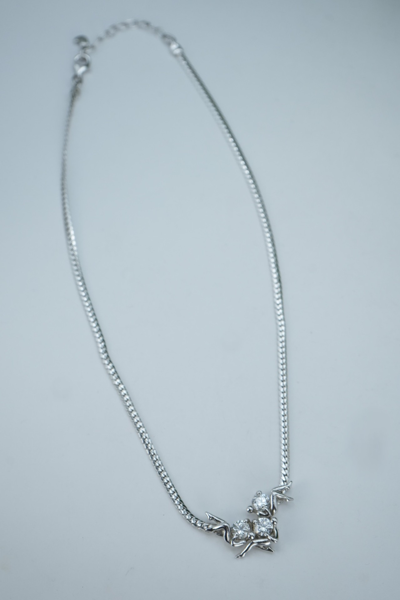 Colier vechi din argint, cu pietre cubic zirconia.