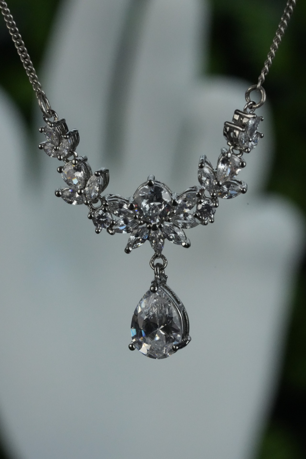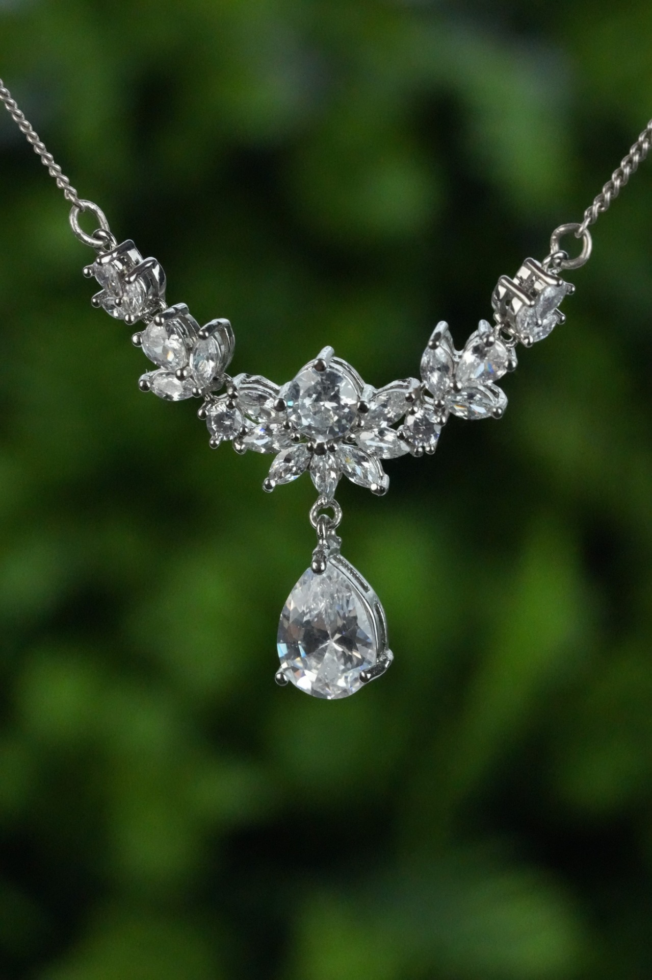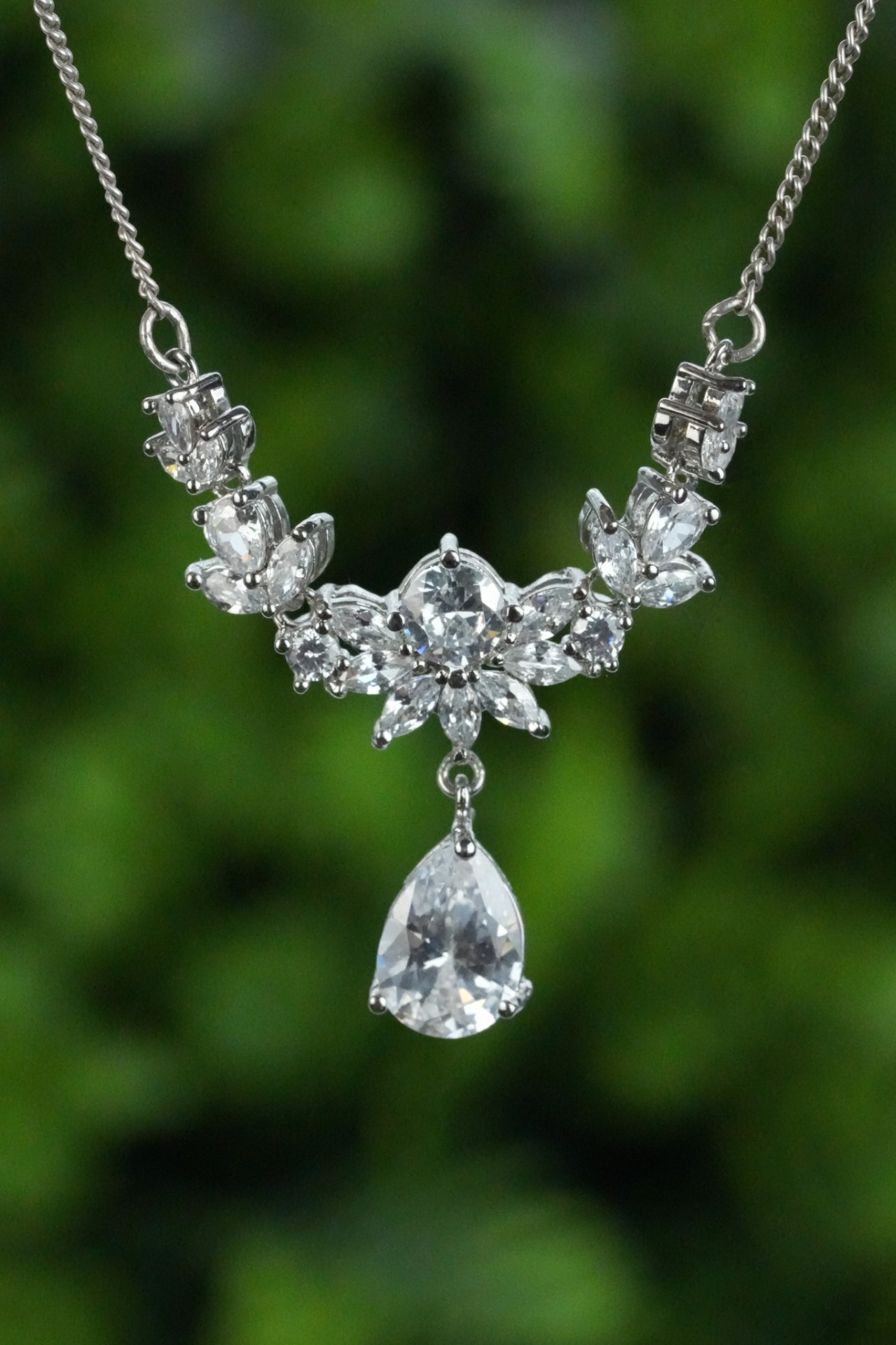 Colier vechi din argint, cu pietre cubic zirconia.