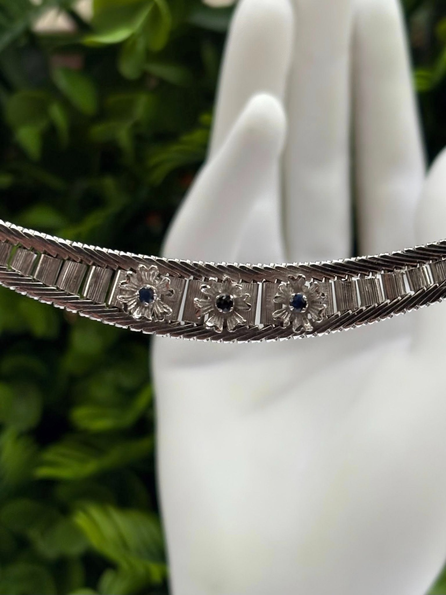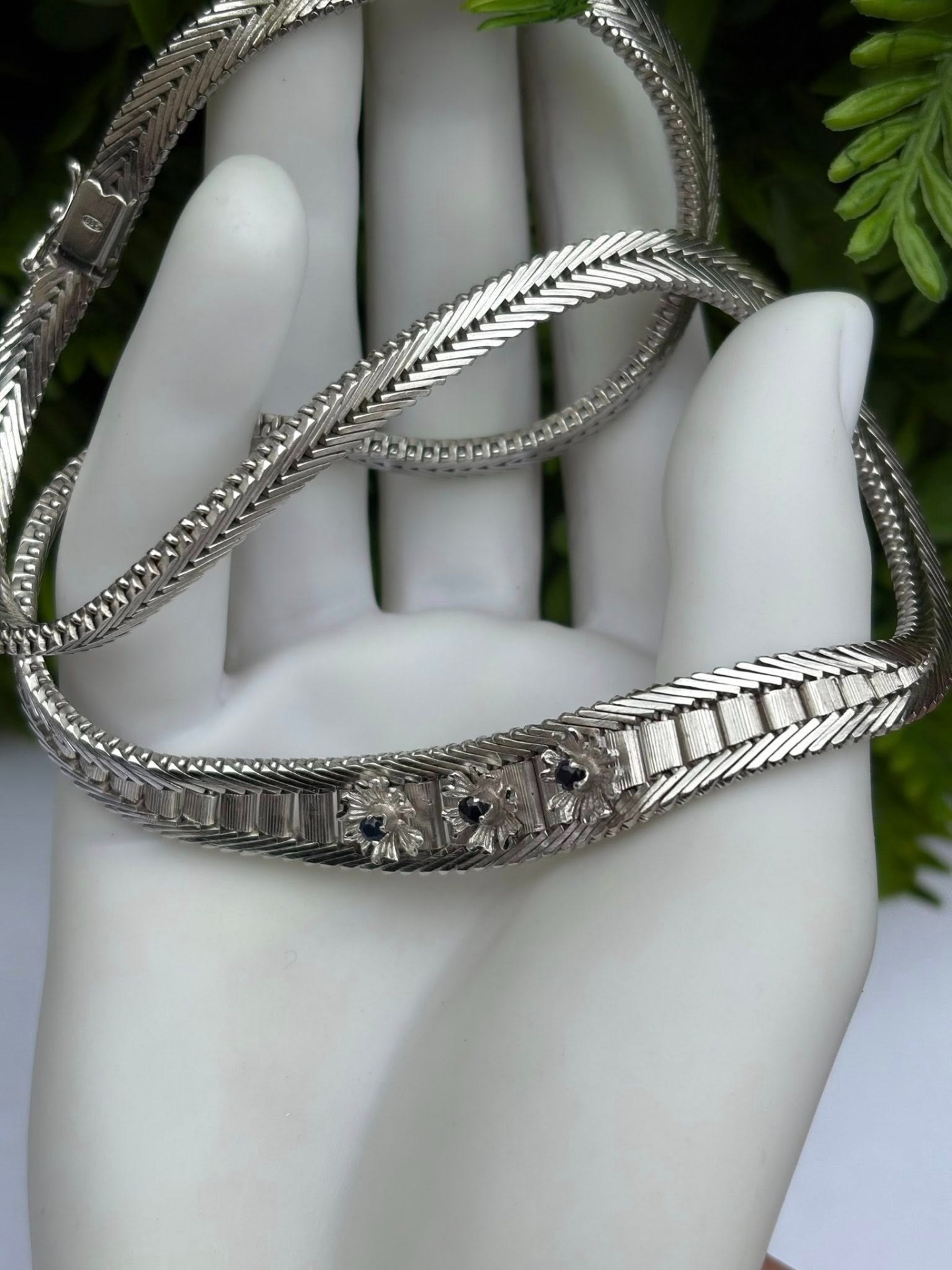 Colier vechi din argint, cu safire naturale, manufactură deosebită.