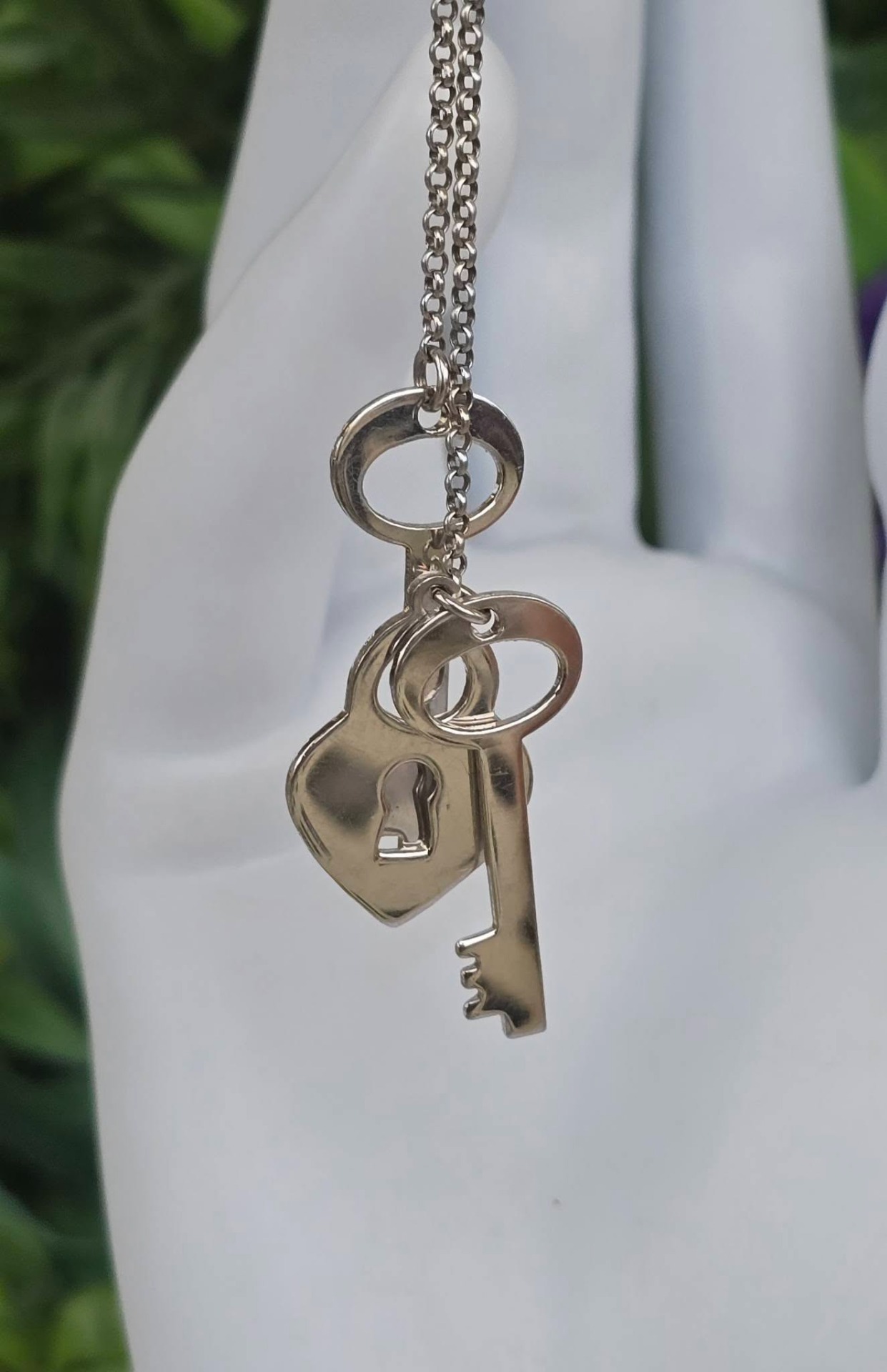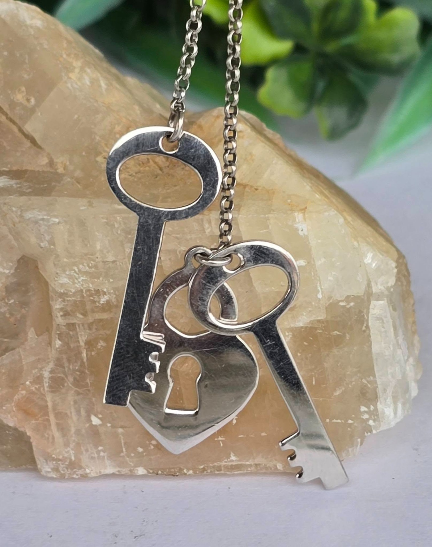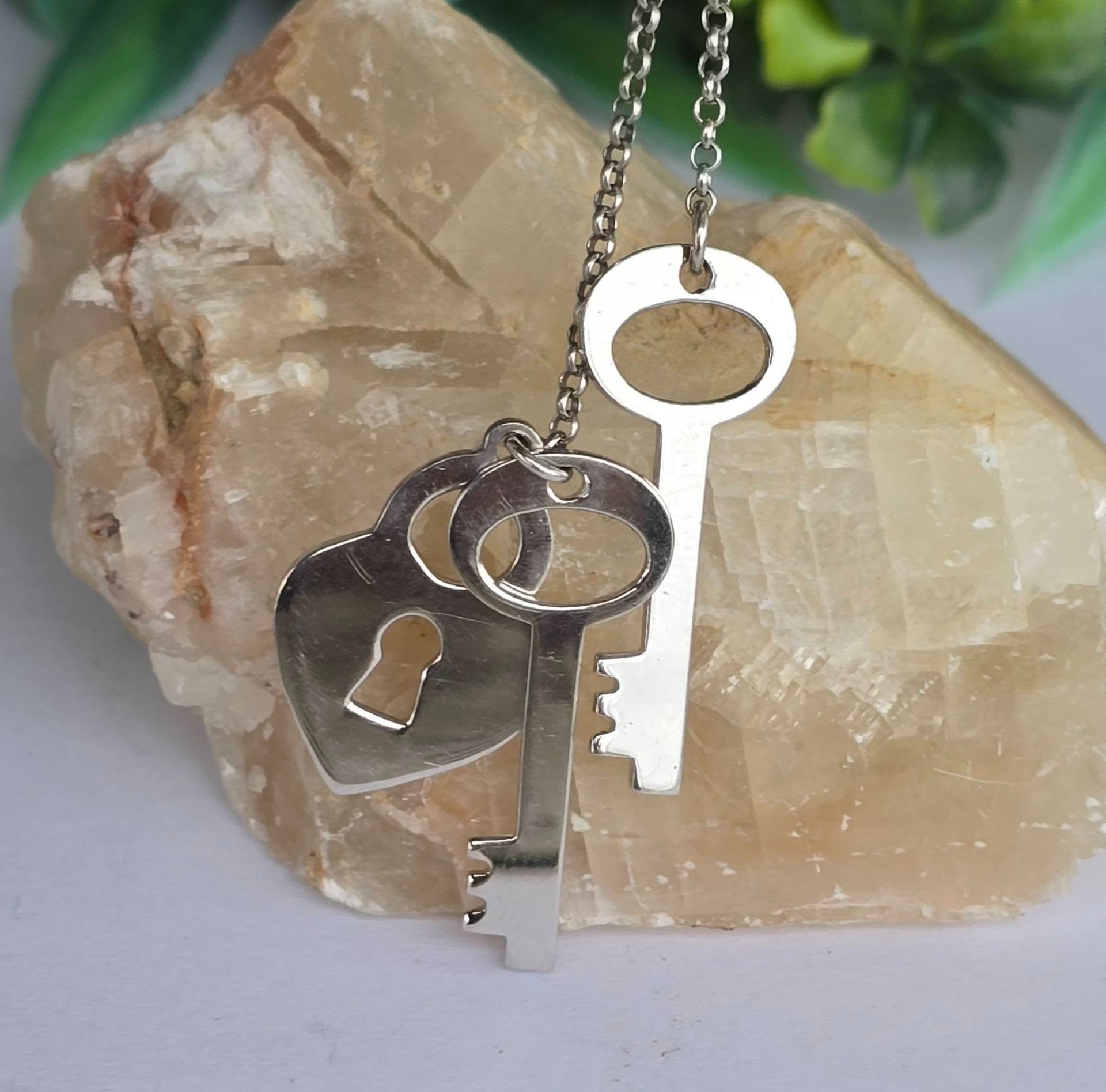 Colier vechi din argint, frumos lucrat manual, stilizat cu chei și lacăt.