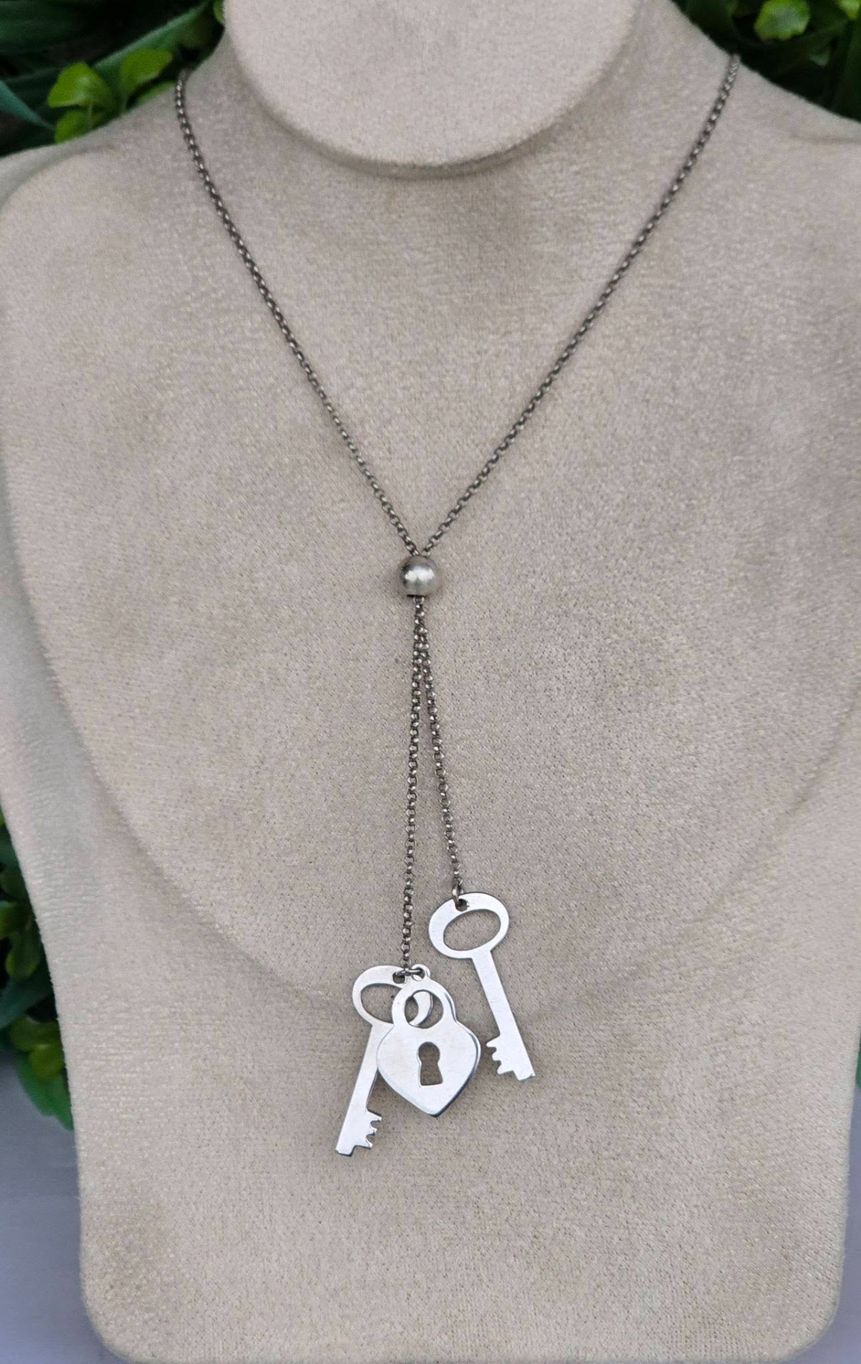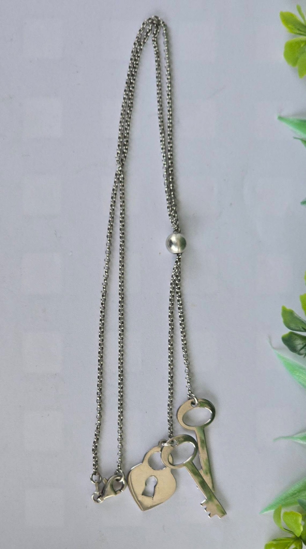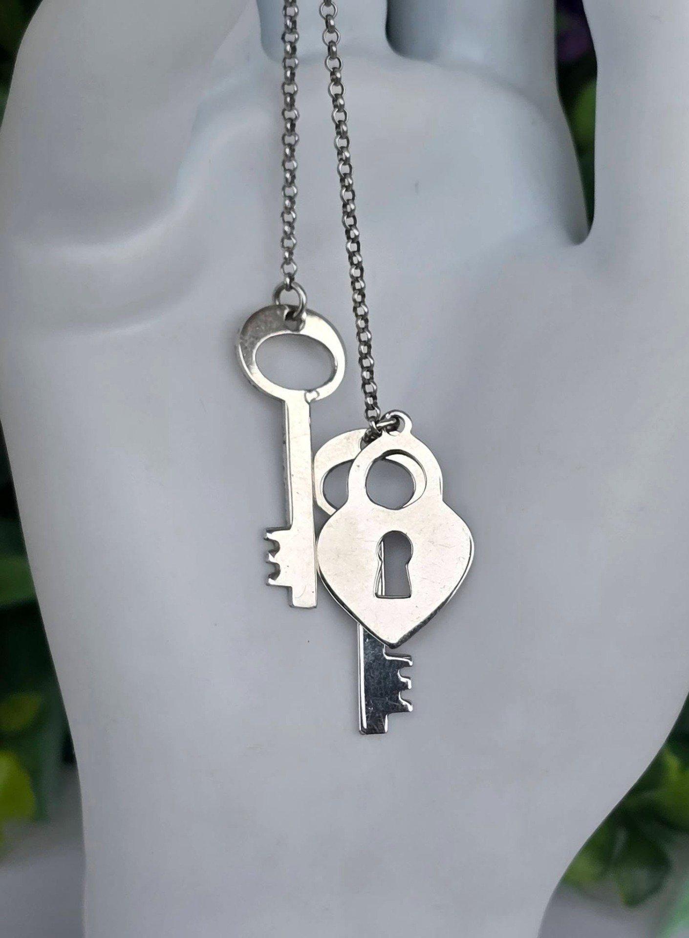 Colier vechi din argint, frumos lucrat manual, stilizat cu chei și lacăt.