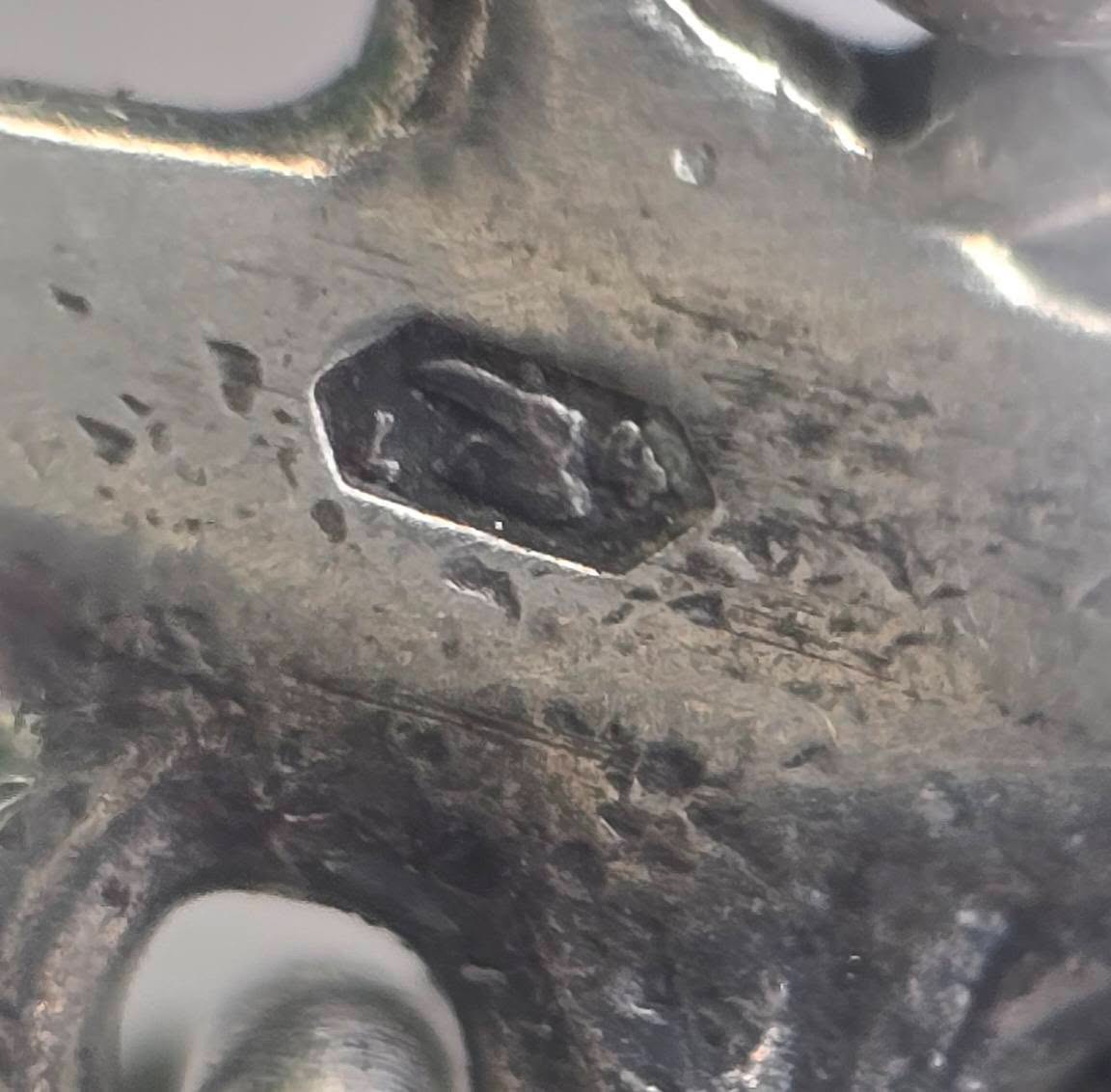 Prezintă marcaj specific austriac pentru garanția purității argintului 800, cu literă de oraș de certificare (Linz).
