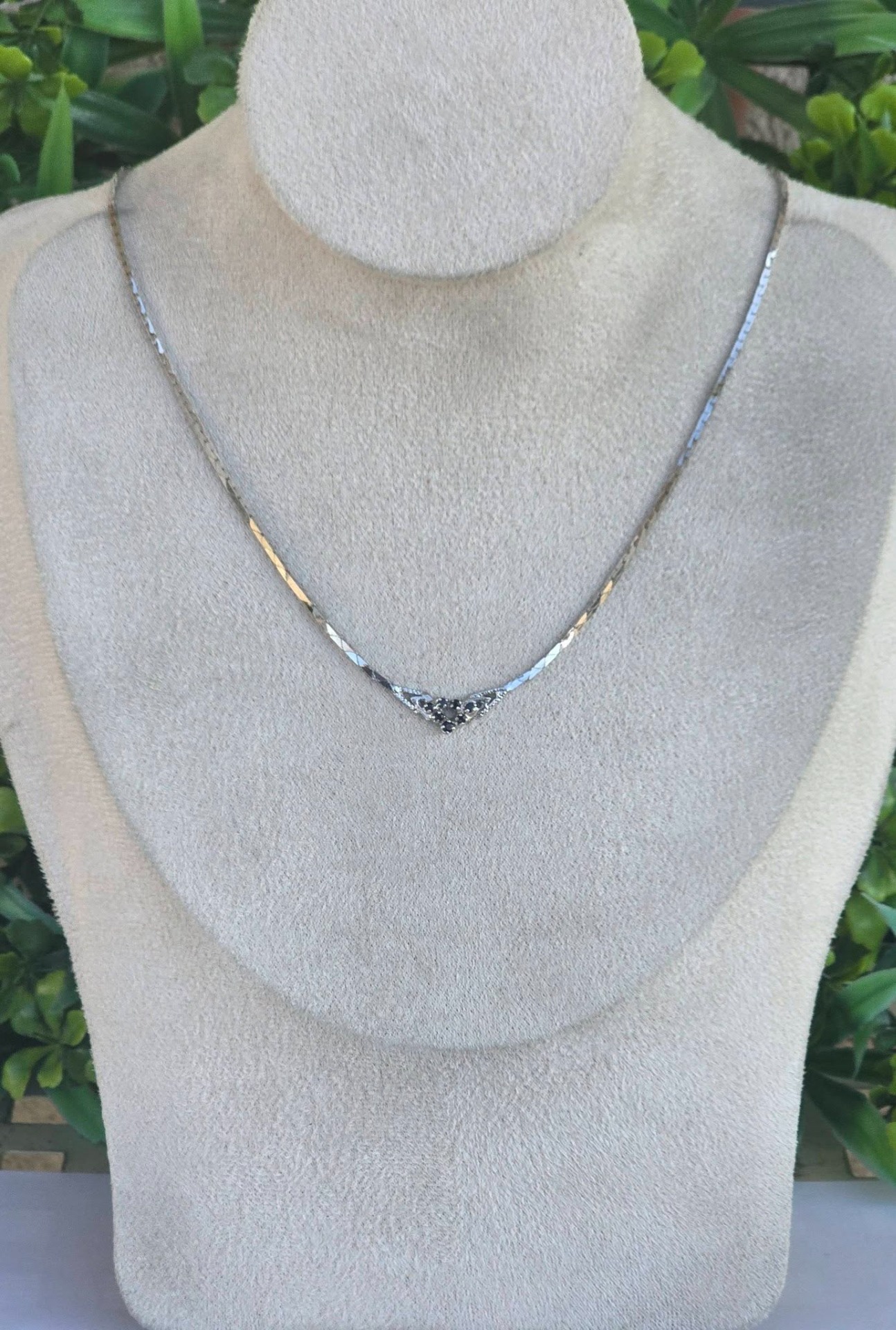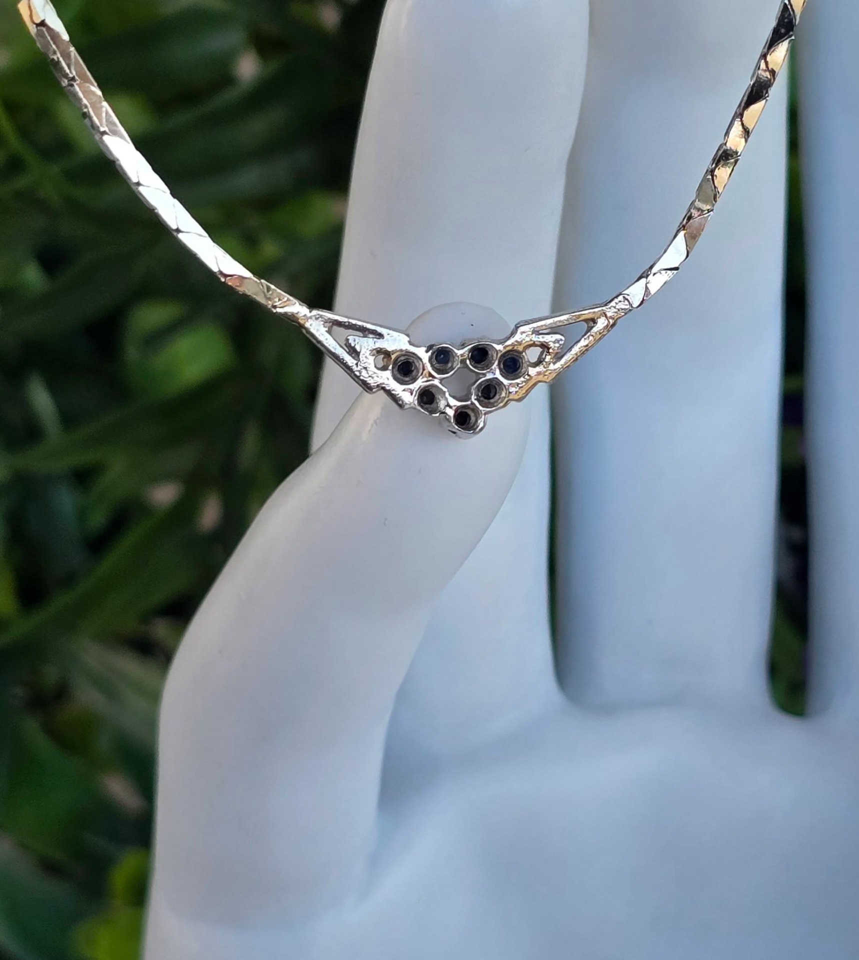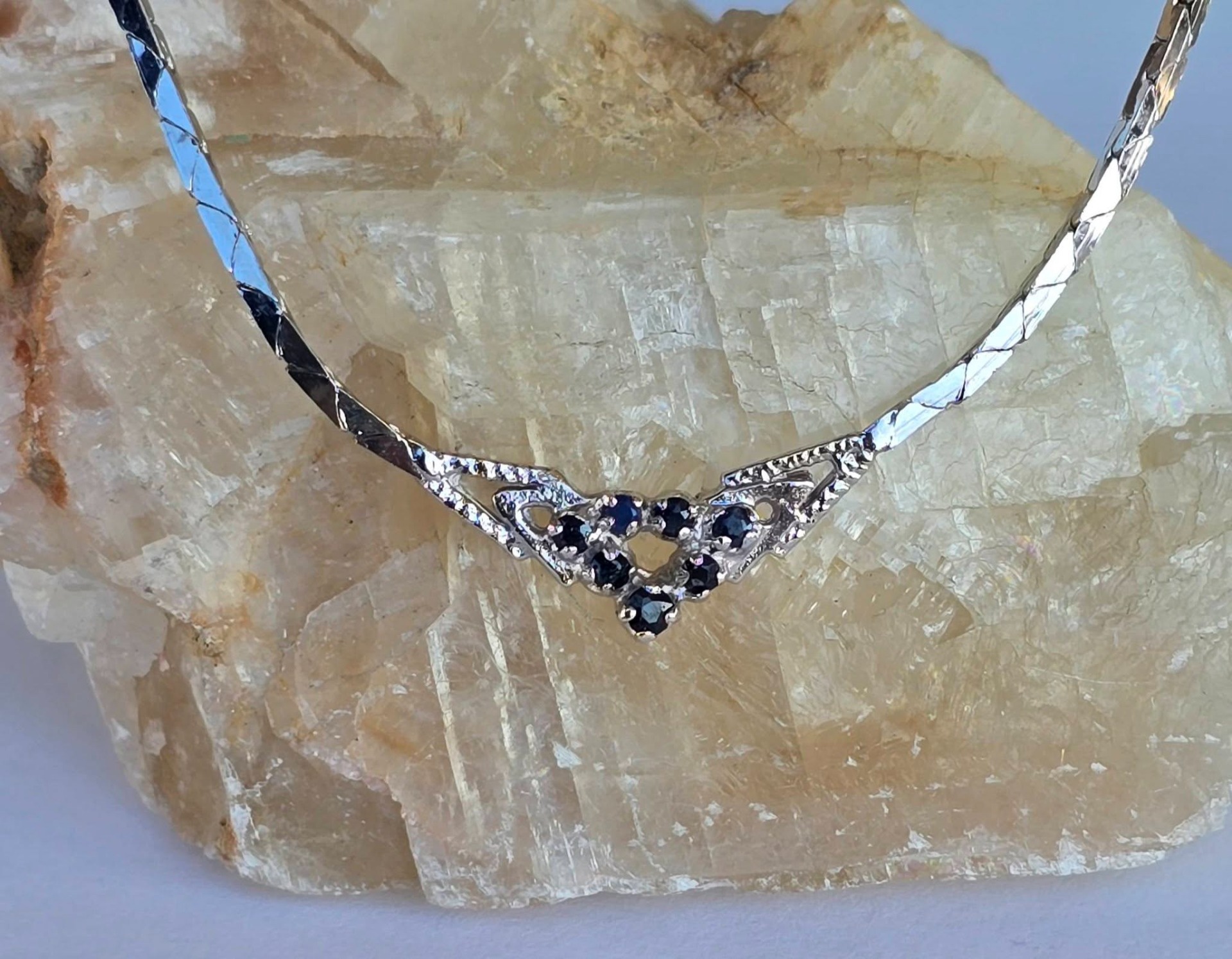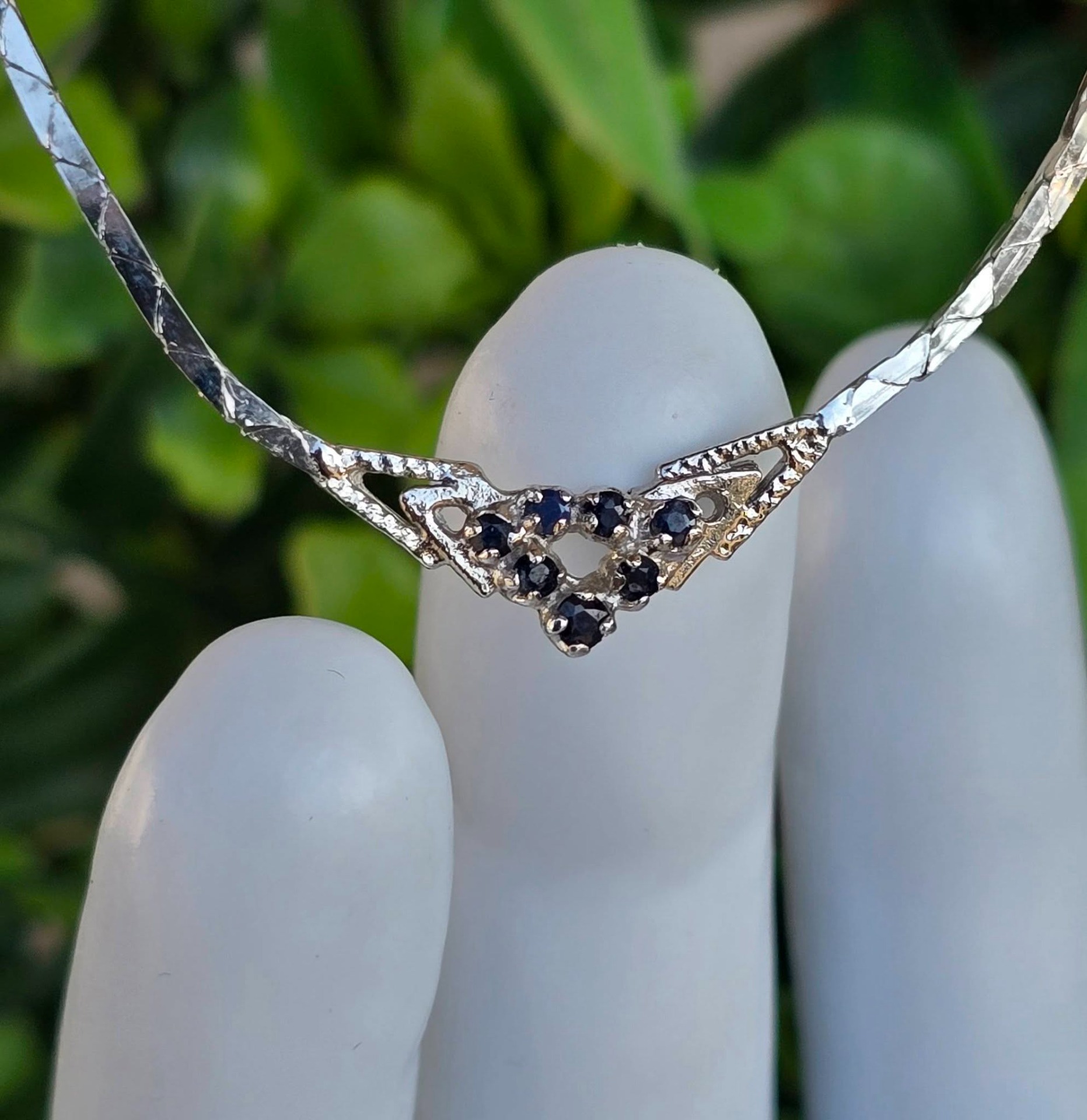 Colier vechi din argint rodiat, cu 7 safire naturale.