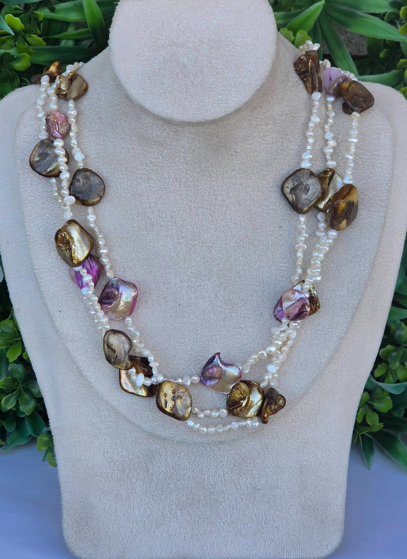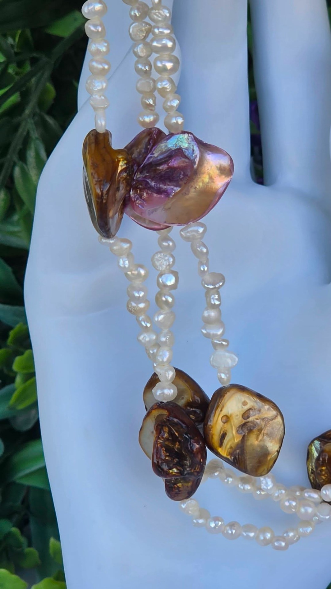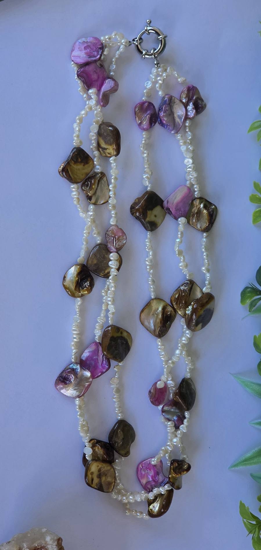 Colier vechi din perle naturale de cultură ("seed pearls") de apă dulce și sidef natural.