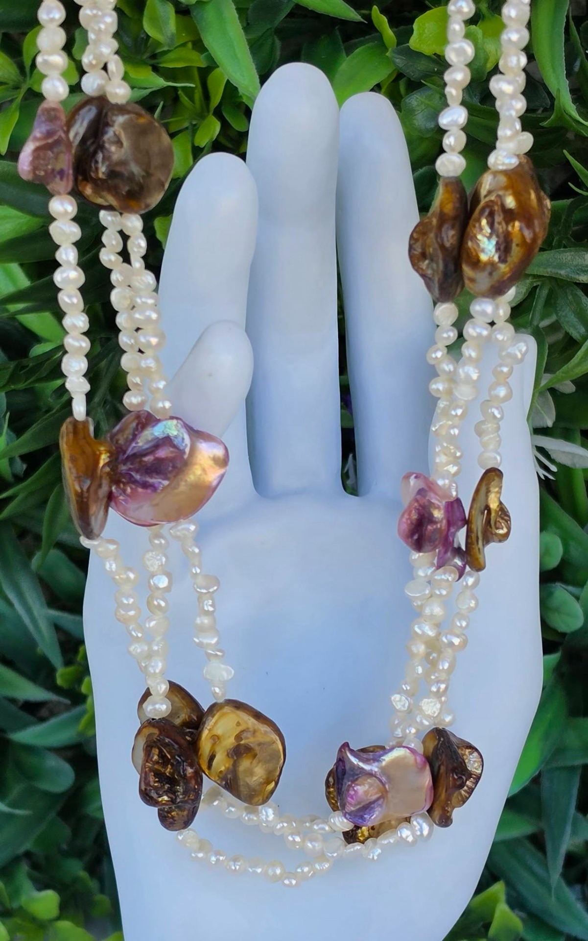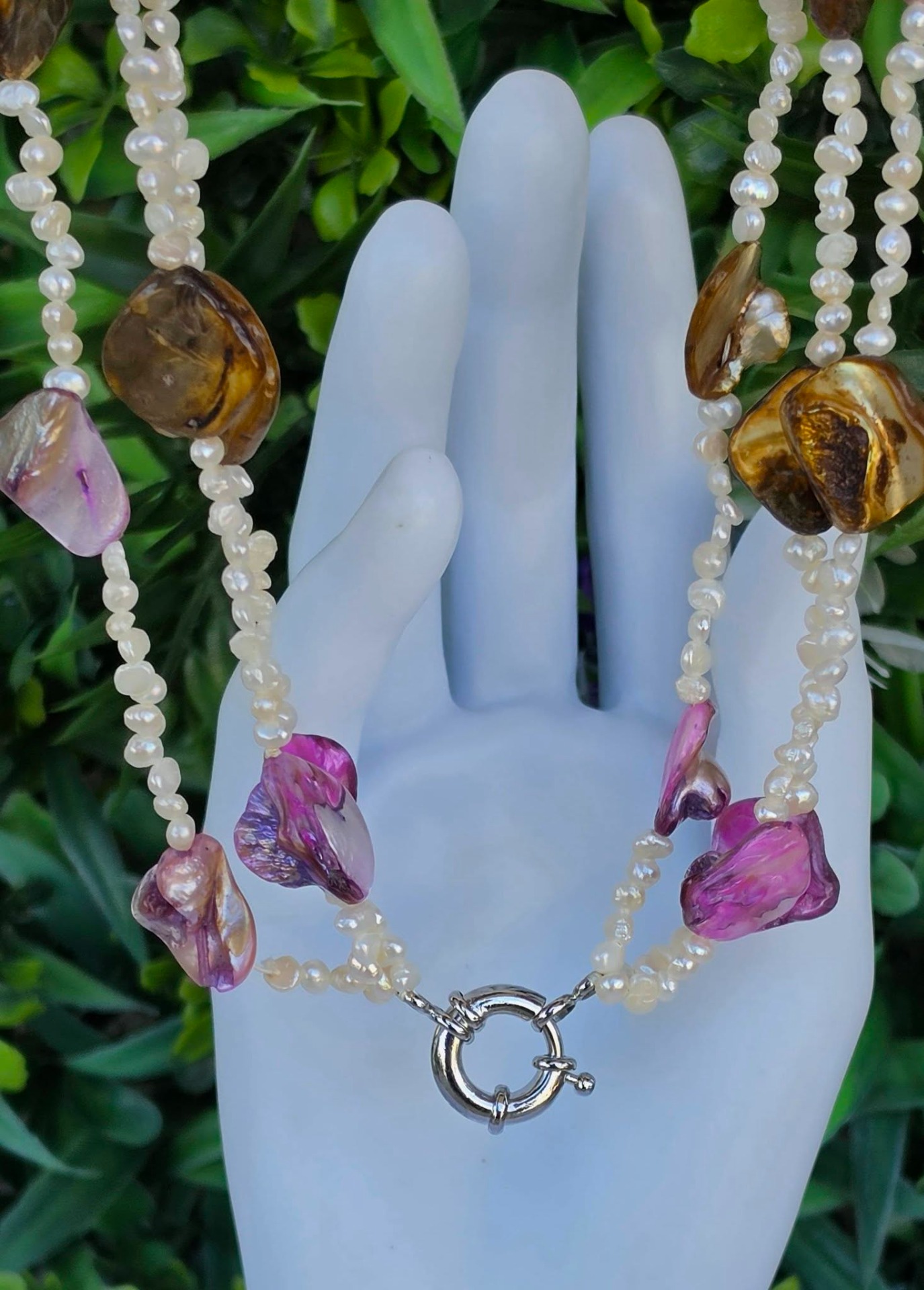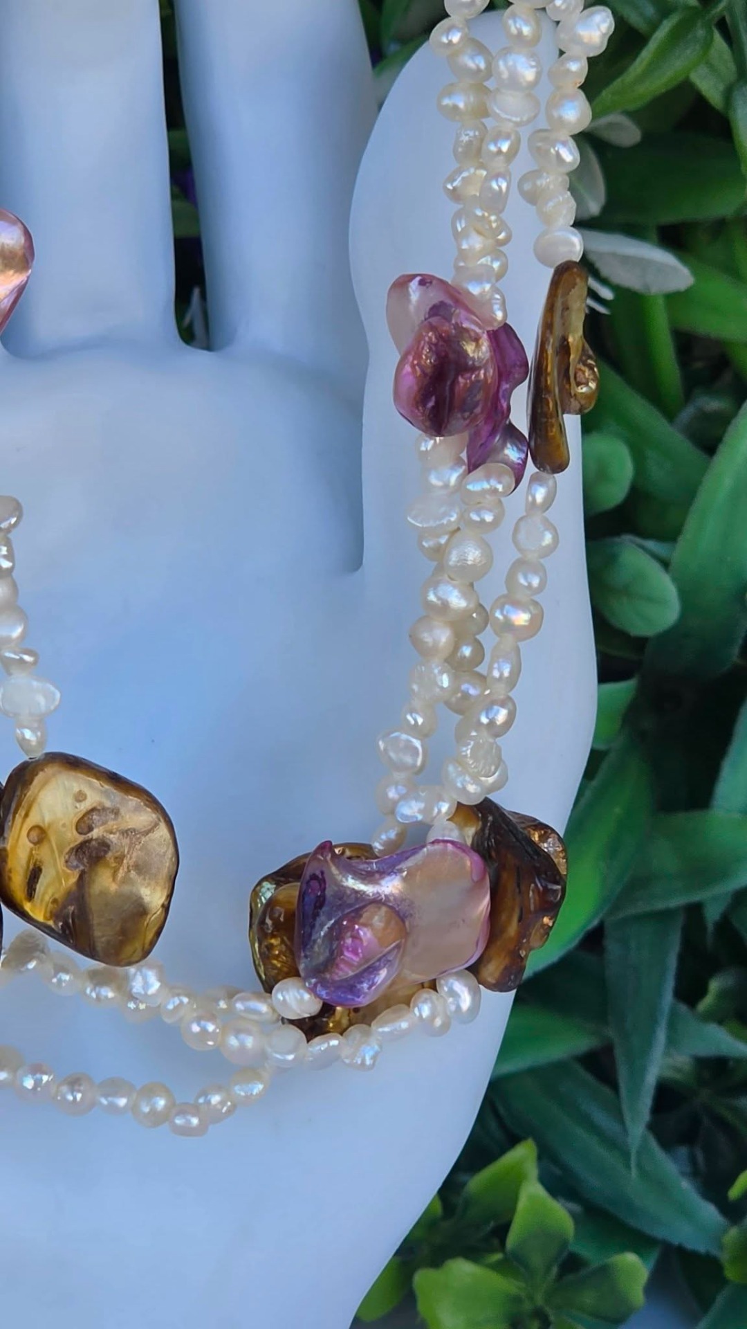 Colier vechi din perle naturale de cultură ("seed pearls") de apă dulce și sidef natural.