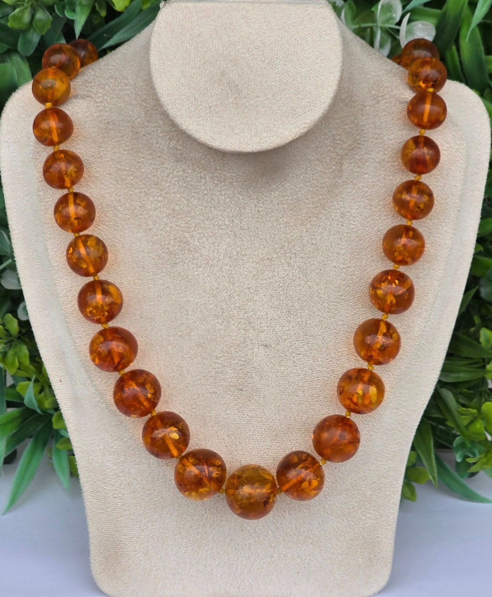 Colier vechi spectaculos, cu mărgele grandioase din chihlimbar baltic natural.