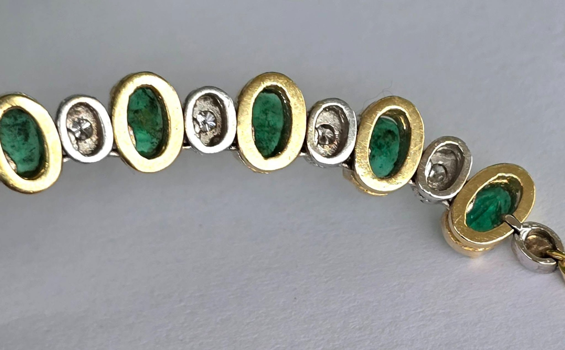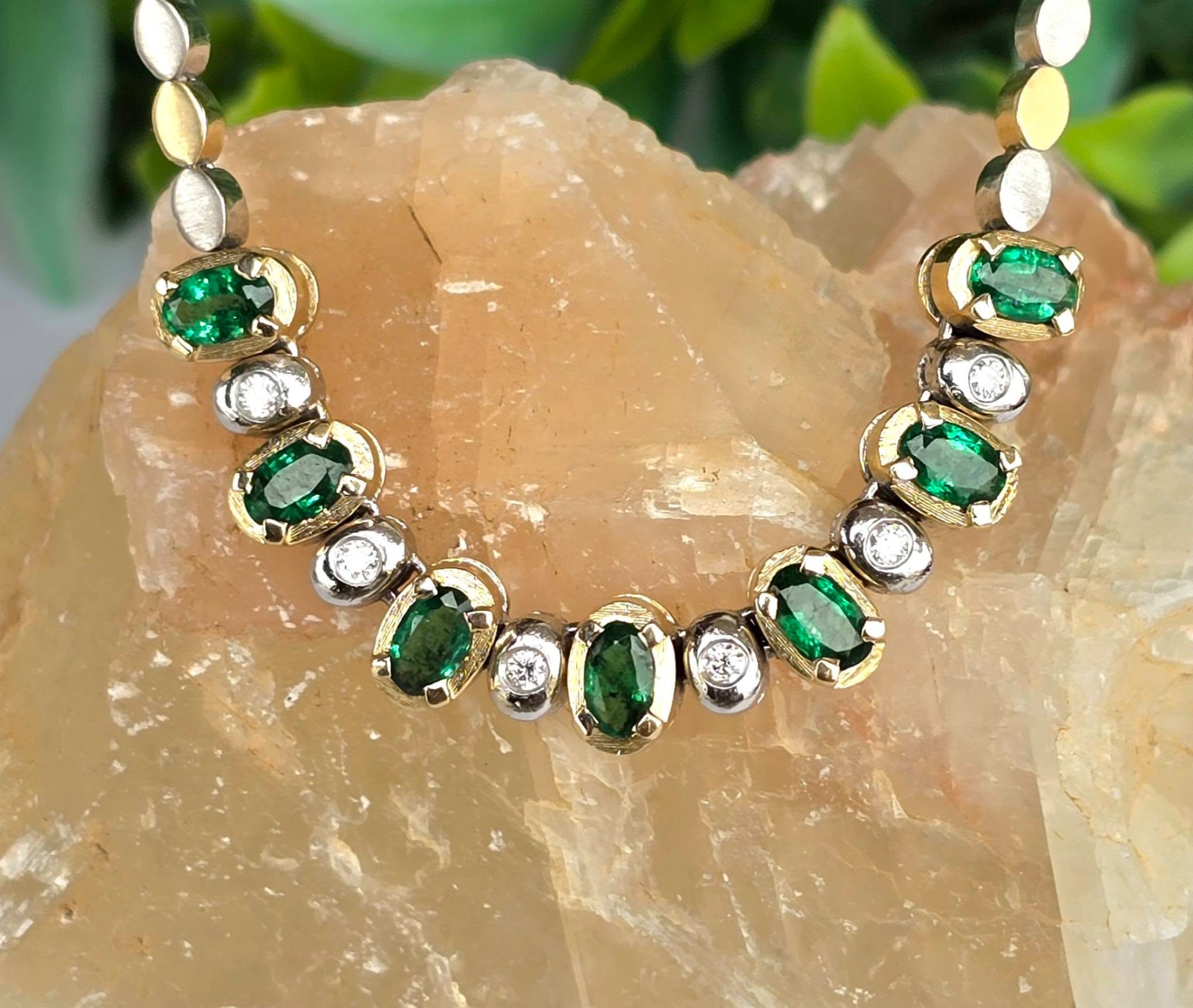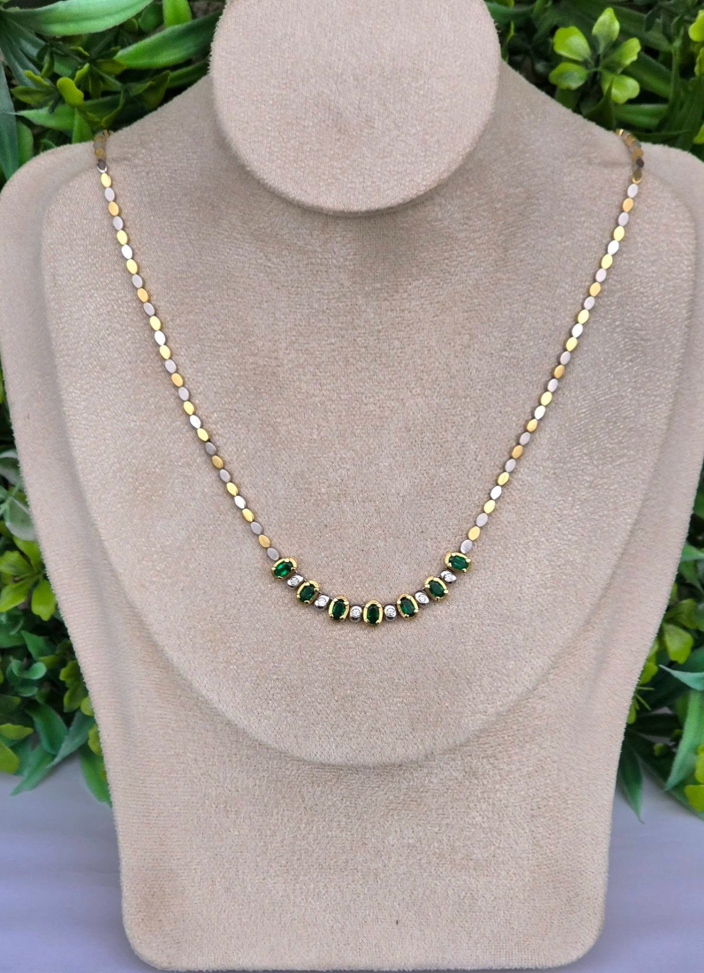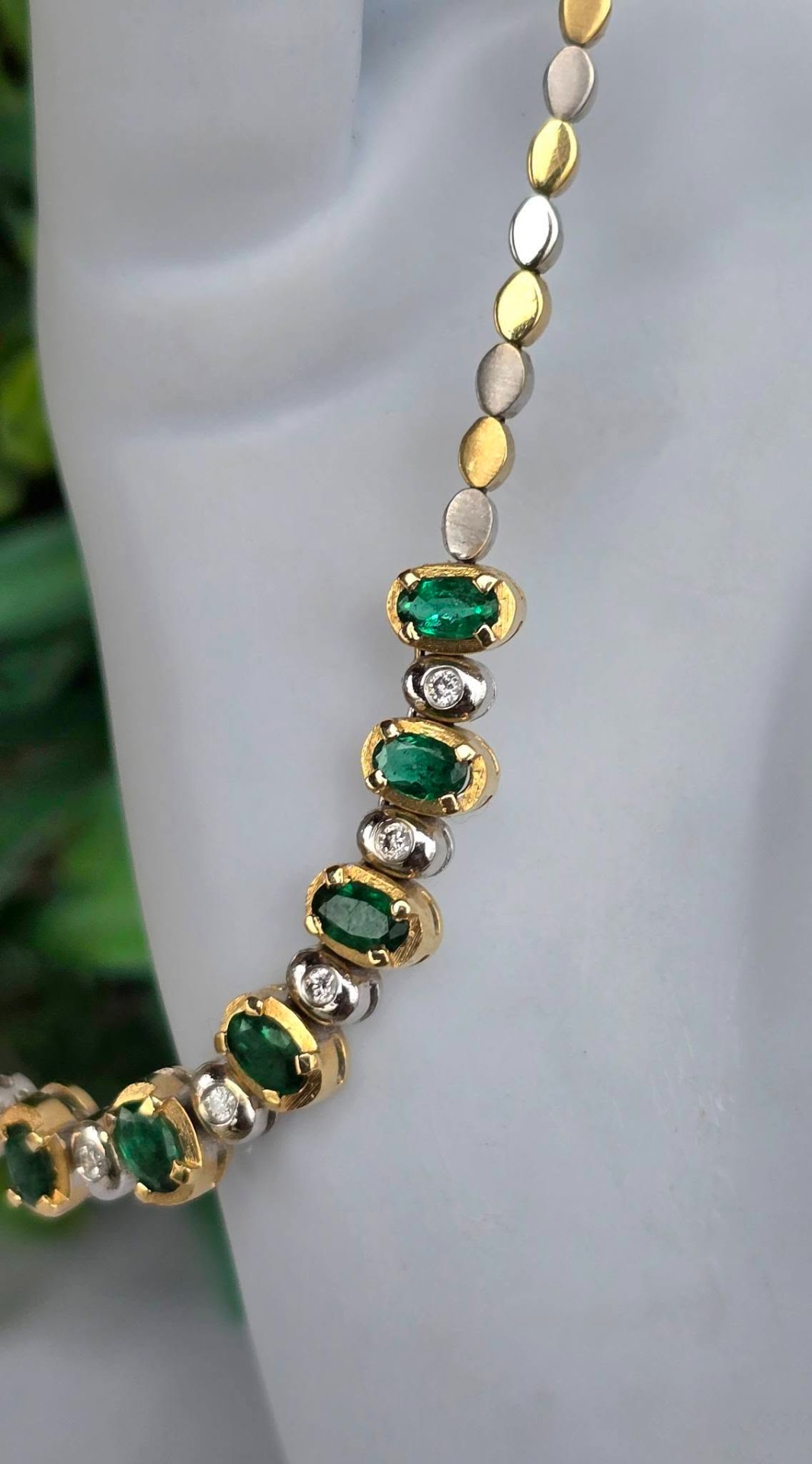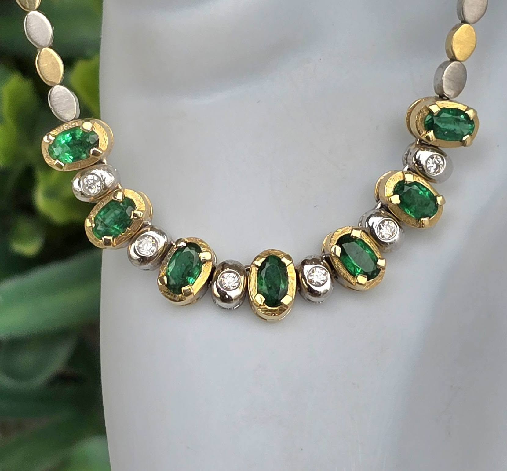 Colier vechi spectaculos, din aur de 14K, cu 6 diamante și 7 smaralde naturale, manufactură deosebită.