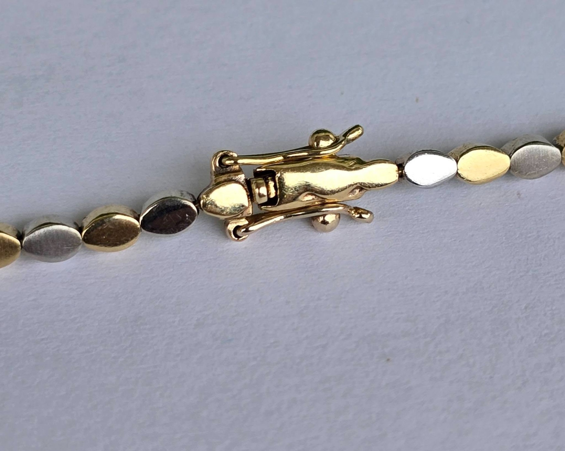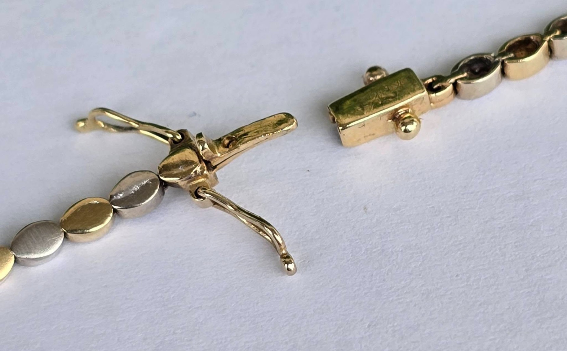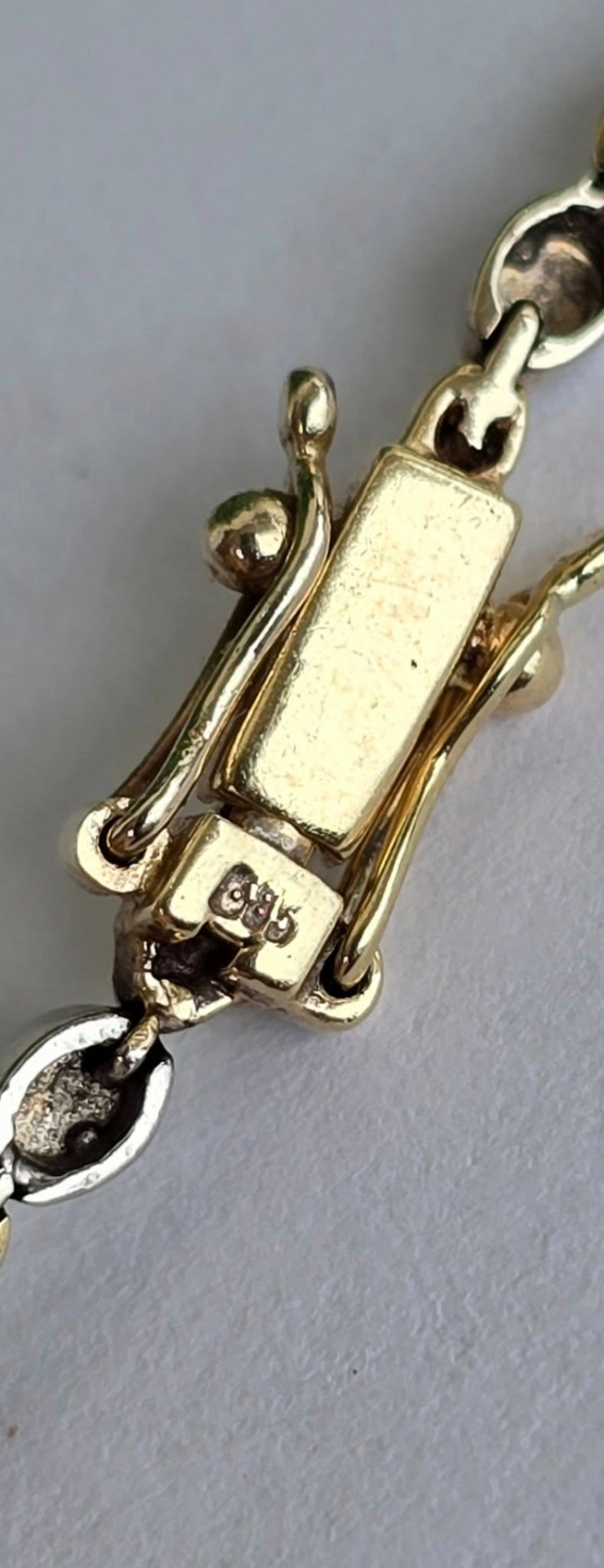 Prezintă marcaj 585 pentru puritate aur de 14K.