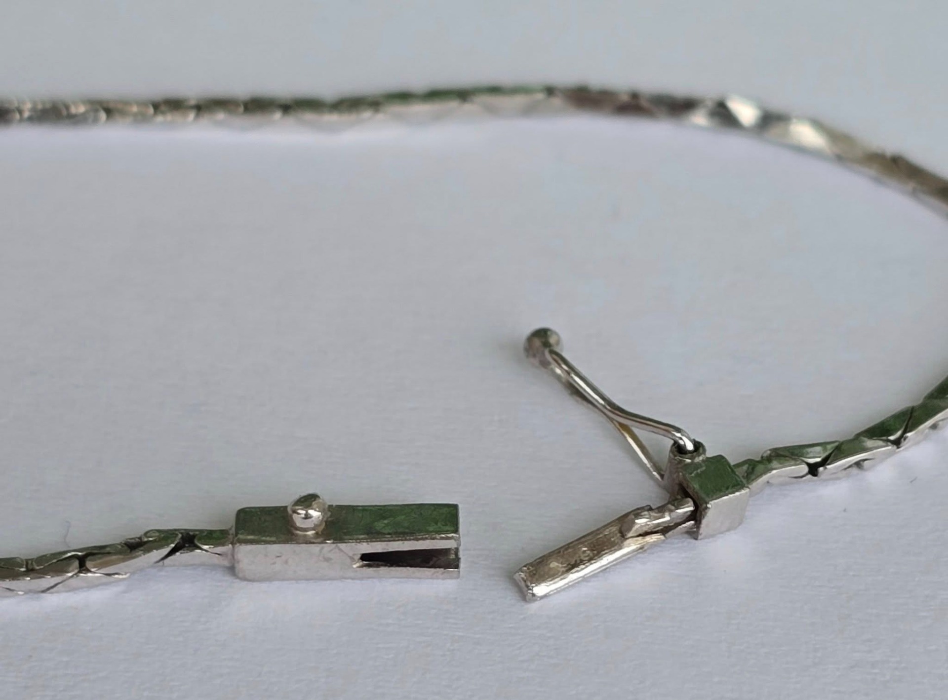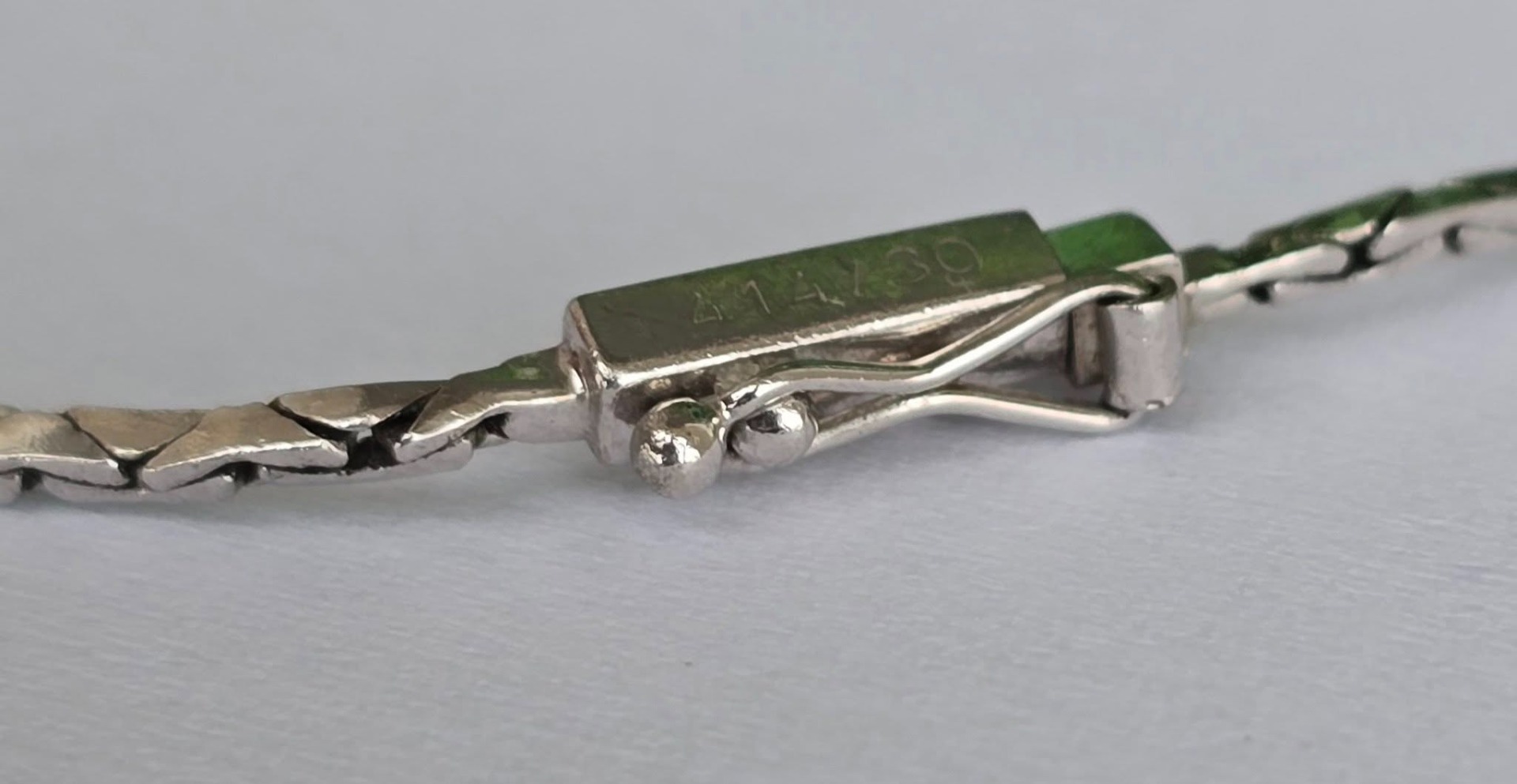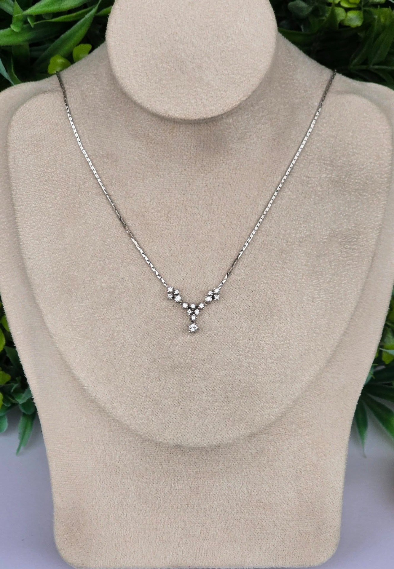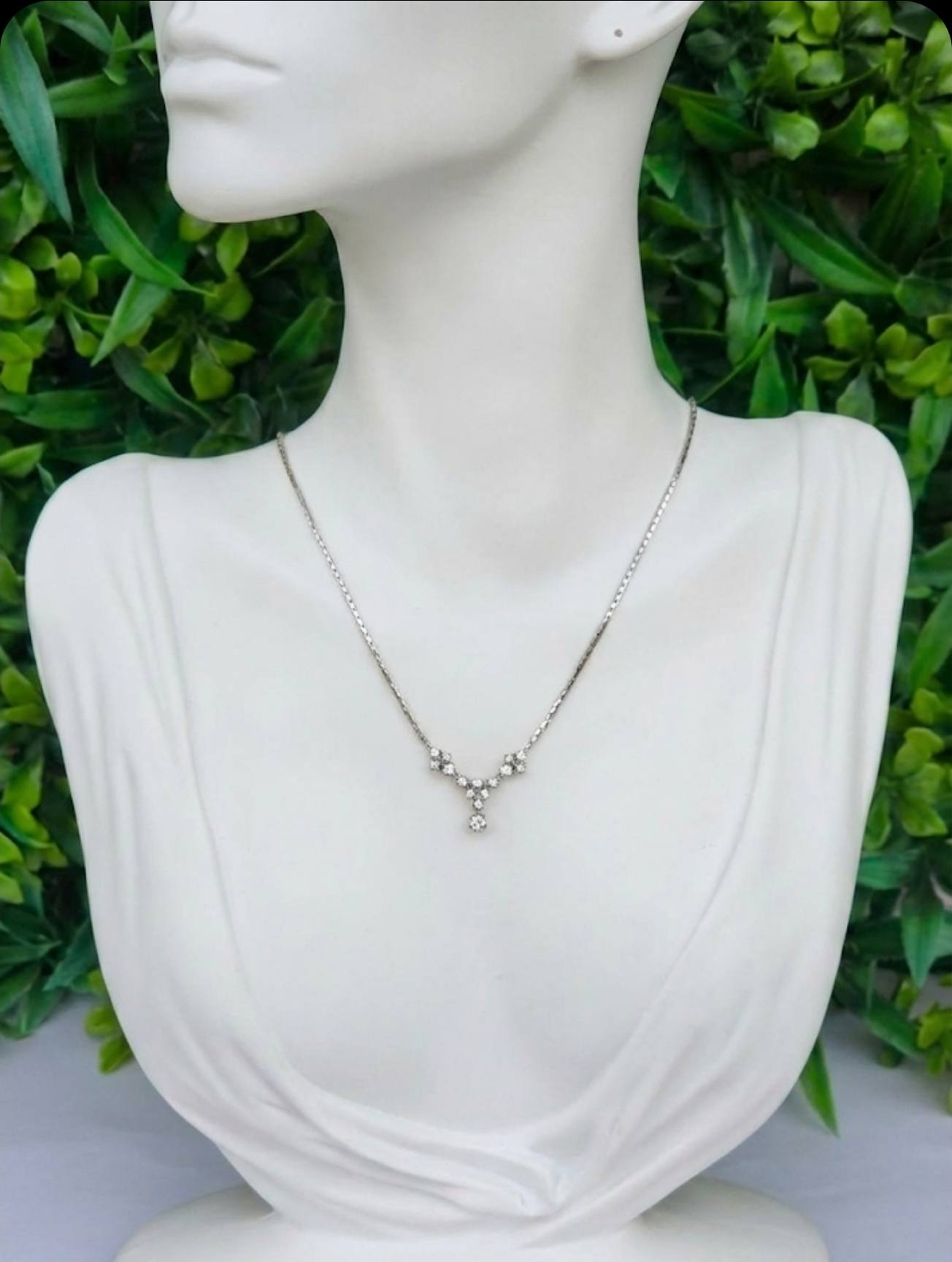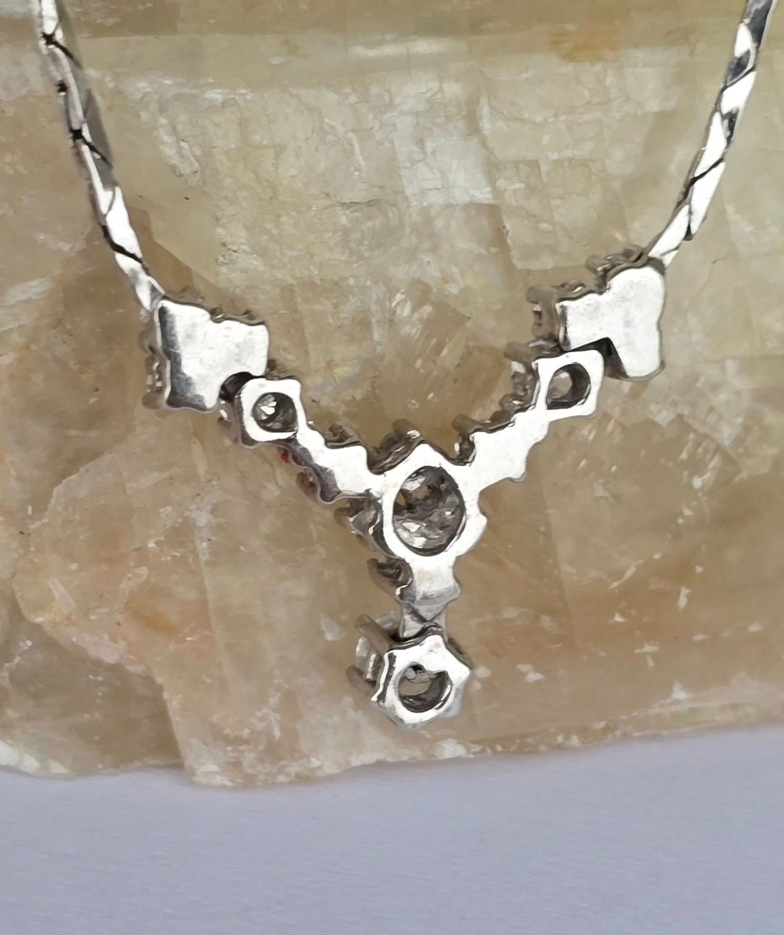 Colier vechi strălucitor, spectaculos, din aur alb de 14K, cu 15 superbe diamante naturale (0.76ct) de calitate superioară, design de tip "lavallière" (Y-drop)