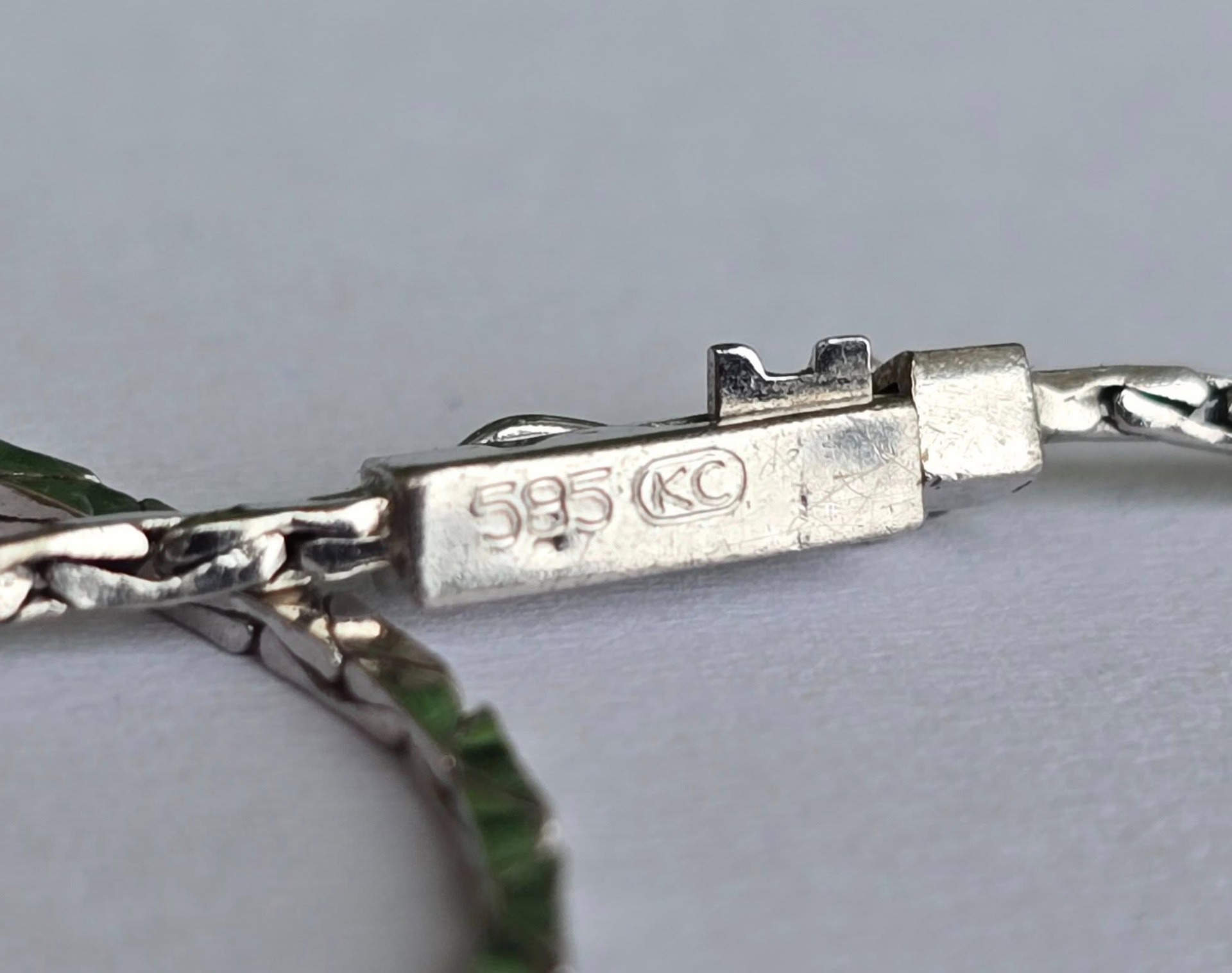 Prezintă marcaj 585 pentru puritate aur de 14K și marcaj de meșter.