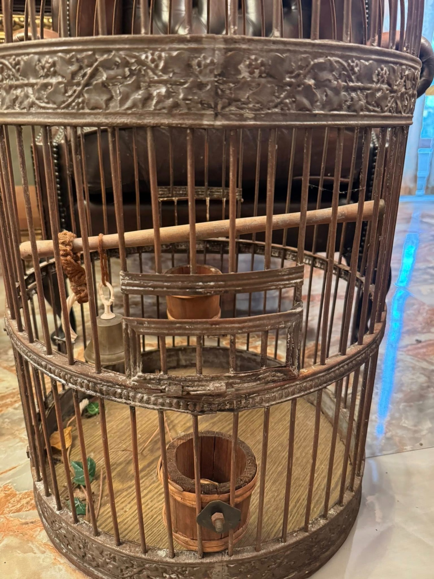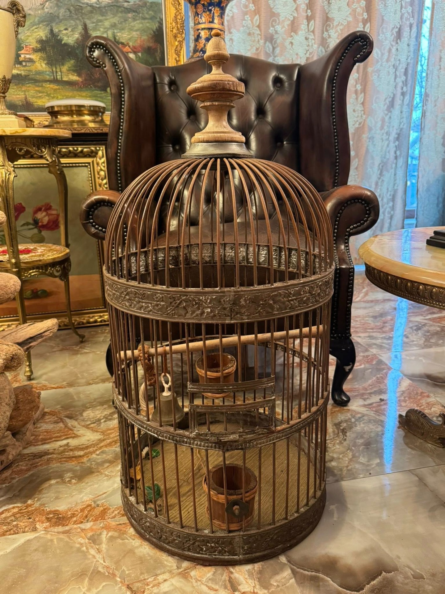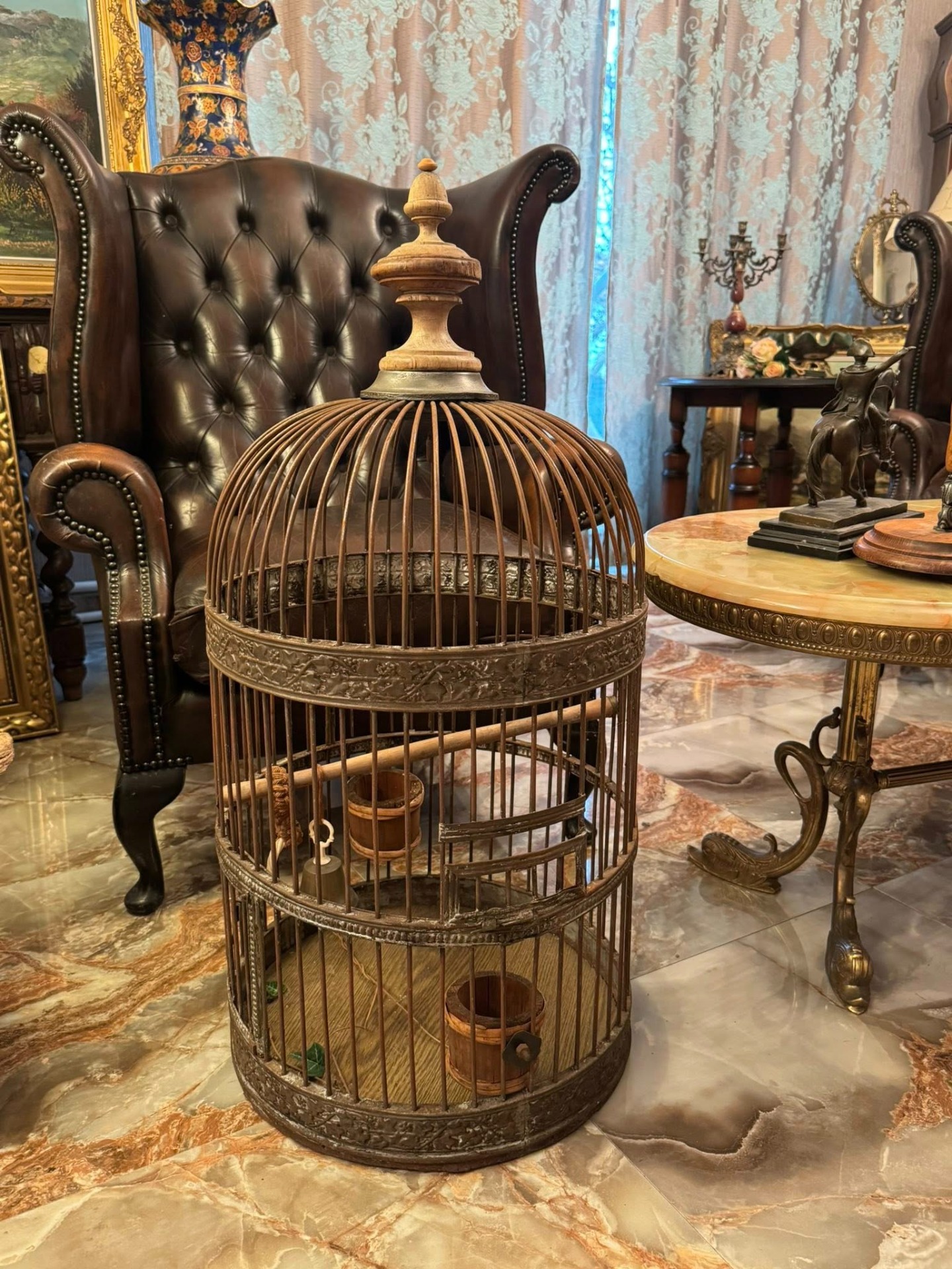 Designul rotund și fundul împletit sunt adesea întâlnite la coliviile tradiționale asiatice (în special chinezești sau japoneze) de epocă, care erau foarte apreciate în Europa. Dimensiuni:90 cm înălțime, 45 cm diametru